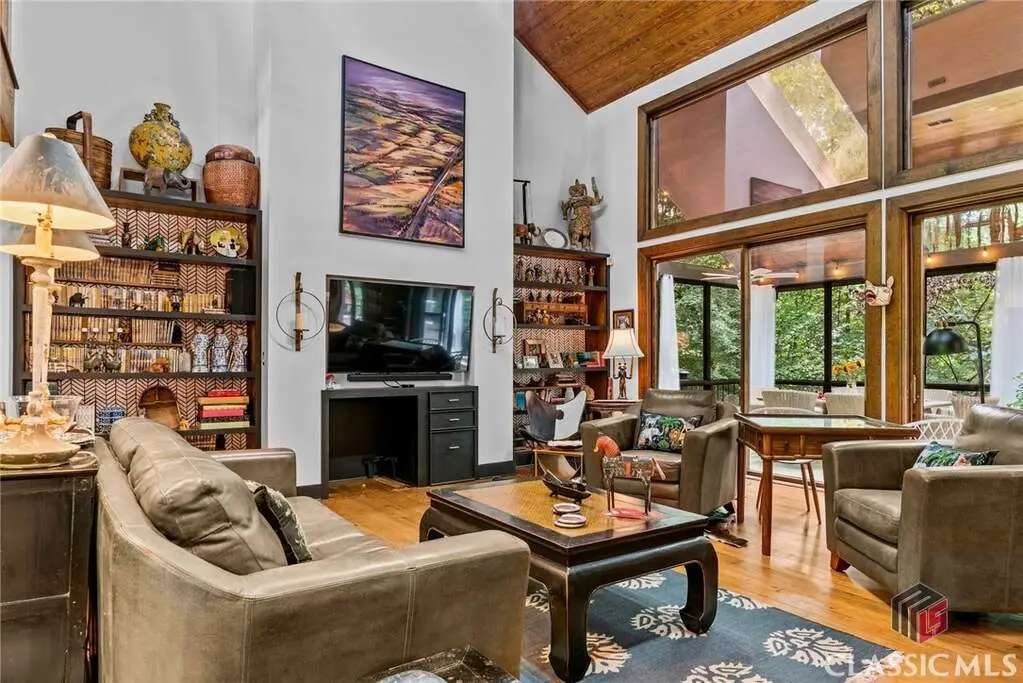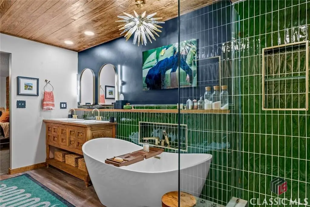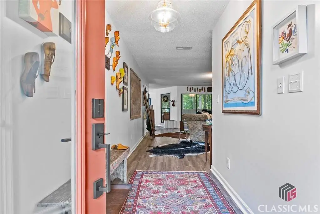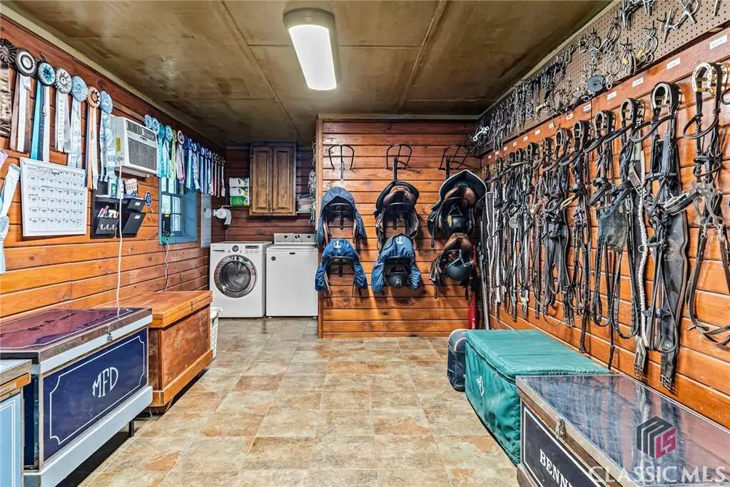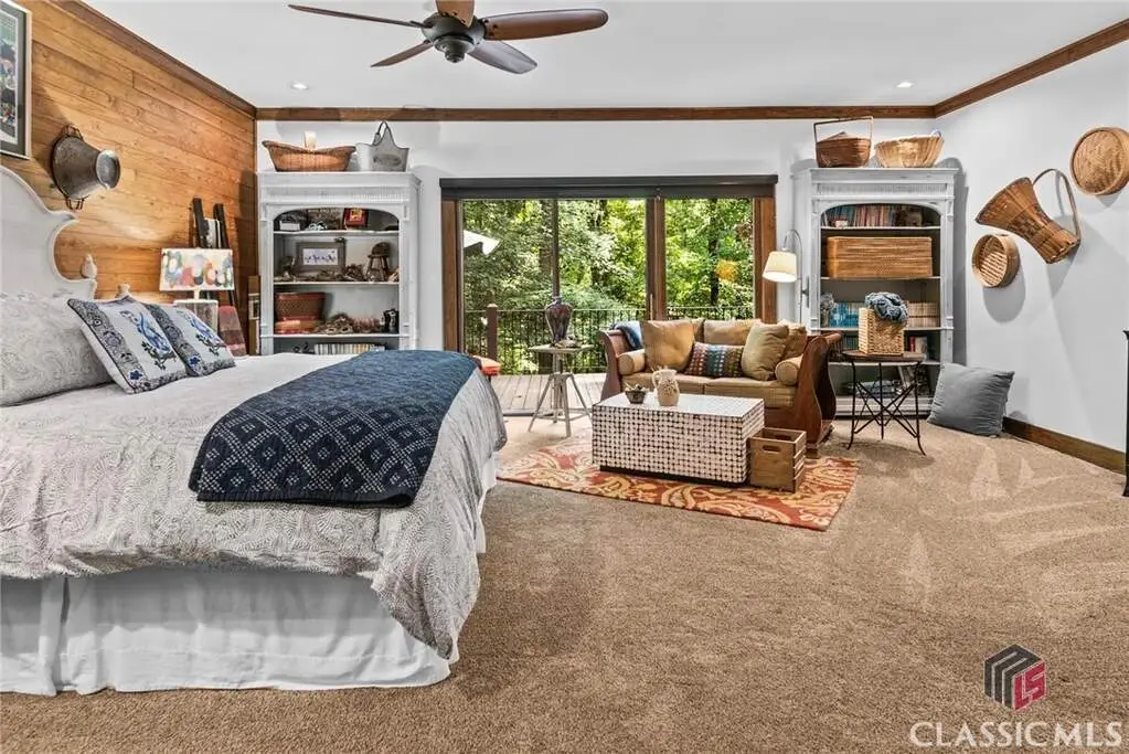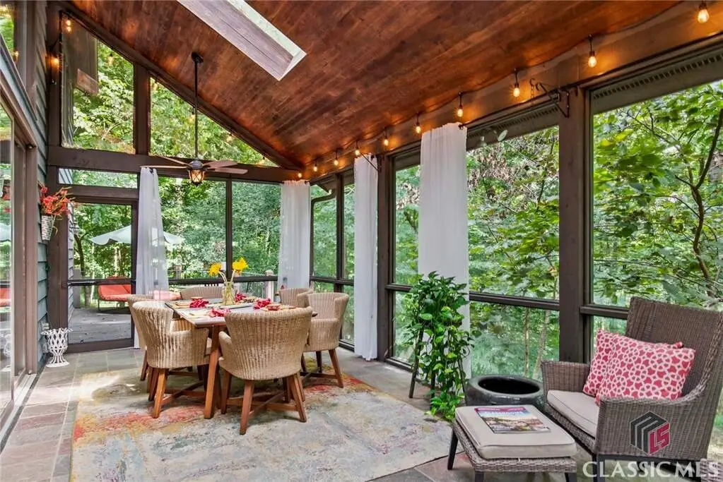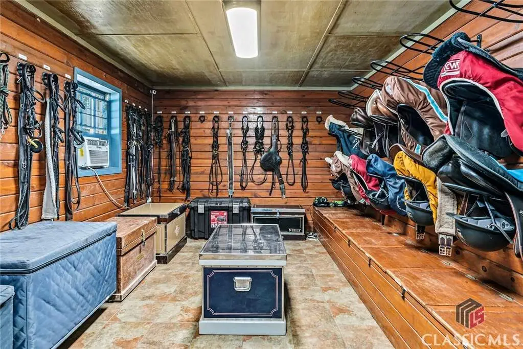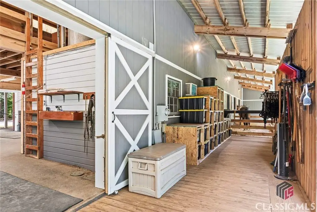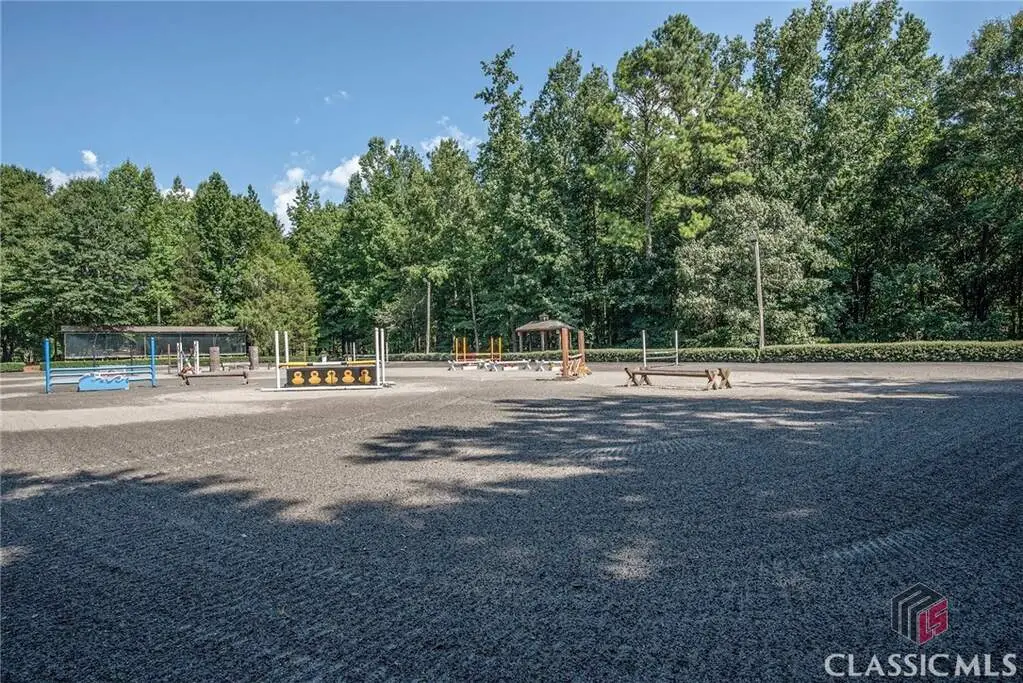 Just on the edge of Athens, GA, you'll find an equestrian estate so picturesque, and so thoughtfully laid out, it's like a retreat for both horses and humans. This 50 acre farm features 2 incredible homes and a recently expanded and updated BARN with 23 matted stalls, 3 tack rooms, a feed room, hay room w/exterior access, hot/cold wash racks, grooming bays, a drive-up farrier bay, laundry facilities, and a storage area for blankets and equipment - everything needed for the comfort of horses and their riders. Two additional stalls are separated from the main barn and are nicely set up for rehab, quarantine, or other special needs. Adjoining the stables, you'll find a 106' x 210' ARENA that's fully irrigated and offers a premium blend of M10, fiber, and rubber footing; a 50' mirrored wall, sound system, lovely hedge fence, and a viewing gazebo. Shade trees and lush landscaping surround the arena to create a riding environment that's as beautiful as it is functional. The arena's new LED lighting system and path lighting are just what you need when daylight hours are shorter, or to beat the summer heat with an early morning ride. There's also a 50' ROUND PEN just outside of the arena, and an RV pad with hookups right behind the barn. On the opposite end of the barn is a EQUIPMENT BARN with a workshop area, trailer parking, and enclosed storage for shavings. 15 large and lush PASTURES have water and run-in shelter or shade, and riders have access to more than 15 acres of BRIDLE PATHS that meander through the woods and along the year-round creek that flows through the property. The horse amenities are rounded out by a peaceful, grass JUMP FIELD along the banks of the creek, with shade trees and direct access to the extensive riding trails. When you're not out riding on this spectacular property, there are two inviting and architecturally interesting homes where you'll enjoy spending time. Nestled in a lush natural landscape