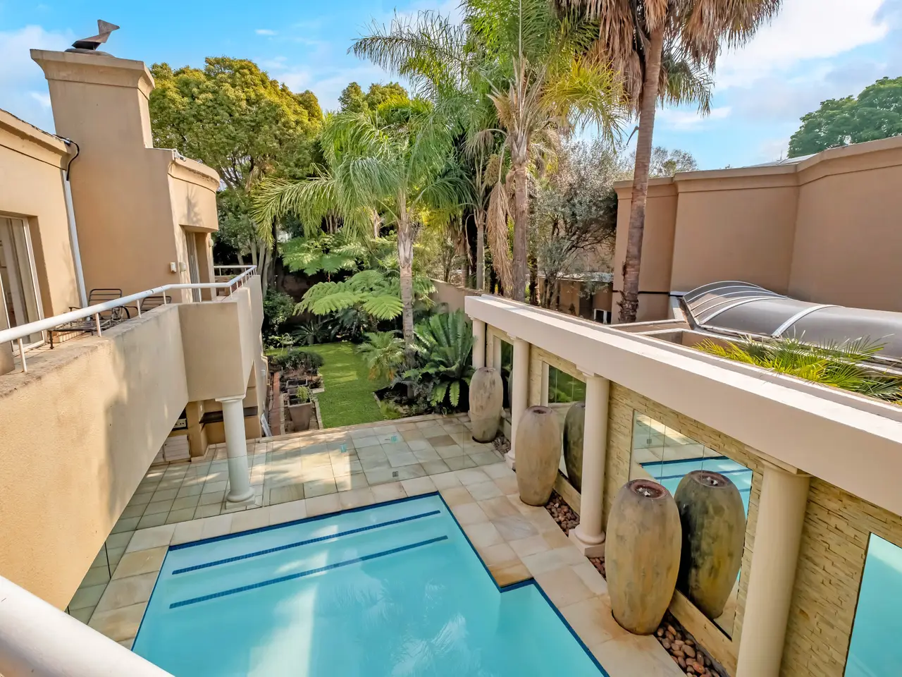 Live in Luxury, Privacy, and above all, Security. Nestled in one of Atholl's premier estates, this home offers unbelievable proportions plus an abundance of living spaces seldom found. Flowing from the expansive entrance hall, a casual elegance is immediately on display. Glass stacking doors & picture windows further enhance the feeling of space ...The reception rooms comprise of a formal lounge, separate dining room, family room and private study - with views of the garden and superb patio – large enough to accommodate casual and formal entertaining. The family kitchen includes a central island, 3 ovens, pantry & breakfast room/casual everyday dining. Catering for every need, the bedroom wing hosts 4 magnificent bedrooms, 3 bathrooms. The master suite includes his and her dressing rooms plus an extra spacious bathroom - a sanctuary of its own. 2 bedroom staff cottage/teenage pad, 3 garages plus an abundance of secure visitors parking. Points to Ponder : wine cellar, fitted bar, designer water feature, stacking glass doors, sound system, aircons, solar electricity, generator, underfloor heating, borehole, irrigation & security beams plus night guard. This home has stood the test of time - the perfect location near Sandton's best offerings, yet at the same time, quiet – a perfect sanctuary.