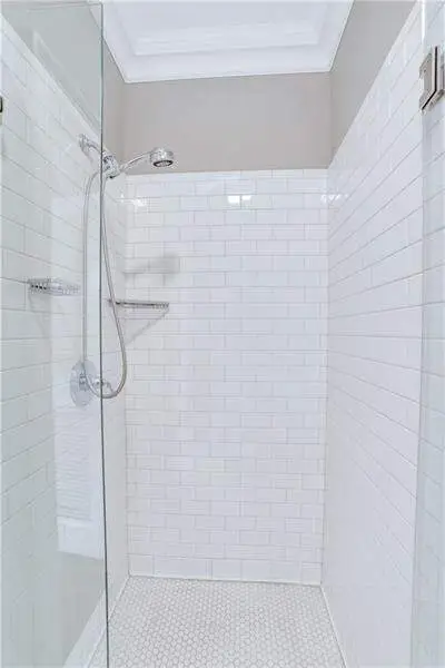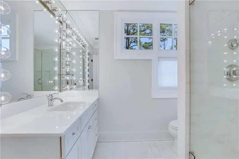 Newly renovated marble bath with double vanity