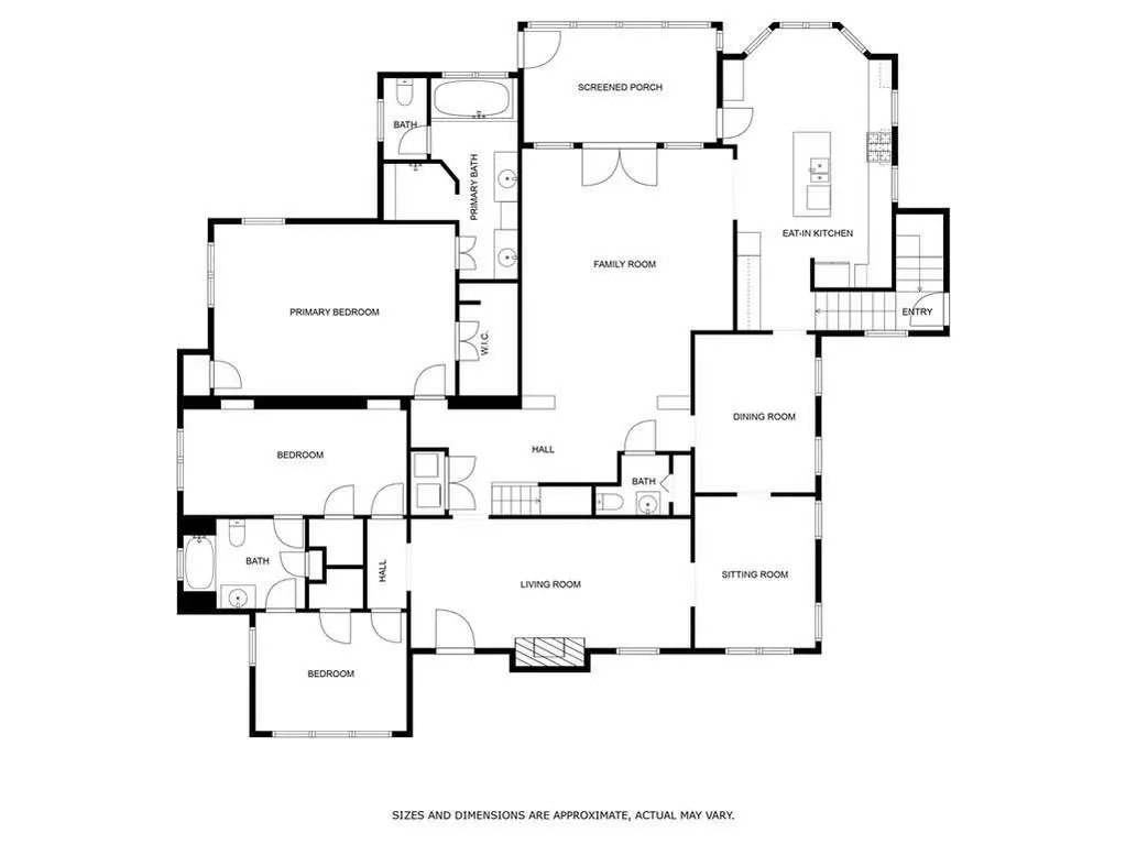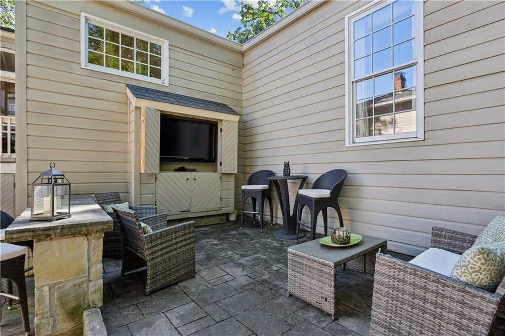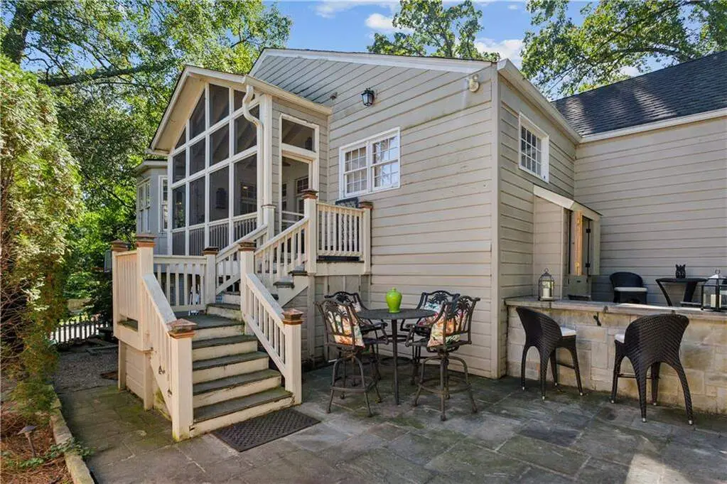 Truly a must-see home within walking distance to the Duck Pond, Garden Hills pool and playground and Peachtree Road Farmer's Market - just in time for Summer! This charming home on a rare, double corner lot in Peachtree Heights East offers delightful curb appeal, and a wonderful main level open floor plan. The welcoming entry courtyard flows from a level front yard, inviting you into the living room with a beautiful arched, stacked stone fireplace. The rear, two-story addition was designed for gathering and entertaining, with an oversized family room and kitchen with an abundance of natural light and 10 foot ceilings. The custom designed kitchen features arched windows, a custom-crafted mantel, double ovens, double dishwashers, gas cooktop, granite counters, large island & breakfast room, with a tucked away built-in desk and cubby area by the side entry. The ample family room and kitchen both open to a large screened-in porch with vaulted ceiling, beadboard & beam detailing, and sunset views. Separate dining room and cozy study, plus a sought-after primary suite on main with dual walk-in closets and custom-designed primary bathroom addition, featuring a built-in armoire, double vanity, separate soaking tub and double shower. There are two secondary bedrooms on the main level as well that share a bath, plus a separate powder room. Upper-level staircase leads to a sitting room/playroom/office and an sleeping room with large closets. The finished, daylight terrace level includes a bedroom and bath, as well as a bonus room that is currently being used as a gym. The private backyard has a double stone patio with built-in stainless grill, stone fire pit and outdoor bar counter with built in TV, a pea gravel play area and extra lower bonus yard. One car garage that can be easily converted back into two. Many upgrades have been made this year including brand new water heater, pressure reducing valve, upgraded bathroom plumbing and upgraded main AC unit!
