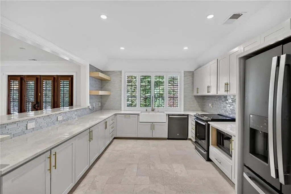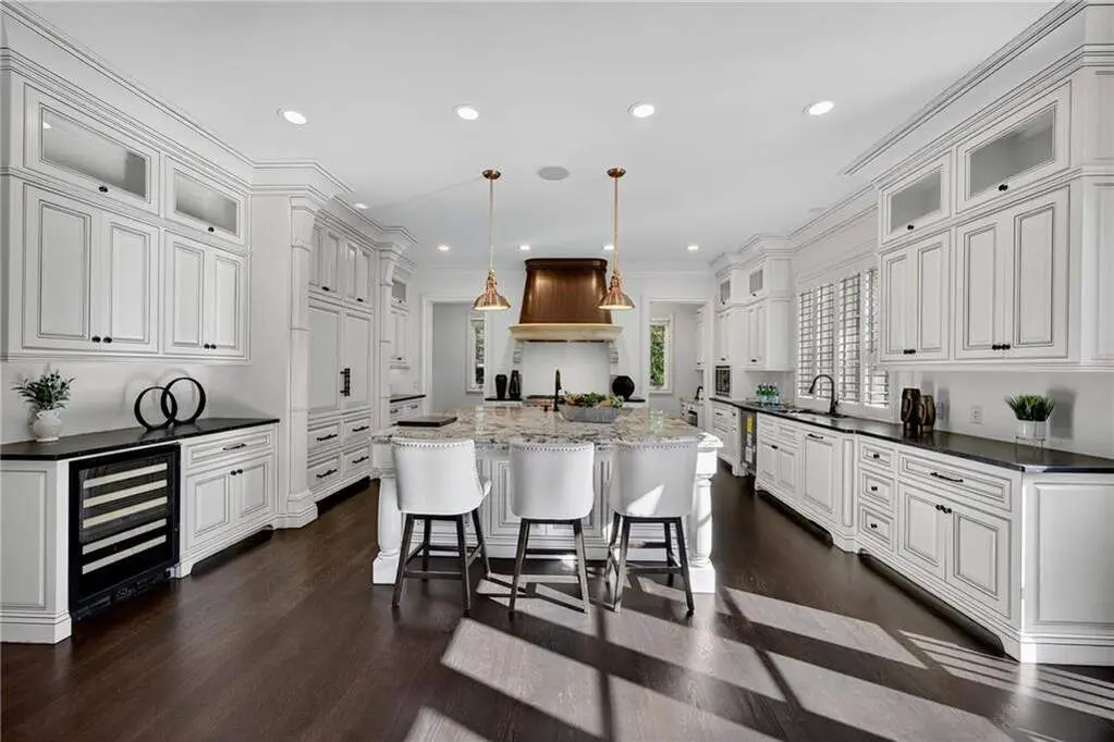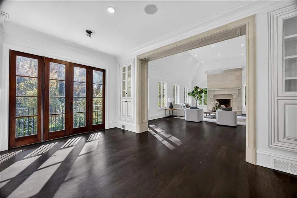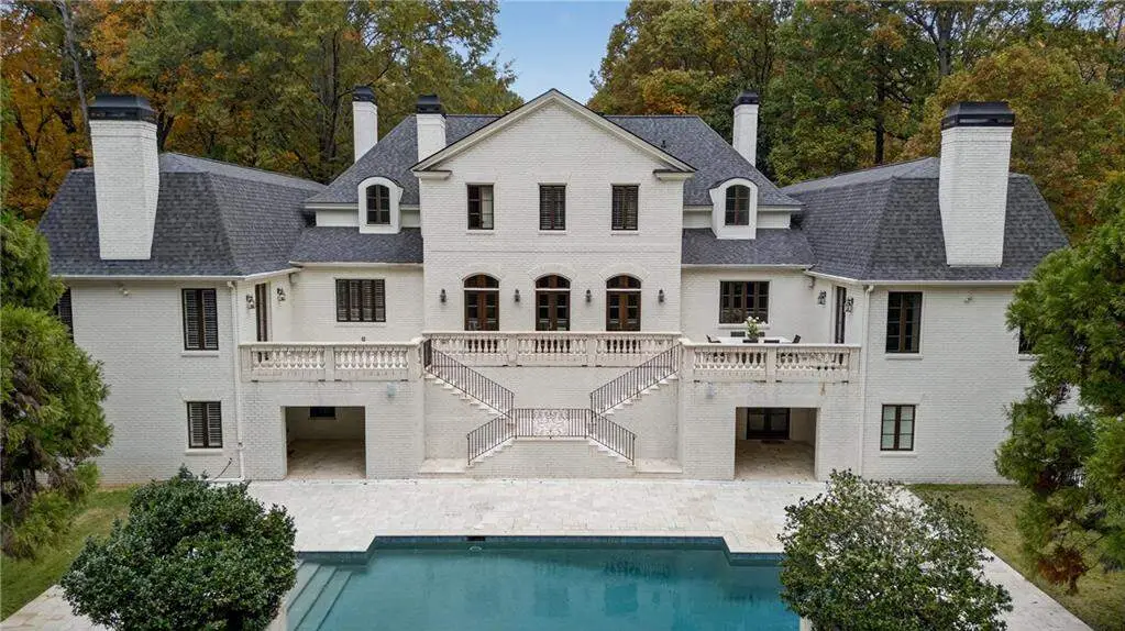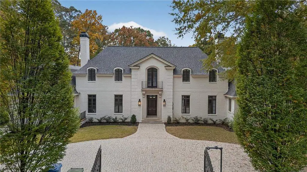 Located on a quiet cul-de-sac in one of Buckhead's most coveted neighborhoods, this stunning custom home combines timeless architecture with modern luxury. Behind stately gates, the residence features elegant symmetry, a slate roof, and beautifully landscaped grounds. Inside, light-filled living spaces showcase exceptional craftsmanship, from arched French doors to rich millwork and designer finishes. The chef's kitchen impresses with marble counters, professional-grade appliances, and a striking copper hood, huge granite island opening to inviting living and dining areas. The fireside primary suite on the main level offers vaulted ceilings and a spa-like marble bath with dual vanities and a soaking tub. Multiple terraces overlook the private, wooded backyard with a heated pool, creating a perfect setting for entertaining and relaxation. Newly refinished dark walnut hardwoods flooring and fresh paint throughout. Finished daylight terrace w/ bed/ bath, large flex space, storage, bar area. This exceptional home blends privacy, sophistication, and proximity to Buckhead's best shopping, dining, and top-rated schools.