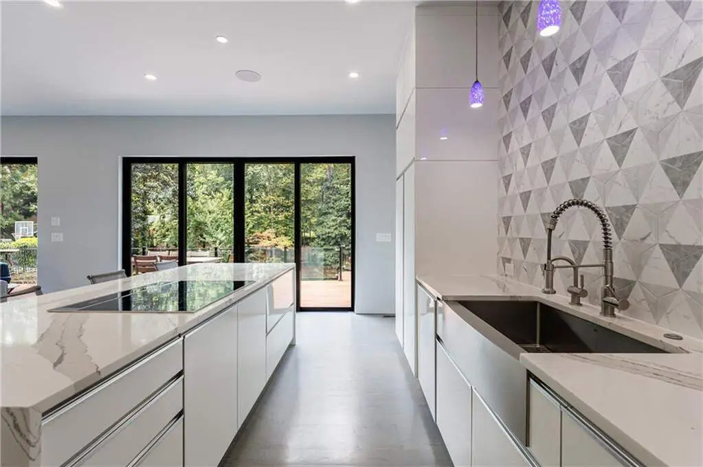 Tucked away on a quiet, tree-lined street in the heart of Buckhead, this exceptional modern residence sits on a private and expansive 0.83+/-acre lot-just minutes from top-rated schools, premier shopping, PATH 400, and all that Atlanta has to offer. From the moment you enter, the home captivates with its light-filled, open-concept main level, soaring ceilings, and clean, contemporary lines. The spacious great room seamlessly flows into a stunning chef's kitchen, featuring a dramatic quartz waterfall island, top-of-the-line Miele and Sub-Zero appliances, custom soft-close cabinetry, and double ovens, including a steam oven. The main level offers a formal dining room, a dedicated home office, and a private guest suite with a full bath. A spacious two-car garage with soaring 16-foot ceilings is also located on this level, the garage already has an indoor basketball hoop but could also be transformed into a car lift system, making it a perfect fit for automotive enthusiasts or collectors. The two car garage is complete with two electric car chargers. Another feature of the home is a total of seven electric shades throughout the house, the electric shades on the main living area doors can remain open while keeping out the sun, insects etc. The two electric shades on the covered outdoor deck on the main level can transform the space from an open-air setting to a fully enclosed screened porch - a truly impressive and versatile feature. A modern staircase leads to the upper level, where you'll find three generously sized en-suite bedrooms, plus a versatile bonus room ideal as a second office or a fourth upstairs bedroom. The primary suite is a true retreat with a spacious walk-in closet and a luxurious spa-inspired bathroom, complete with a steam shower and Japanese insulated soaking tub-perfect for hot/cold plunge therapy. The finished terrace level includes a guest bedroom, home gym, media room, and an oversized single garage-an ideal setup for an au pair or in-law suite with private exterior access. Each level of the home offers seamless indoor-outdoor living, with over 2, 000 square feet of deck and patio space. Step outside to your resort-style backyard oasis, where you'll find a breathtaking infinity-edge pool with waterfalls, integrated spa, fire pit, and a level lawn-perfect for play, entertaining, or simply relaxing in total privacy. Designed with sustainability and quality in mind, this home features a solar array with battery backup, spray foam insulation, and energy-efficient windows for optimal comfort and efficiency. Premium materials include a durable TPO roof, IPE wood cladding and decking, modern solid wood doors, architectural hard plank, and stucco exterior-blending cutting-edge design with timeless craftsmanship.