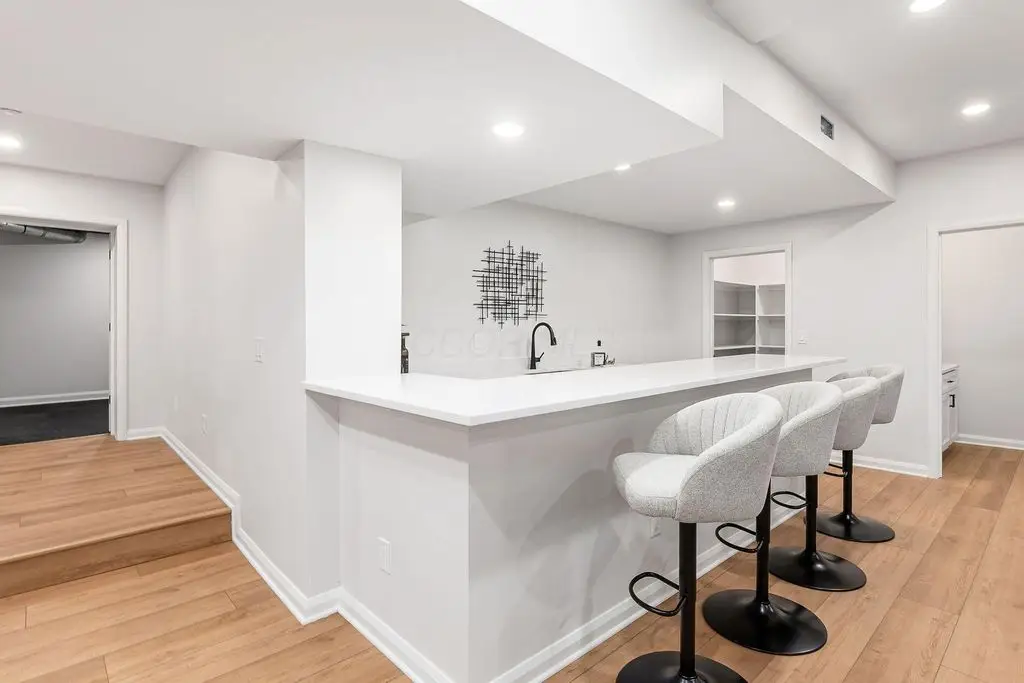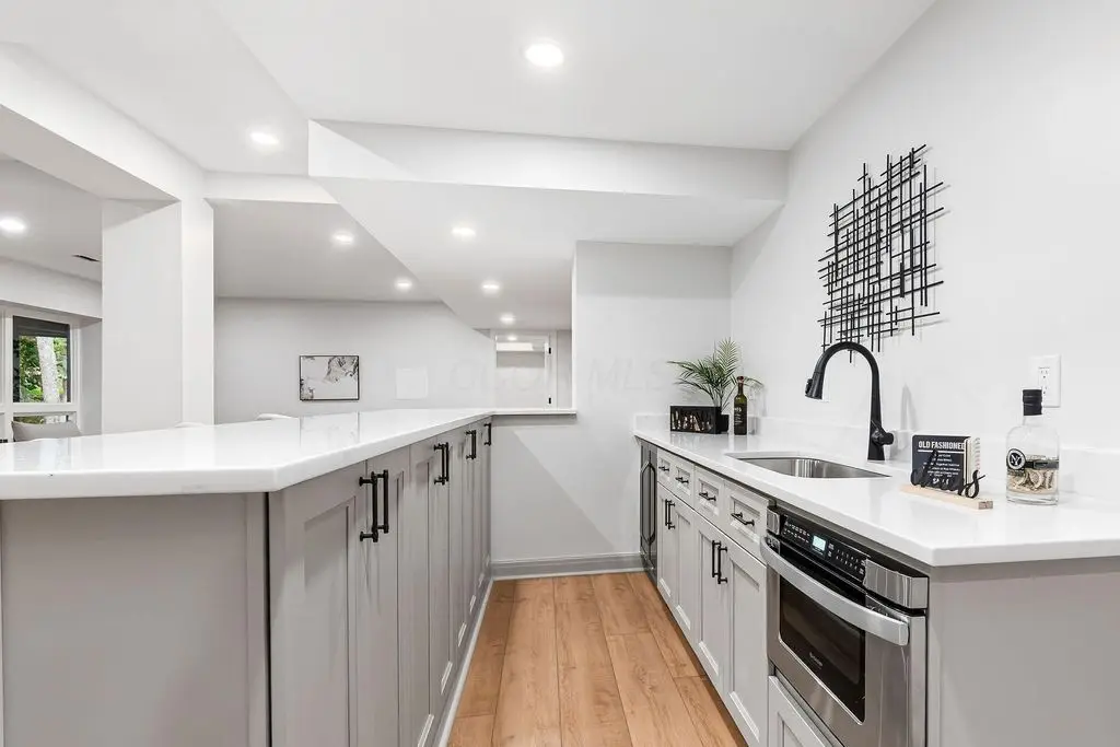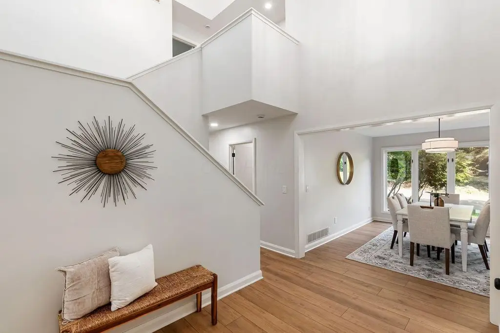 Experience refined living in this fully reimagined custom estate, tucked away on -2 private wooded acres in one of Westerville's most prestigious settings. Originally built in 1988, this home has been completely transformed inside and out with high-end modern finishes paired with timeless craftsmanship throughout its expansive sq ft of living space. The main floor features an open, light-filled layout with walls of windows that bring the outdoors in. The showpiece is a first-floor primary suite a true retreat offering a spa-like bathroom with a floor-to-ceiling tiled shower, dual rainfall showerheads, and a freestanding soaking tub. Step directly from your suite onto a deck overlooking the serene, wooded ravine. A first-floor laundry room and mudroom add seamless day-to-day convenience, while the custom chef's kitchen flows into the spacious living area perfect for entertaining. Waddington Oak flooring, soaring ceilings, and thoughtful architectural details elevate every space. The fully finished walk-out lower level is an entertainer's dream, complete with a custom bar, home gym, generous media area, a full bedroom with its own luxurious en-suite bath, and direct access to another outdoor deck ideal for gatherings or peaceful evenings surrounded by nature. With five total bedrooms, three full and two half baths, and multiple indoor/outdoor living areas, the home offers exceptional flexibility for multi-generational living or extended guest stays. This is more than a home it's a lifestyle. A world of privacy, sophistication, and connection to nature just minutes from top-rated schools, Hoover Reservoir, and the best of Westerville. Private showings begin soon contact Beth Williams directly to experience this extraordinary property.