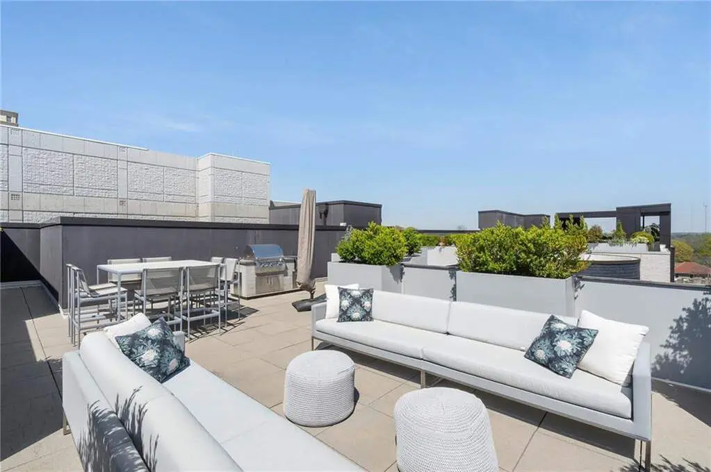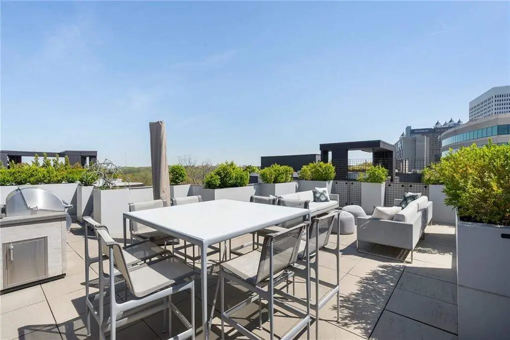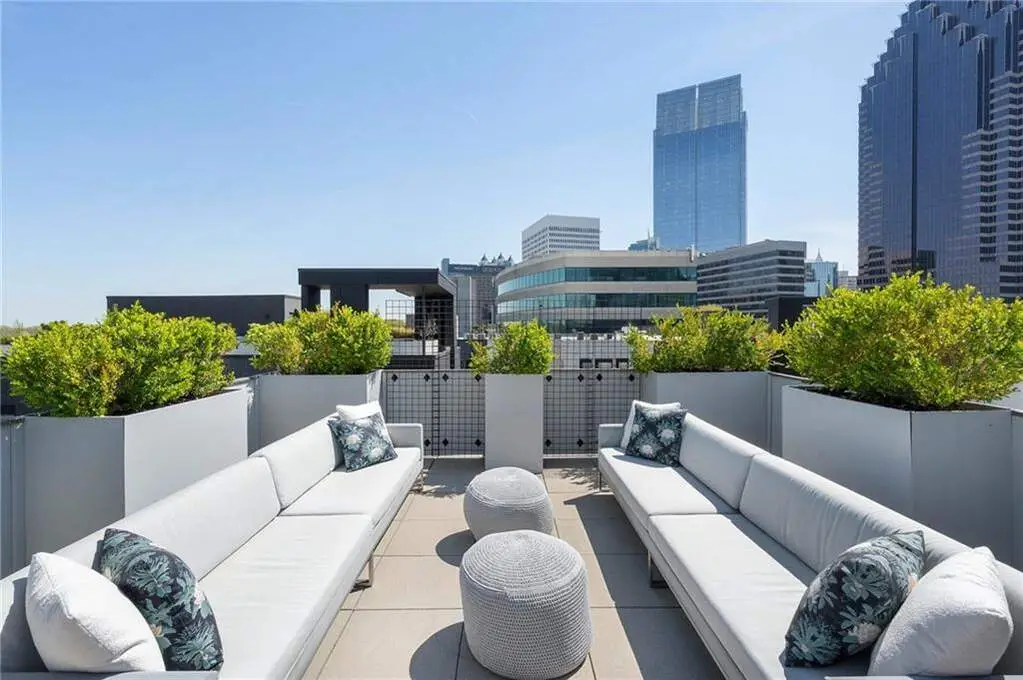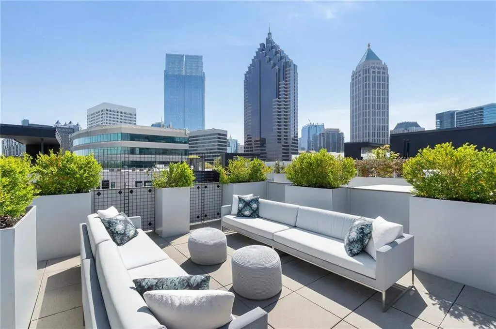 This exceptional penthouse residence blends elegant design, top-tier finishes, and unmatched privacy, complete with a private rooftop terrace offering panoramic views of the Midtown skyline and the lush treetops of historic Ansley Park! Soaring 12-foot floor-to-ceiling windows flood the open-concept living space with natural light, showcasing breathtaking vistas throughout. The chef's kitchen is outfitted with state-of-the-art Gaggenau appliances, a spacious island, and sleek custom cabinetry-ideal for entertaining or intimate dining. The living area features custom built-ins for generous storage and a gas fireplace for cozy ambiance. The owner's suite is a serene retreat, complete with a spa-inspired bathroom featuring a soaking tub, large glass-enclosed shower, and a fully customized California Closet system. A spacious interior den or secondary bedroom includes a full en-suite bathroom, custom closets, and a built-in desk, perfect for guests or a home office. The show-stopping private rooftop terrace is a rare find-your own personal oasis with jaw-dropping skyline views and a built-in gas grill, ideal for al fresco entertaining. Additional highlights include a private two-car garage within the building's secure, gated parking area. Residents enjoy access to exclusive amenities, including 24/7 concierge and security, direct elevator access, a fitness center, guest suite, and dog run. All of this is located in the heart of Midtown, just steps from Atlanta's best cultural institutions, dining, and green spaces. This home offers an unrivaled lifestyle and is sure to impress even the most discerning buyer.