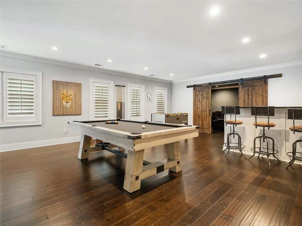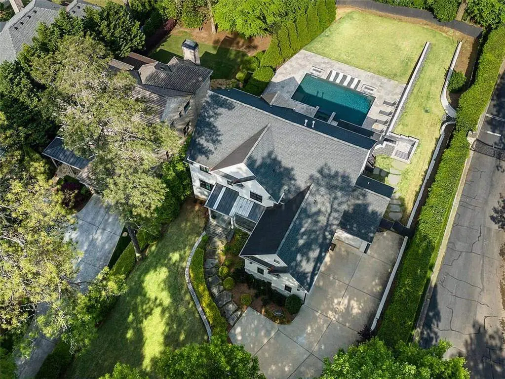 Situated on a level +/-1 acre lot in sought-after Sarah Smith School District, this thoughtfully designed home offers your own private oasis featuring a heated pool and spa with UV and ozone filtration, tanning ledge, and striking water and fire features perfect for year-round enjoyment. Inside, 10-foot ceilings and hardwood floors set a warm tone throughout. The chef's kitchen is equipped with an oversized island, marble countertops, Viking appliances, and a walk-in pantry, and it opens to a spacious living area and breakfast room. A screened patio with outdoor fireplace and a deck extends the living space outdoors. The main level also includes a separate dining room with wet bar, a home office with French doors, and a guest suite. Upstairs, the primary suite features a marble bathroom with soaking tub, rain shower, double vanities, and an oversized walk-in closet. Three additional bedrooms, a laundry room, and a flexible bonus room round out the upper floor. The finished terrace level is built for entertaining, complete with a home theater, game room with bar, gym, mudroom and an additional bedroom and bath. Outside, an outdoor kitchen with travertine flooring overlooks the pool, surrounded by mature landscaping and a fenced yard. A 3-car garage and whole-house water filtration system add everyday convenience to this Buckhead home.