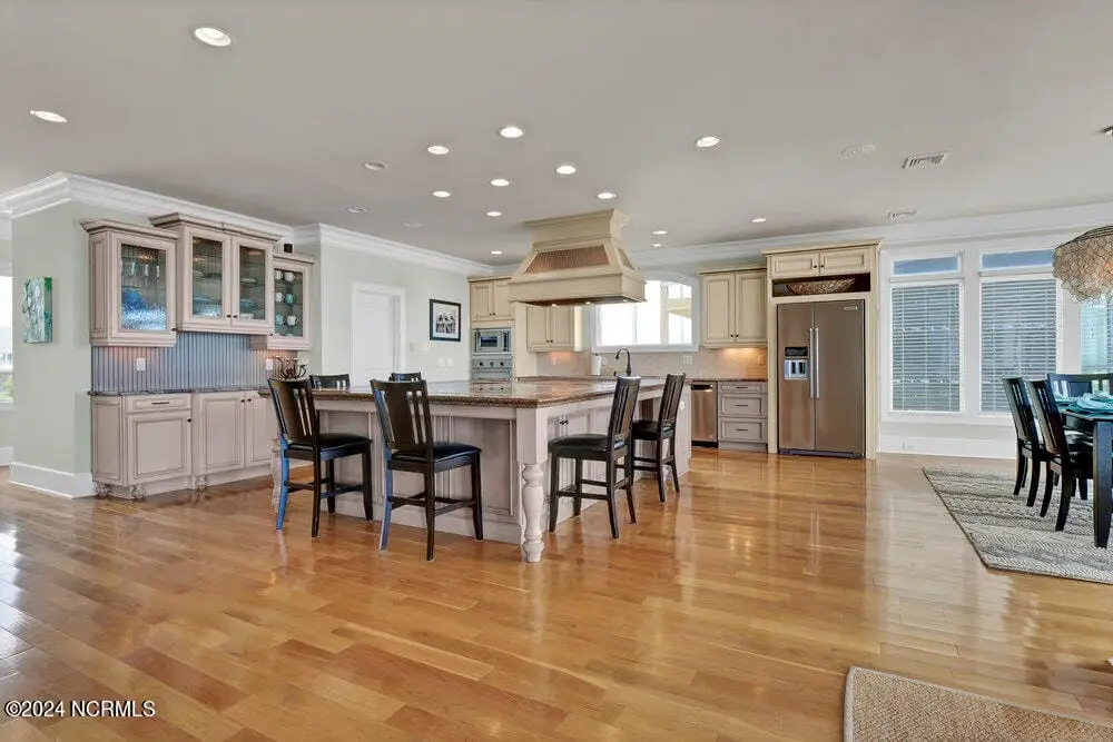 Located on the south end of Figure Eight Island, this stunning 5-bedroom, 4.5-bathroom home offers breathtaking views from every room. With its expansive windows, tall ceilings and spacious layout, you'll enjoy panoramic views of the ocean throughout. The gourmet kitchen features custom-built cabinetry, Viking appliances, and sleek granite countertops, perfect for preparing meals while soaking in the views. The luxurious primary suite offers its own private balcony, sitting area, and uninterrupted ocean views. With four garages, an elevator for easy access to all levels, and being offered fully furnished, this home is the epitome of coastal living. Experience the beauty of island life in a home that blends comfort, luxury, and unparalleled oceanfront views. Additionally, All hardwood floors recently refinished and a yacht club warrant is available, adding to the amenities of this exceptional property.