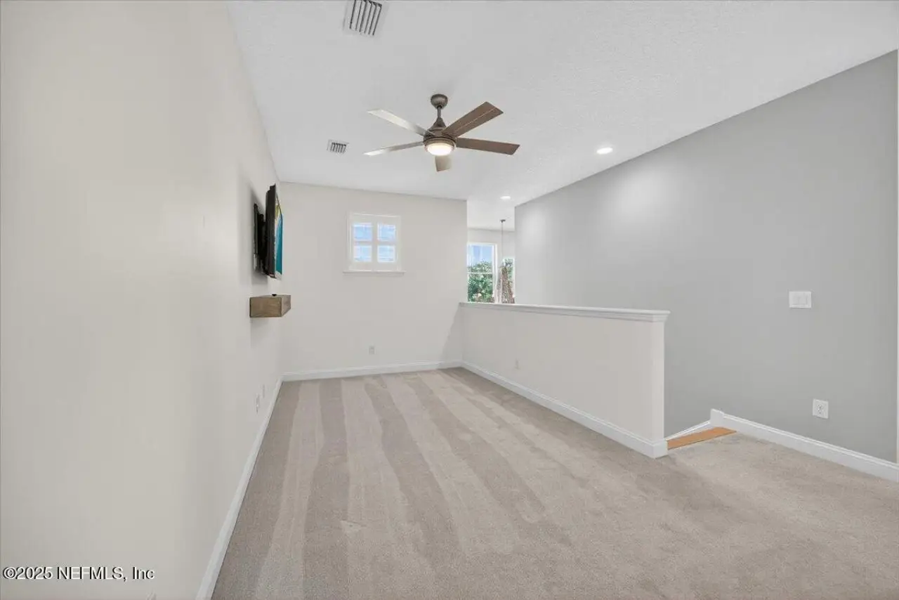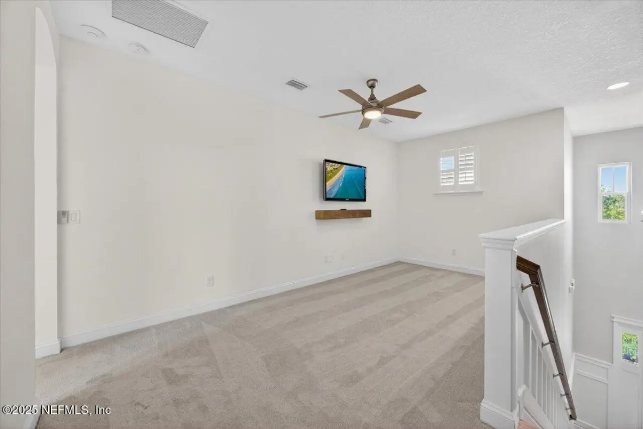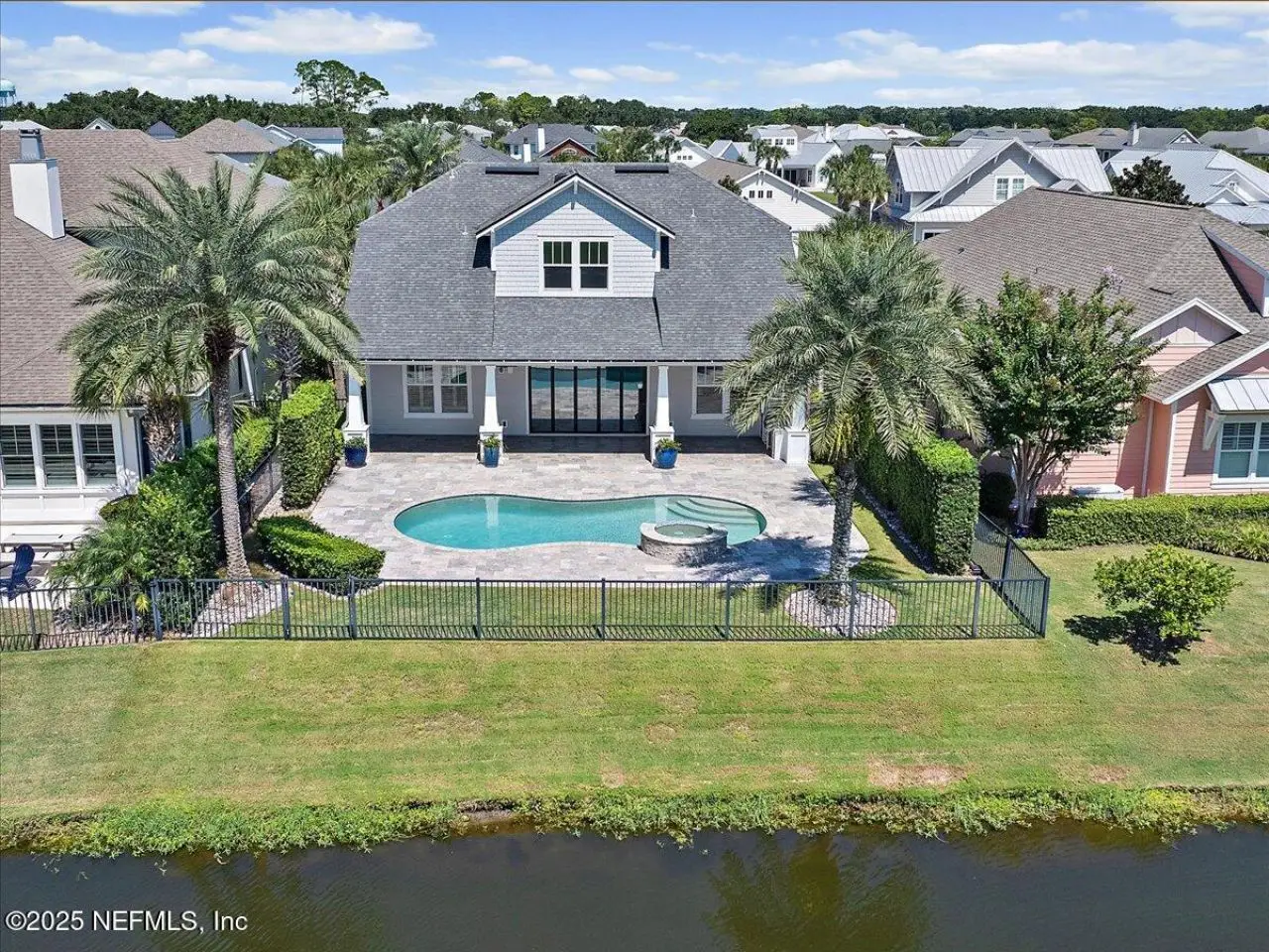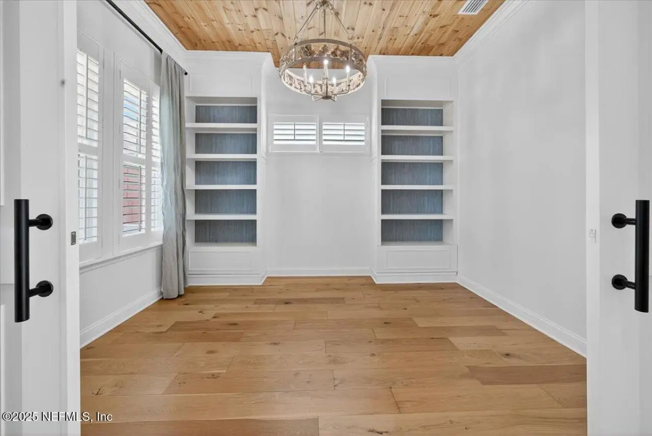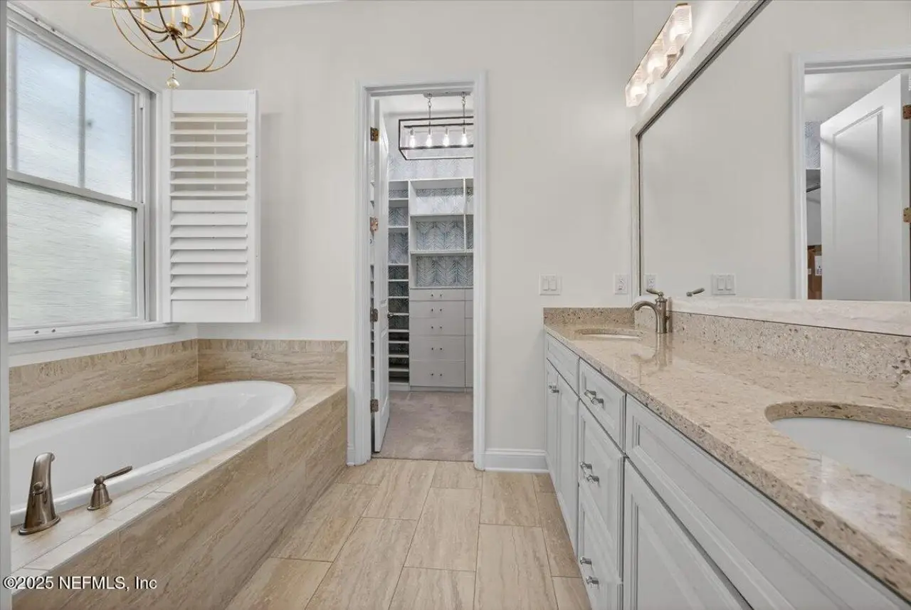 Welcome to your dream home in this exclusive updated & refreshed pool home nestled in prestigious Atlantic Beach Country Club. This home offers sweeping water to golf views, blending resort-style living w/everyday comfort. It is located minutes from the Atlantic Ocean, AB town center, A rated schools & parks. Charming exterior with front porch, very open concept w/high ceilings, 2 story foyer, wide plank natural tone wood throughout 1st floor ( just refinished ) , custom designer lighting & new fans, custom window treatments, (roman shades and plantation shutters), new glass door off family that fully opens to huge covered lanai with summer kitchen, freshly painted interior, including all cabinets and the island, re-surfaced pool and new tile surround. . Detail wood trim on many walls and some shelving,. Office with custom shelves, powder room, wine cooler laundry with stackable W & D and custom cabinets, spacious kitchen with large island, pantry, dining area, & family room .. with FP and TV wall with gorgeous linear gas fireplace & shelving ( all overlooking pool and water ) 1st floor primary with luxurious bath, oversized shower, soaking tub and large custom walk-in Closet. 2nd floor has a cozy loft & 3 bedrooms ,2 baths. ( 1 is ensuite ) . This home shows like new!