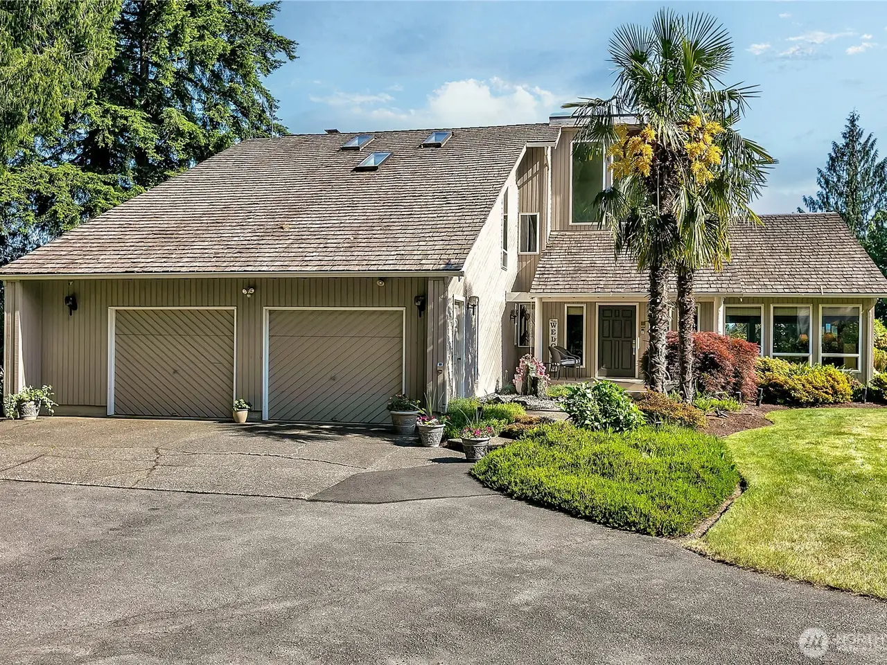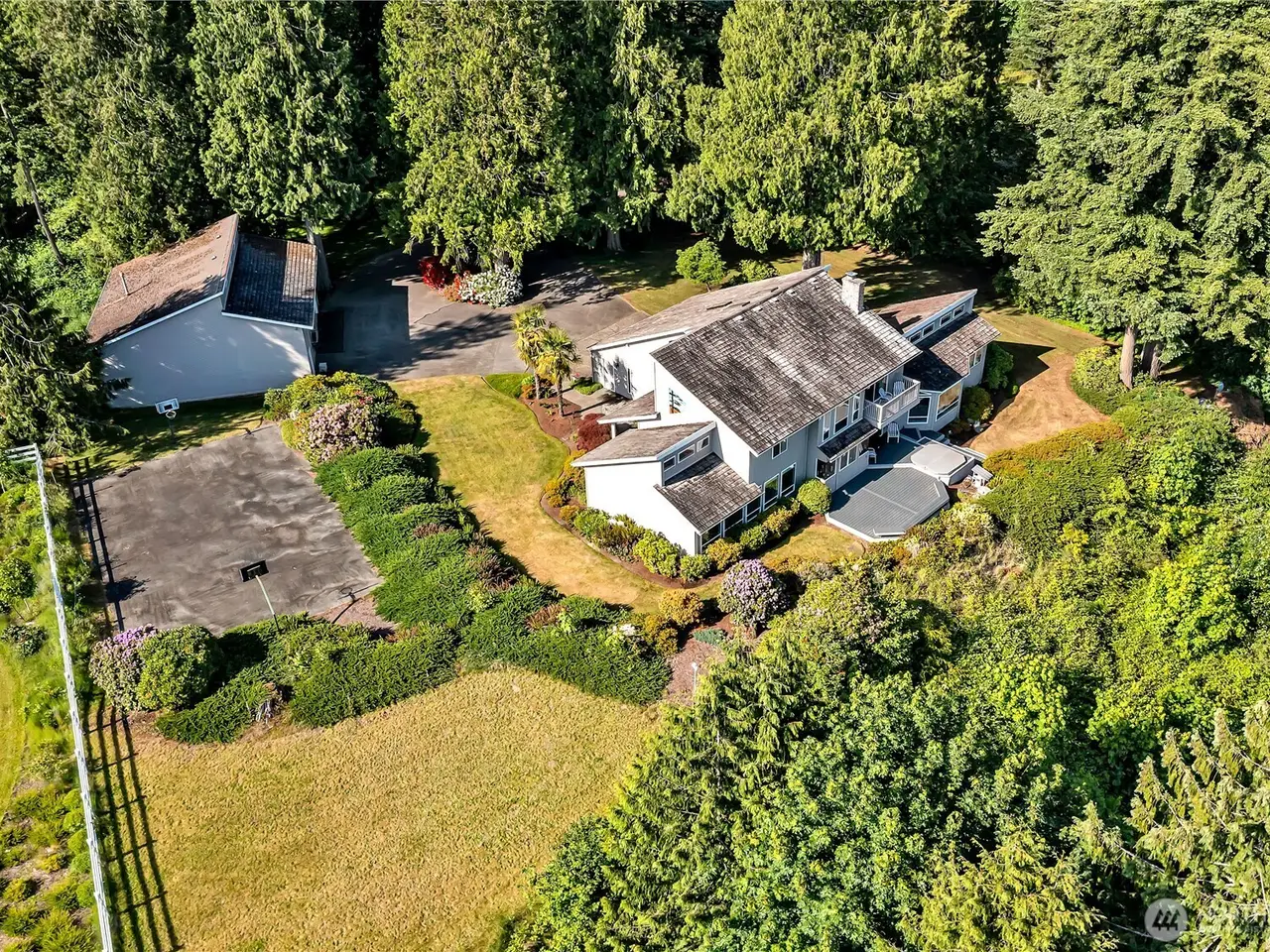 Experience Serene Luxury with Unparalleled Mt. Rainier Views. Nestled on a private 2.62-acre lot, 4-bedroom, 2.75-bath custom home. Vaulted ceilings welcome you into the formal living and dining areas. Expansive kitchen, complete with a cozy breakfast nook, provides ample space for culinary creations and entertaining. Adjacent to the spacious family room are two dedicated offices, perfect for remote work. The primary bedroom features an en-suite bath and a private deck on the second level with breathtaking views of Mt. Rainier. Step outside to the main-level deck with hot tub and meticulously maintained nature-inspired landscaping. Sport court with basketball hoop. Oversized 40'x40' shop for all your toys. Make this your next home!!