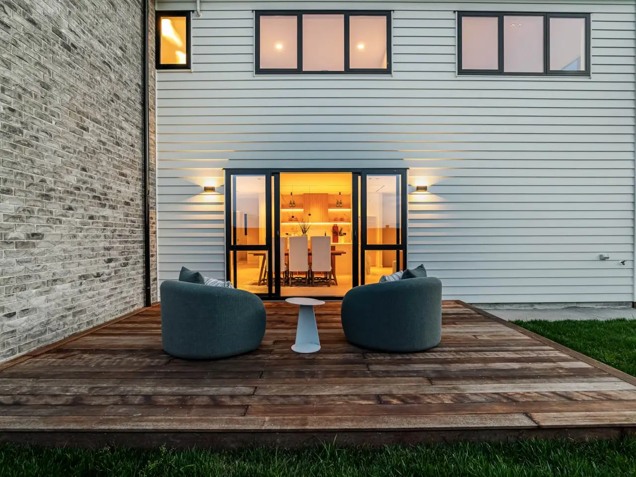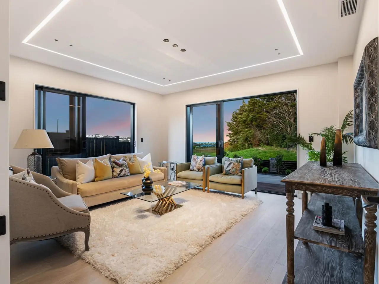 Looking for something truly special? This stunning brand-new 6-bedroom, 4.5-bathroom home at 10 Dulcie Way in Millwater is a rare find, where thoughtful design, luxury detailing, and family practicality all come together in perfect harmony. Built by Tophill Homes, an award-winning builder recognised at the 2024 Master Build House of the Year Awards, this residence sets a new benchmark for quality and comfort.Stepping inside, you’re greeted by an impressive entryway and soaring ceilings that create an immediate sense of space. To the right, a generous separate lounge faces the lush bush reserve — an inviting spot for quiet evenings or relaxed gatherings. The heart of the home unfolds into a light-filled open-plan living, dining, and kitchen area that’s as elegant as it is functional. The kitchen is a showpiece, beautifully finished in white and warm timber tones, featuring a large stone island, premium appliances, and an abundance of storage. A fully equipped second kitchen adds both convenience and versatility — perfect for entertaining or family living.Seamless indoor-outdoor flow leads to the Kwila deck and private backyard, ideal for summer dining or peaceful relaxation. Completing the ground floor are a guest toilet, separate laundry, and a granny-potential wing offering two bedrooms, a living area, and a stylish bathroom — perfect for extended family, guests, or work-from-home flexibility.Upstairs, a spacious sitting area with high ceilings overlooks the bush and features a built-in bar with sink and wine cooler — an entertainer’s dream. There’s a luxurious master bedroom with an expansive walk-in wardrobe and elegant ensuite with freestanding bath and double vanity, plus another master with ensuite and two additional bedrooms sharing a well-appointed family bathroom.With a 10-Year Master Build Guarantee, premium finishes, high-spec features, and a peaceful, elevated setting just minutes to shopping mall, schools, and the motorway, this is more than a home — it’s a lifestyle of refined comfort and enduring quality. Contact us today to book your private viewing or attend our Open Homes.