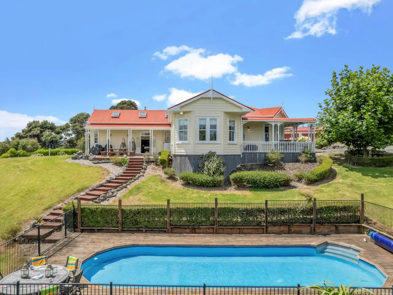 Walking through the gate and looking down the 100-metre drive, you will be captivated by this extraordinary home. This award-winning modern re-creation of a 1900’s era Victorian Villa, resplendent in its beauty, leaves a lasting impression on everyone who visits! It's more than just a home; it's a dream come true, blending contemporary construction with traditional character and the endearing charm of yesteryear!This 6-year-old Supreme Winner of the NZ Grand Designs House of the Year Award bears the exclusive hallmark of bespoke luxury and impeccable craftsmanship. Driving down the concrete driveway past the two-bedroom guest dwelling-The Lodge-the magnificent scale of the villa emerges.Private and established on more than three acres of native bush and landscaped gardens, the villa’s elevated position offers views of the McKenzie Ranges, Kaipara Harbour, and idyllic rural vistas.The luxurious, richly textured interior décor exudes glamourous opulence throughout, with plush carpet underfoot, gallery hallways, 3.6 m high ceiling, feature stained glass windows & bejewelled elegant chandeliers overhead. The layout is spacious & grand. Built to modern standards, the home features a heat pump, double glazing & solar power, providing energy-efficient, comfortable living all year round.The hub of the home is the epic open-plan designer kitchen/dining room with a towering Cathedral ceiling. The awe-inspiring rural views from the enormous kitchen picture frame window take your breath away. The designer kitchen features bespoke imported cabinetry, a Belling Gas Hob, a Wagener coal range & double fridges. Access opens out onto the entertainment area with steps leading down to the swimming pool & deck. A spa pool with a covered rotunda is also included.The family lounge, with its wood burner fire, is an intimate & relaxing space for the whole family. The library doubles as a media room, secondary living, or extra bedroom. The family bathroom features a claw-foot bathtub & pedestal basins.The five large bedrooms include the Master Suite with a walk-in wardrobe and ensuite bathroom.The Lodge accommodates extended family living or additional income opportunities, e.g., Air BnB.A large, near-new triple Versatile garage offers excellent storage & vehicle parking.