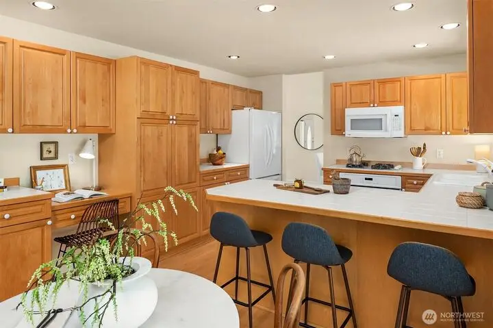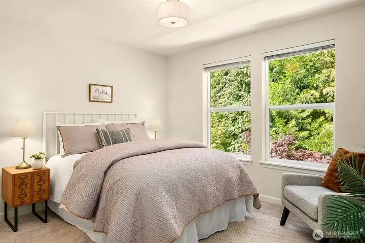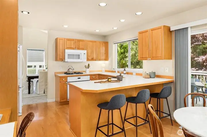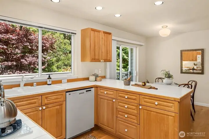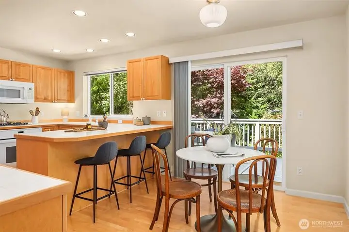 Welcome to Maple Knolls, a private gated community nestled in the charming Richmond Beach neighborhood. Uniquely situated & naturally bordered by trees, this location offers a true sense of tranquility. Main floor features open-concept living spaces, a generous kitchen, laundry rm, garage access & primary suite, complete w/soaking tub, shower & plenty of closet space. A floor plan well-suited for everyday convenience. Upstairs, you’ll find 2 bdrms & full bthrm. Enjoy lush green views of Kruckeberg Botanic Gardens from the windows of your own home. The spacious back deck provides a quiet, peaceful retreat—your own outdoor oasis. Enjoy the services of a well-managed HOA & located just a few minutes from parks, cafes, groceries & more!
