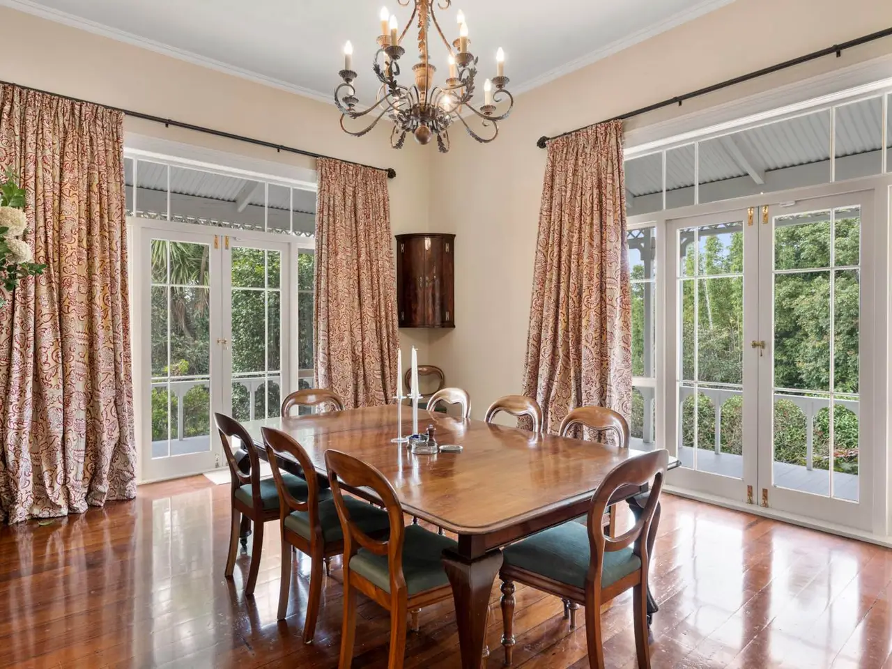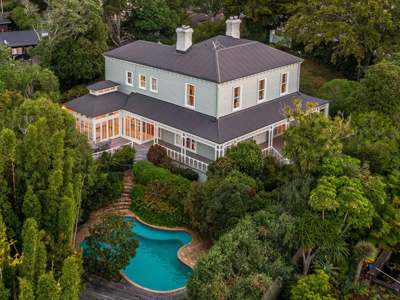 Introducing Glenholm, a majestic period residence steeped in history and nestled atop Remuera's northern slopes, offering panoramic views of the tranquil inner harbour and Hauraki Gulf islands. Dating back to 1868, this distinguished property seamlessly merges timeless elegance with contemporary living, ideal for discerning buyers seeking sophistication and comfort. Positioned in the heart of coveted Remuera village, adjacent to King's School and within the prestigious double grammar zone, Glenholm epitomizes effortless style and convenience, making it an ideal retreat for families. Boasting four spacious double bedrooms, two with en suite bathrooms, along with a generously sized family bathroom, Glenholm provides ample accommodation for family and guests alike. Additionally, a fifth bedroom serves as a self-contained studio flat, adding versatility to the living space. At the heart of the home lies a substantial kitchen and breakfast room, centred around a double Aga range cooker, perfect for culinary enthusiasts. Flowing seamlessly from this hub is a sun-drenched conservatory, offering a serene space for relaxation and entertainment, with folding doors leading out to the expansive deck. The ground floor also features an elegant dining room, opening onto the wrap-around covered veranda, and a formal lounge boasting picturesque garden views. Completing the ensemble is a generously proportioned study, providing a quiet retreat for work or contemplation. Nestled within private, sun-drenched gardens, the outdoor spaces at Glenholm offer various deck and terrace areas, bordered by lush foliage and mature trees, culminating in a sparkling swimming pool. Adjacent to the double garage, a separate study room and workshop provide additional space for hobbies or a teenage hideaway. Experience the timeless elegance of Glenholm - inquire now to secure your place in this exclusive enclave.