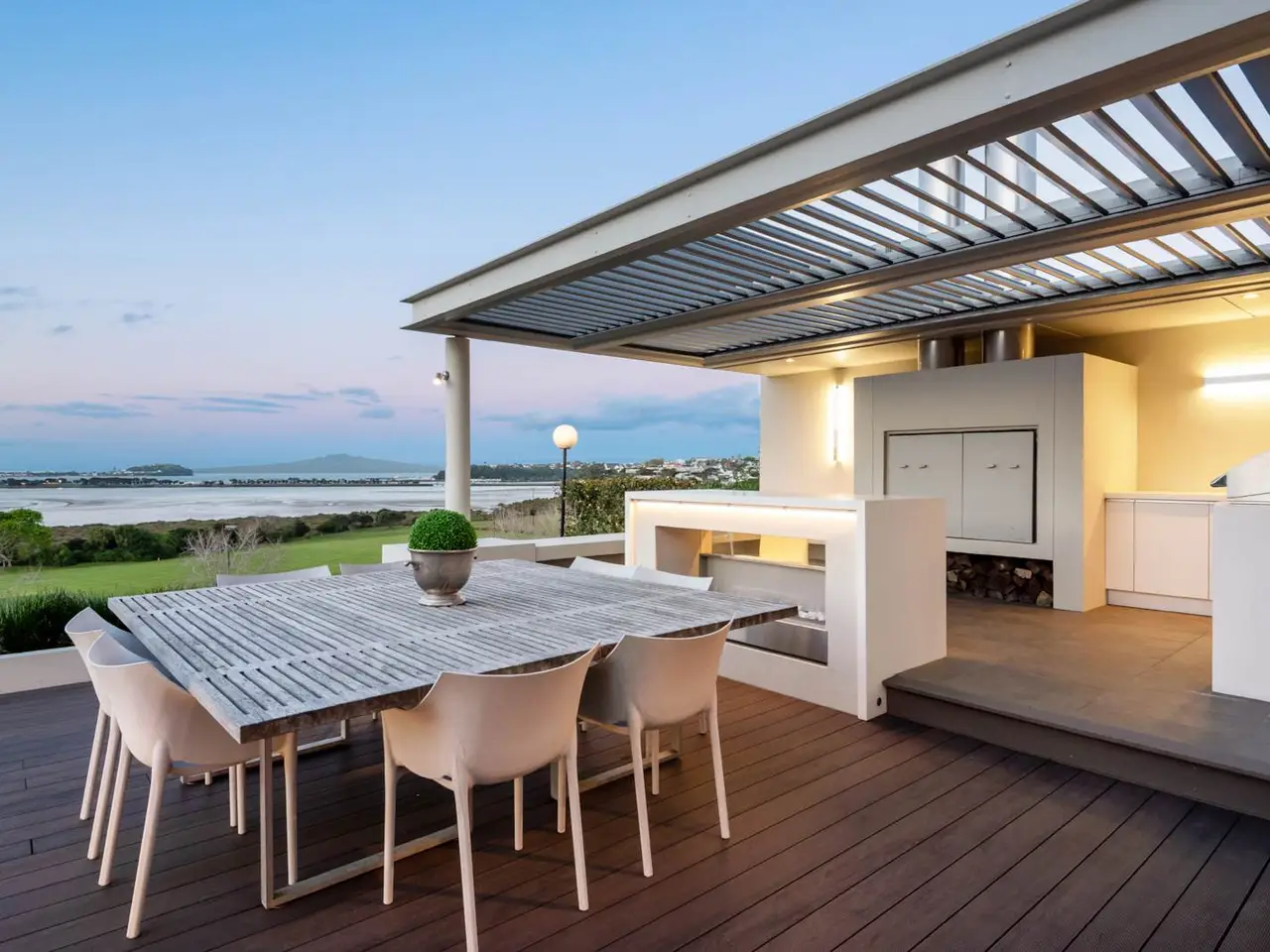 Positioned along one of Remuera’s most prestigious streets, this residence by the late Claude Megson—a visionary architect who expressed emotion through space—is not merely a home but a living work of art where light, views, form and life move in harmony. Set on an expansive 1,102 sqm site, the property captures 270-degree panoramic views over Bloodworth Park, the harbour, and the city skyline. Throughout the day, sunlight transforms the interiors into a dynamic canvas of shifting light and shadow. Inside, sculptural ceilings, rich textures, and abundant natural light define the interiors. The Gaggenau-equipped kitchen connects seamlessly with three elegant living areas that flow to an elevated viewing deck with louvred canopies, outdoor BBQ, fireplace, and a relaxing lounge retreat. Beyond, the beautifully landscaped grounds create a private sanctuary featuring a professional 18-metre putting green, perfect for golf enthusiasts. Accommodation includes four bedrooms, a study, three living rooms, and four bathrooms. The master suite features dual dressing rooms and a luxurious ensuite. Contemporary comforts include ducted heating, double-glazed windows with insect screens, secure parking facilities with a purpose-built carport, double garage, and generous off-street parking—all harmoniously integrated into Megson’s timeless architectural vision. Situated within the coveted Double Grammar Zone (AGS and EGGS) and close to leading private schools such as King’s School, St Kentigern’s, and ACG, the residence offers both educational excellence and architectural inspiration. With Remuera Village, Newmarket, Parnell, and the waterfront just minutes away, this home transcends conventional living—a rare composition of light, design, and the quiet poetry of everyday life. Tender: Closes on Thursday 6 November 2025 at 4:00PM (unless sold prior)