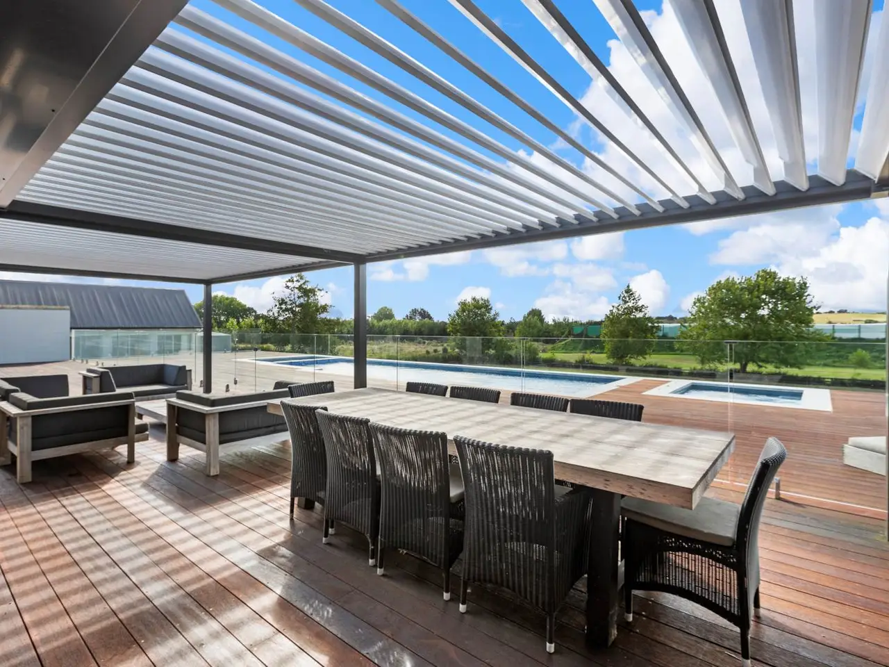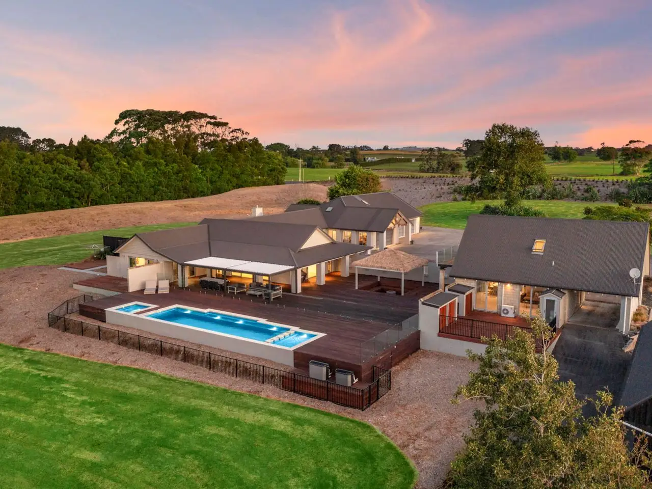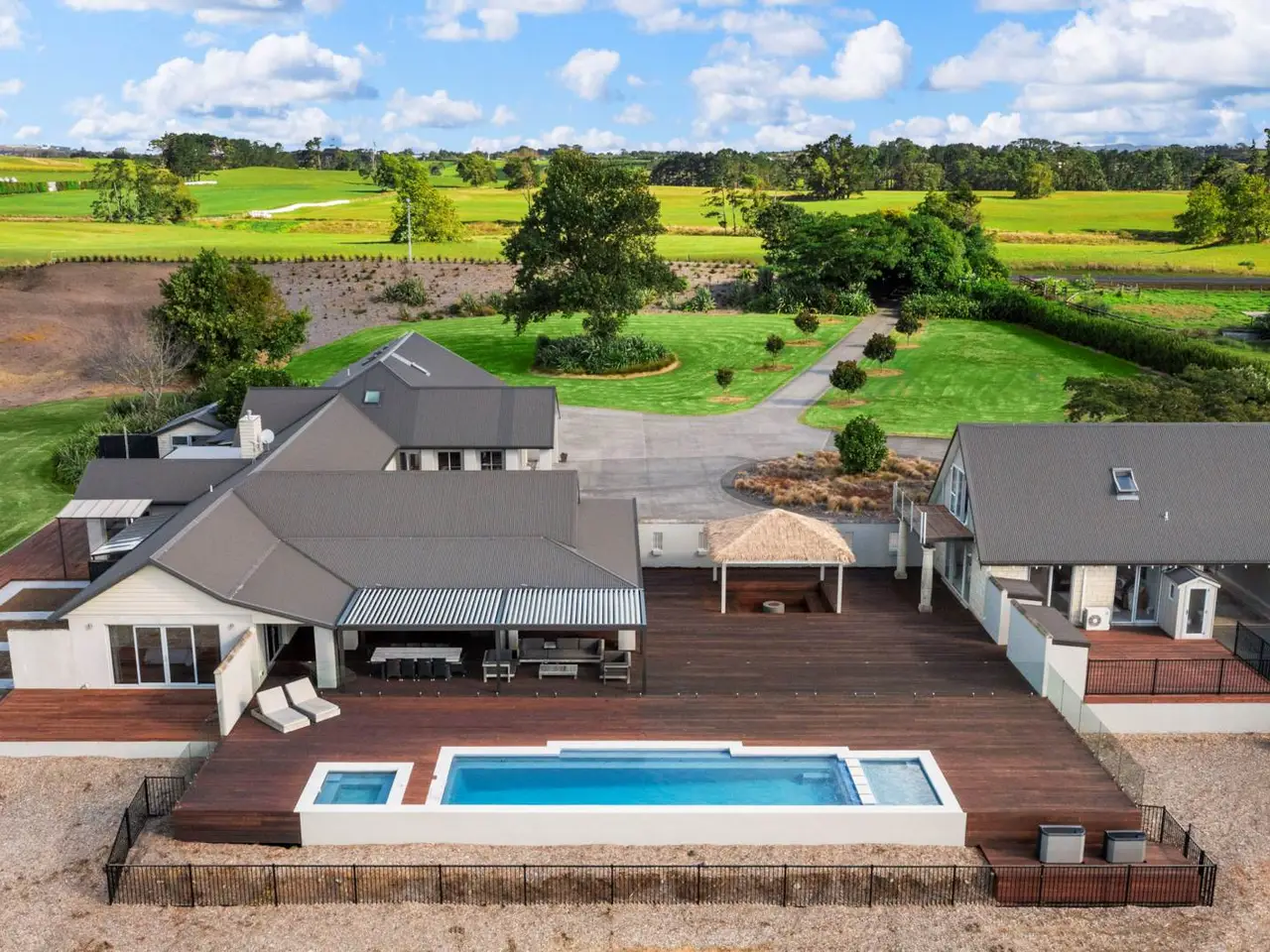 Located in the quiet Franklin community of Kingseat, neighbouring Karaka & Patumahoe village, no detail has been overlooked or expense spared in the creation of this magnificent north-facing solid masonry home of grand proportions and its additional independent living facilities. Set on 3.48 hectares/8.6 acres in a sought after locale and boasting fine fittings and fixtures, this huge premium quality 596 square metre (approx) residence incorporates six bedrooms comprising the sumptuous, privately positioned master bedroom with large walk-in robe, chic ensuite and access to two decks, scenic vistas and gentle evening breezes. The further five sunlit bedrooms, all with built-in wardrobes and tranquil views, share a bathroom with free-standing bath and shower. Thoughtful design is evident with one living room strategically placed in the dormitory wing for use as a study/rumpus room for the youngsters. There’s a separate powder room, a large well-appointed laundry with outdoor access and excellent storage provision. Centrally located, the modern kitchen basks in light-filled reflective surfaces with glossy tiled floors, granite benchtops, expansive cabinetry and quality stainless steel appliances. Super-spacious sophisticated family living and dining adjoin unsurpassed entertaining facilities with a massive media/entertainment room spilling out to ultra-large louvre-covered pergola and Kwila decks wrapping around idyllic leisure in the heated mineral swimming pool and spa and around the covered fire-pit. There’s a carport plus internal entry garaging for six cars with a man cave plus bar and bathroom above and, on the opposite side of the pool, an impeccable 155 square metre (approx) fully equipped two bedroom pool house stands ready to lavishly accommodate visitors. Further along the property there’s also a 130 square metre (approx) barn with a gym room, a living room with shower and an implement shed and still so much space for further development if desired. Ducted air conditioning, security system, water tanks etc. There’s absolutely nothing to need in this super-sized, superbly equipped modern mansion.• Massive north-facing 596m2 (approx) mansion set on 3.48 ha/8.6 acre• Impressive gated entry. Security system. Prestige locale• Ducted air con. Fine fittings & fixtures throughout• Rumpus/study/ lounge room adjoining dormitory zone• Sunlit open plan living & dining spilling out to Kwila decks• Chic quality modern kitchen with granite benchtops• Huge entertainment room opening to Kwila decks• Lavish master bedroom, walk-in robe, ensuite & deck access• + 5 scenic spacious bedrooms, some flowing outdoors• Sleek family bathroom with free-standing bath & shower• Powder room. Large laundry + outdoor access. Storage• Vast expanse of Kwila decks. Motorised louvred pergolas• Stunning heated mineral pool & spa + covered fire pit• 6 car garaging. Internal entry. Man cave with bathroom• Impeccable fully self-contained 2 bedroom pool house• 130m2 (approx) shed. Gym room & bathroom. Storage room• 4 carports. Extra parking. 3 phase power. 84,000L tanks• 13 km to Southern motorway on-ramp• Just 12 km to Pukekohe township & community facilities• Close proximity to Patumahoe School & Strathallan bus route Auction: 177 King Street, Pukekohe (Branch Office) on Thursday 20 November 2025 at 2:00PM (unless sold prior)
