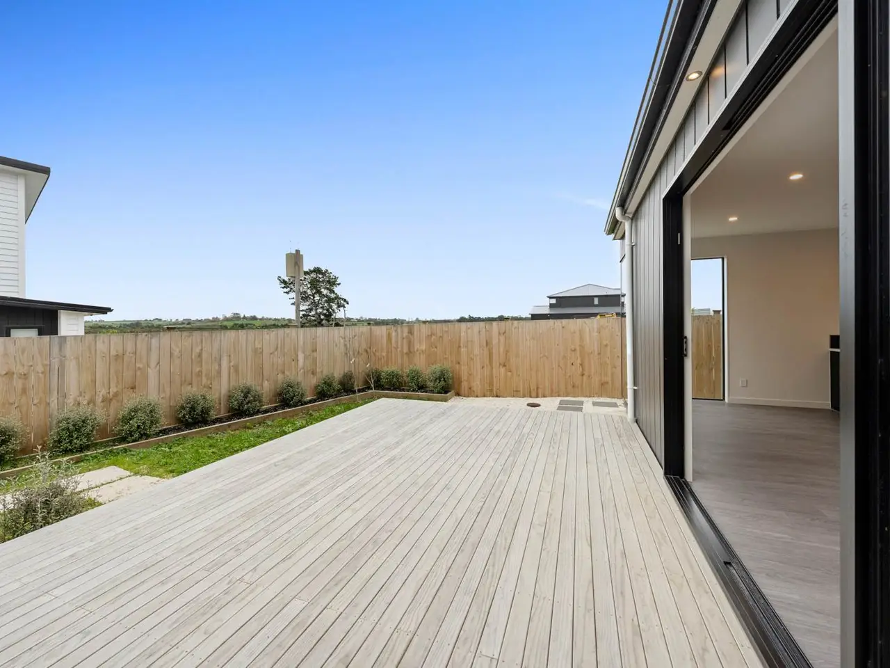Welcome to a sophisticated new lifestyle in the sought-after Park Green community – a master-planned development combining modern architecture, natural surroundings, and an emerging neighbourhood hub.Positioned on a generous 393m² freehold section, this brand-new architecturally designed residence showcases superior craftsmanship and luxurious finishing across two light-filled levels, offering the perfect blend of functionality and style.Key Features:•Designer Kitchen & Open Plan Living: The heart of the home features a high-spec stone benchtop kitchen fitted with premium Bosch appliances. The open-plan layout flows effortlessly to a sun-soaked deck – perfect for entertaining or enjoying tranquil evenings outdoors.•Multiple Living Areas: Enjoy both a formal lounge for quiet moments and a relaxed family area upstairs, ensuring plenty of space for everyone.•Flexible Bedroom Configuration: Five spacious bedrooms, including a ground-floor guest suite with a private ensuite – ideal for extended family or guests. The upper level hosts four additional bedrooms, including a master retreat with walk-in wardrobe, ensuite, and a large balcony with sweeping views of the reserve and waterway.•Premium Comfort & Security: Featuring multiple heat pumps, underfloor heating in bathrooms, central vacuum, keyless entry, and video intercom security. A large internal access double garage provides convenience and ample storage.Lifestyle & Location:Set within a peaceful, high-quality neighbourhood, this home is a short walk to scenic coastal pathways, the newly opened primary school, and future neighbourhood amenities including boutique shops and cafes. The area is fast becoming one of Auckland’s most desirable lifestyle destinations.The Opportunity:With its contemporary design, luxurious features, and unbeatable location, this property presents an exceptional opportunity for families seeking a refined lifestyle with space, security, and natural beauty.Contact us today to arrange your private viewing and secure your place in Park Green – Karaka’s premier new community.