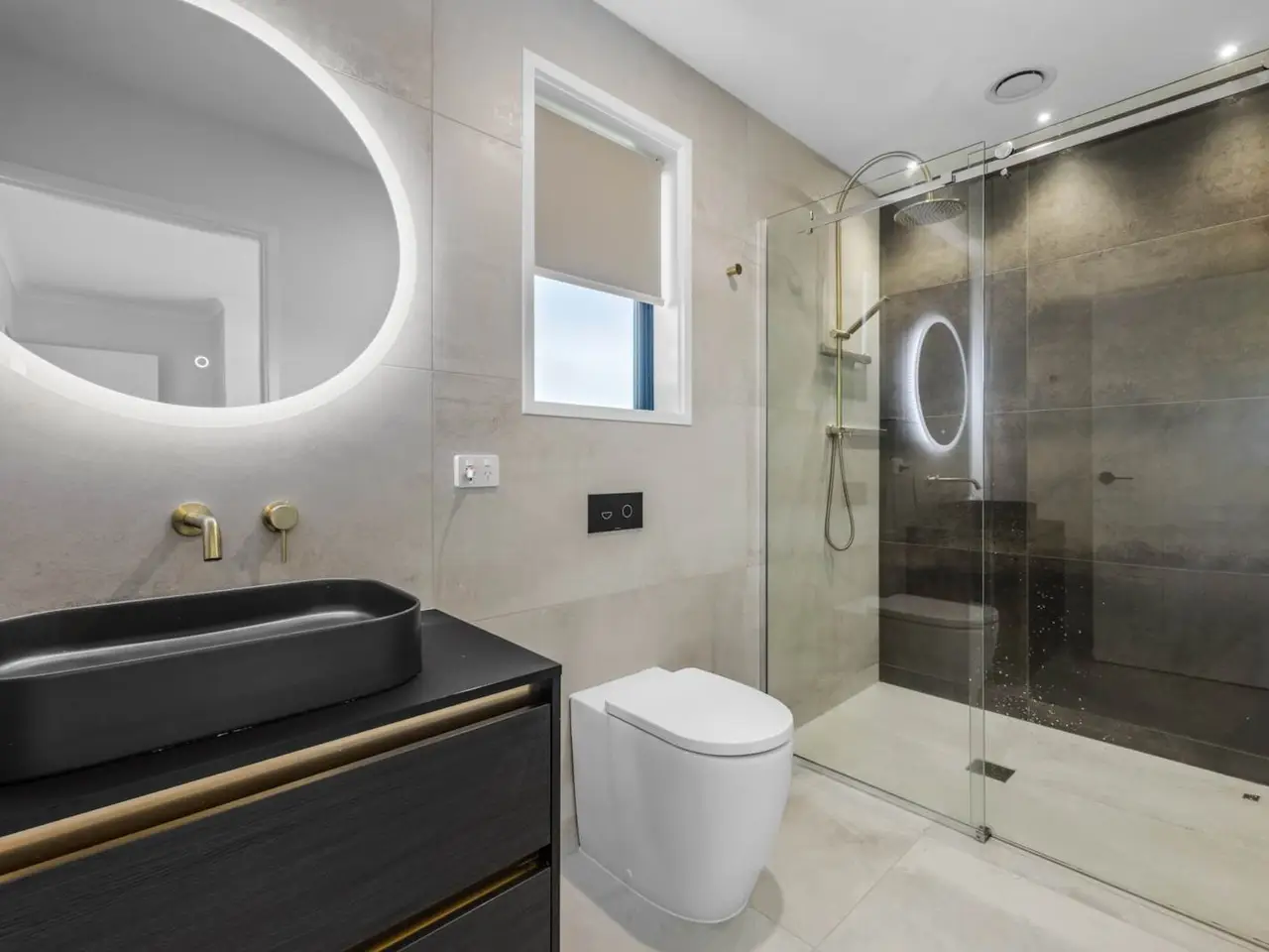 • Master bedroom with custom-built cabinetry and stone benchtop