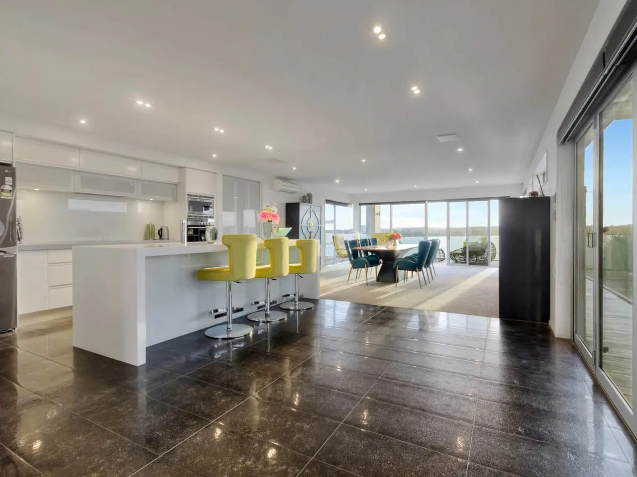 Open plan living/dining areas flowing onto decking