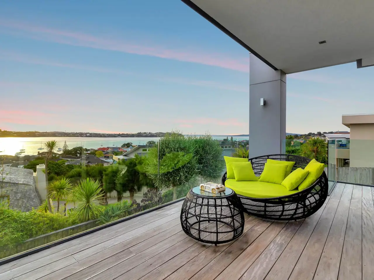 Expansive decking with breathtaking Estuary and city skyline views