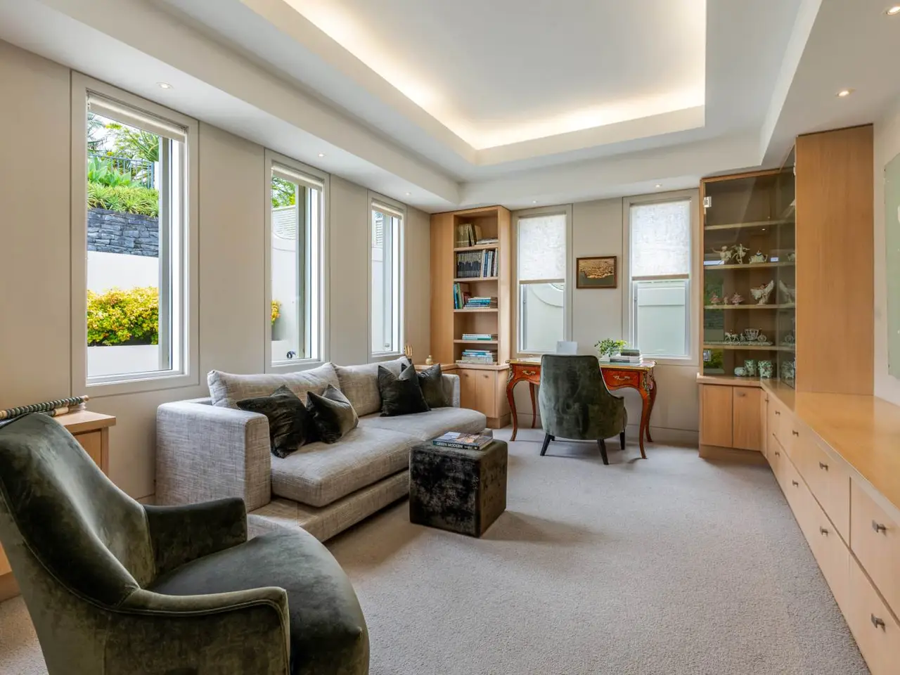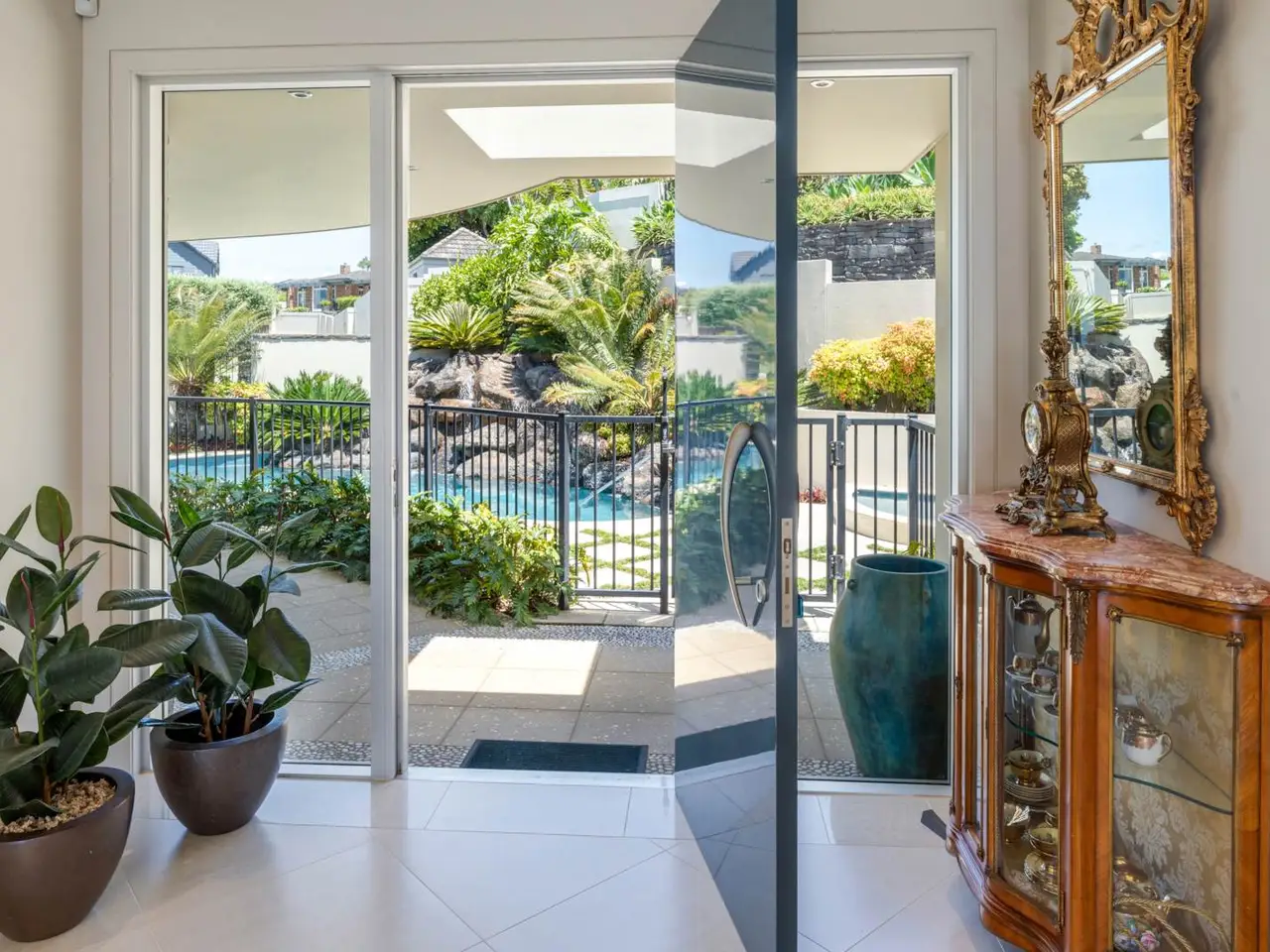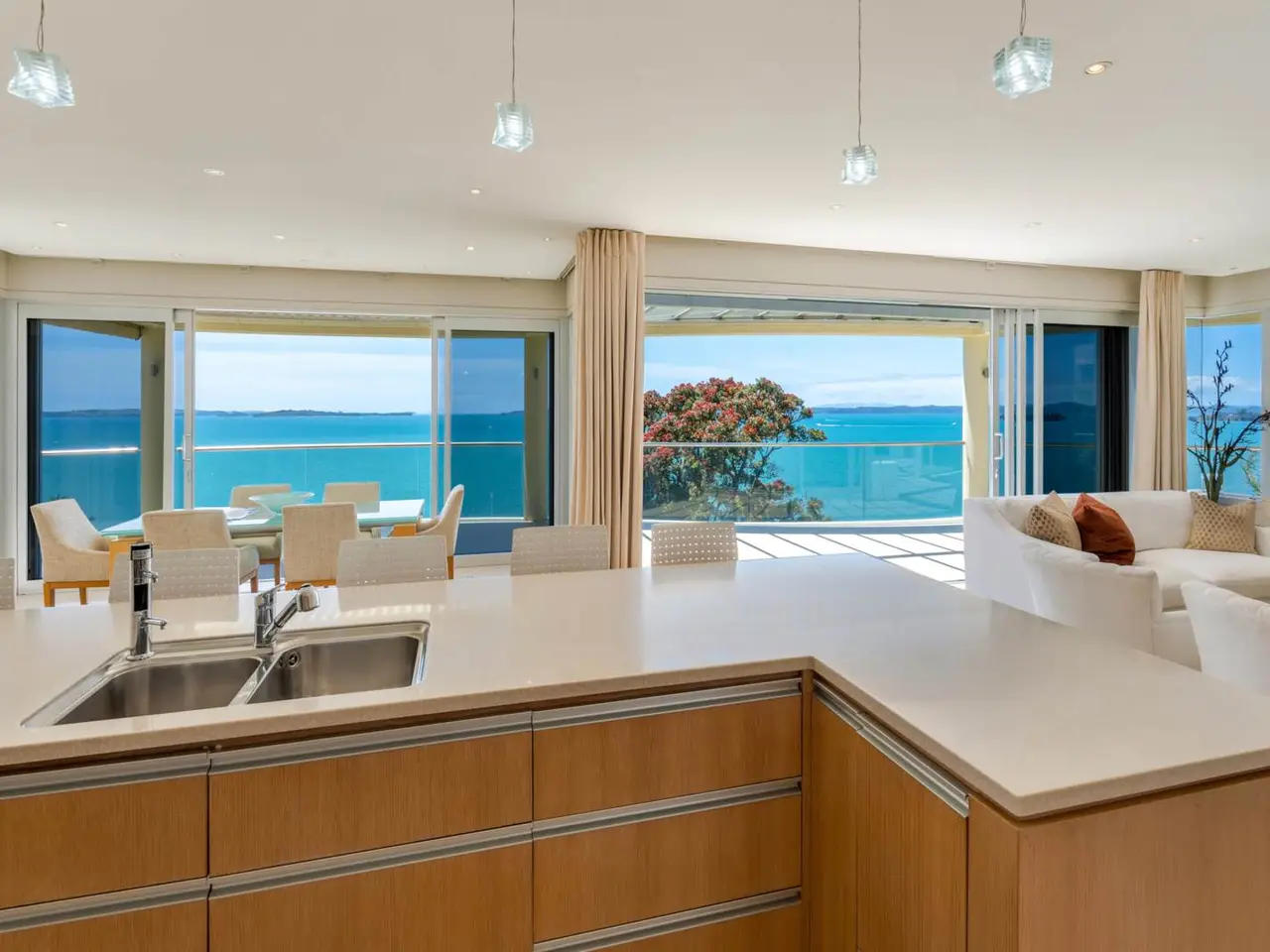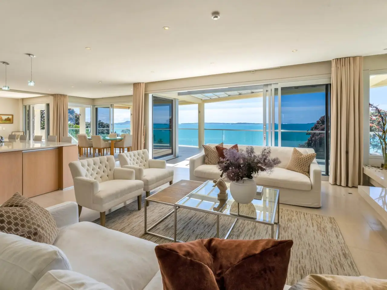 Timeless and unique, this substantial masonry home on a breathtaking 2168sqm coastal paradise boasts panoramic ocean and gulf views that reach to the horizon. Don’t even try to compare it with anything else. For this exclusive resort-like property is prized, not just for its beauty, privacy and incredible outlook. It comes with animpressive pedigree.The grand yet understated home was built for permanence to the highest quality possible by the well-known Stevenson family who farmed the original land on the site. They were also owners of one of Auckland’s earliest large-scale construction and concrete companies. Having unlimited resources to create a stunning architectural home of outstanding quality, they selected this specific site. Still owned by the same family, it is without doubt the finest waterfront viewing point in Cockle Bay. The premium position lets owners enjoy absolute seclusion immersed in serene beauty.Renowned architect Linda Clapham worked with the family to design an exquisitely detailed home. Faced with schist exterior walls, in magnificent tropical gardens and terraced lawns, it provides fantastic versatility for family and friends as it is split over 2 floors, future-proofed with a lift. Most rooms, including 4 generous bedrooms, open to huge sun-kissed, sheltered north-facing terraces catching unobstructed views. Sun also pours across the tropical pool area where a waterfall tumbles over enormous rocks.From the voluminous skylit entry, expansive living areas across the main level are filled with sunshine and warmth. Due to the home’s construction and northerly aspect, it is always cosy in winter. A large, understated, central timber kitchen with scullery offers fantastic entertaining possibilities. There’s a library/office and elegant built-in cabinetry reaches the full stud height. Downstairs incorporates 2 more bedrooms and a kitchenette, making life easy forfamily, guests or a nanny. Storage is copious and numerous utility rooms plus 3 car garaging provide ample utility space.Immaculately presented, a substantial home of rare quality, hidden on the most sublime coastal estate, a mere half hour drive from the CBD and 5 minutes to charming Howick Village. Make Auckland’s finest property yours!