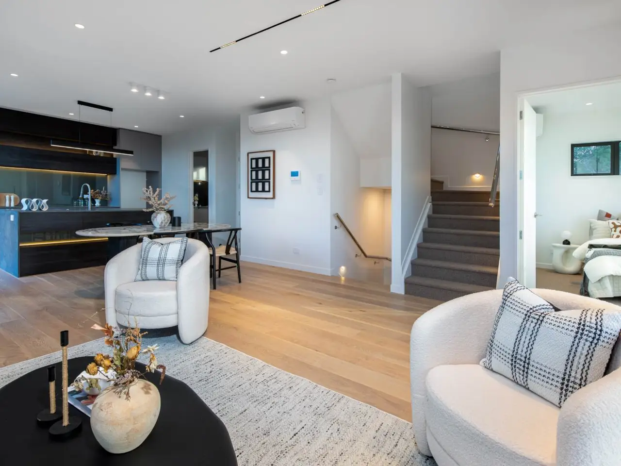 Step Into a Life of Coastal Luxury. Imagine waking up to the soft glow of morning sun over the Hauraki Gulf, sipping coffee on your elevated deck as the kids get ready for school — Rangitoto College, Westlake Girls’ and Westlake Boys’, all just minutes away. This is more than a home. It’s the lifestyle your family deserves. From the moment you walk through the door, you’ll feel it: space, light, and effortless elegance. With four generous bedrooms, three spa-inspired bathrooms, and a double internal-access garage, this a standalone home offers room to grow and the quality to enjoy every step of the way.Exterior Excellence:The architecture celebrates a modern coastal aesthetic, with rich JSC Lunawood vertical timber cladding paired with Ultraclad Sandstone aluminium — a timeless mix of texture and durability. Elevated decks and full-height glazing capture the ever-changing hues of the Hauraki Gulf, reinforcing this home's seamless connection to its coastal setting.Interior Sophistication:•Grand entrances welcome you with Prime Walls Southern Alps feature panels and GIB Shadowline detailing, setting a refined tone.•The chef’s kitchen is a stunning centrepiece with Bosch Series appliances, an induction and gas cooktop, Trendstone Cala Royale and Lava Dark Grey benchtops, and Fiordland Elm + Agate cabinetry. A metallic glass splashback and pendant lighting complete this entertainer’s dream.•Open-plan living spaces feature wide-plank engineered timber flooring, an airy coastal colour palette in Mt Aspiring Half by Dulux, and ambient strip lighting to suit every mood.•Spa-inspired bathrooms include cloud stone mosaic feature walls, light grey floor tiles, engineered stone vanities, and Methven MK2 brushed nickel fittings—combining timeless beauty with modern comfort.•Generous bedrooms are dressed in Bremworth Lattice wool carpet, while built-in Ash Woodline wardrobes with soft-close drawers offer elegant storage solutions.Do not wait for the sold sign, contact us now for further information.NB: Photos show 12D Kowhai Rd, followed by 12A Kowahi Rd.