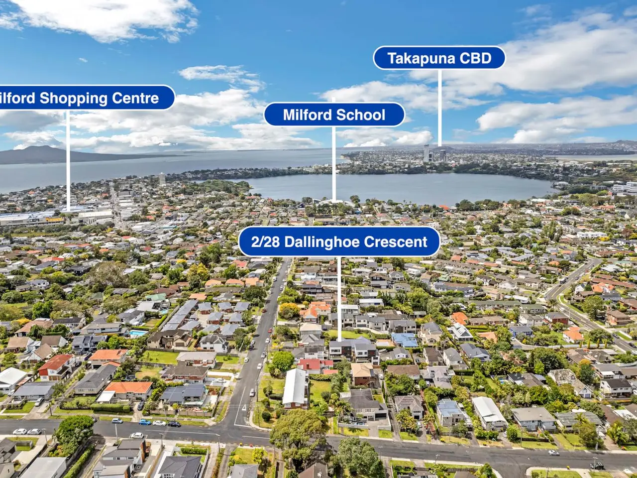 28A Dallinghoe Crescent is a stunning brand new residence in the heart of Milford that's perfectly designed for modern living and effortless style.Perfectly designed, this beautifully finished home gives you all the space you've been searching for, with four generous bedrooms, four and half bathrooms, three of which are masters with ensuite bathrooms, a study, two living areas, and a double internal access garage. Delivering flexibility and comfort for growing or extended families – whether you're hosting, relaxing, or working from home, there’s space for everyone to spread out. From the upper levels, you're treated to elevated views towards Takapuna, with a peek of Lake Pupuke – a daily reminder of how close you are to everything the North Shore has to offer.Zoned for some of Auckland's top schools – Milford Primary, Westlake Boys' and Girls' High Schools – and just moments to Milford Beach, Lake Pupuke, village shops, cafés, and coastal walks, this is the kind of location that ticks all the boxes for lifestyle and long-term value. Contemporary, low-maintenance, and move-in ready.