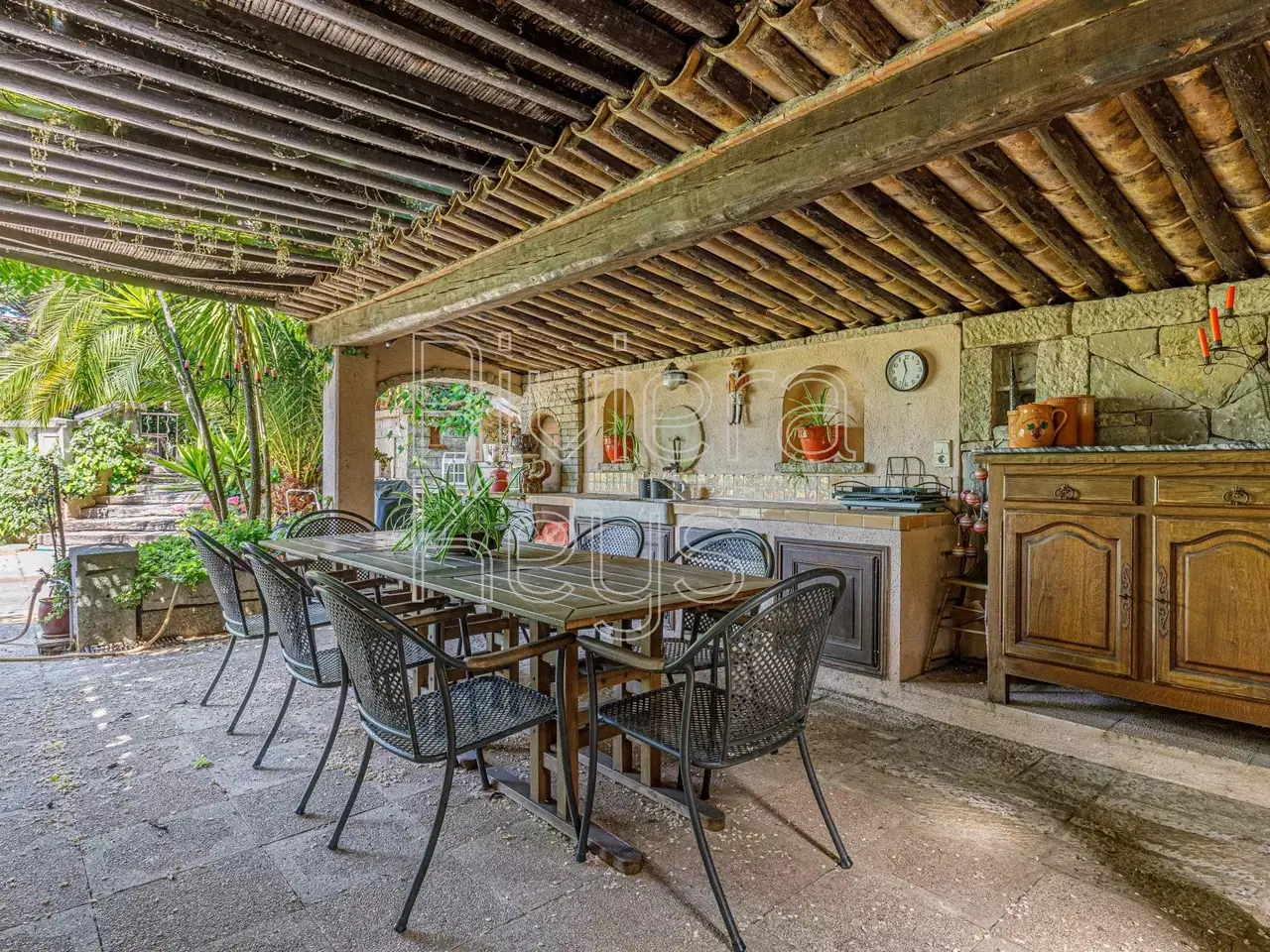 This magnificent Provencal style house of more than 300 m², full of charm and authenticity, is located in a quiet and secluded area, on a beautiful flat garden of 2600 m² with Mediterranean plants and automatic watering system. The villa, built with quality materials enjoys a south/west exposure as well as a nice view over the hilltop village of Auribeau-sur-Siagne, and includes on the ground floor: an entrance hall, a spacious living/dining room of about 70 m² with an impressive and working stone fireplace, a beautiful independent kitchen, a large bedroom with shower room and separate access, which can be used as a studio, a laundry room and a guest toilet. There are two glassed-in verandas. On the first floor, there is a master bedroom of about 70 m² with bathroom, dressing room, library/sitting room. In another wing are three further large bedrooms, two with en-suite bathroom and wc, another bathroom and a toilet . In the basement there are lots of storage, a wine cellar, and outside a 100 m² relaxing, covered terrace with summer kitchen, a tiled swimming pool (10x5) with pool house and shower, a boules pitch, a carport for two cars, and several parking spaces. Ten minutes from the A8 and near the bustling town of Pégomas. The area is well served with shops, restaurants and sports facilities. Only 10 minutes inland from the coast, Auribeau-sur-Siagne is an unspoiled hilltop village. equidistant from Cannes, Grasse and Mandelieu La Napoule. With several restaurants, cafes and shops to enjoy in the upper and lower village, and extensive views over the beautiful Tanneron hills, famed for its mimosa, the property is well located for both secondary and residential use. The area is served by fast access to the A8 autoroute at J41, and an International School in nearby Pegomas, itself a vibrant small town with a good range of supermarkets, shops, markets, restaurants and sports facilities. Nice airport is 30 minutes away. A véritable corner of paradise with lots of character!