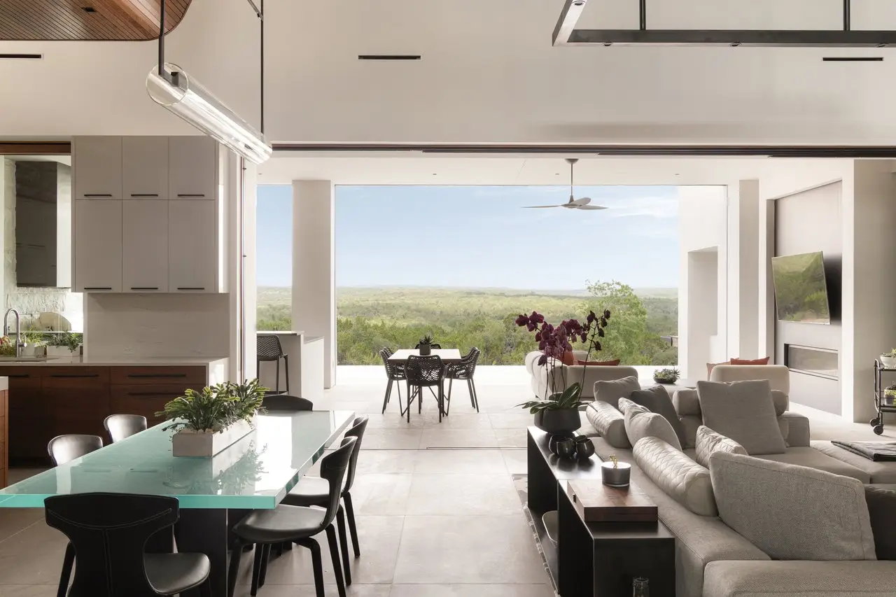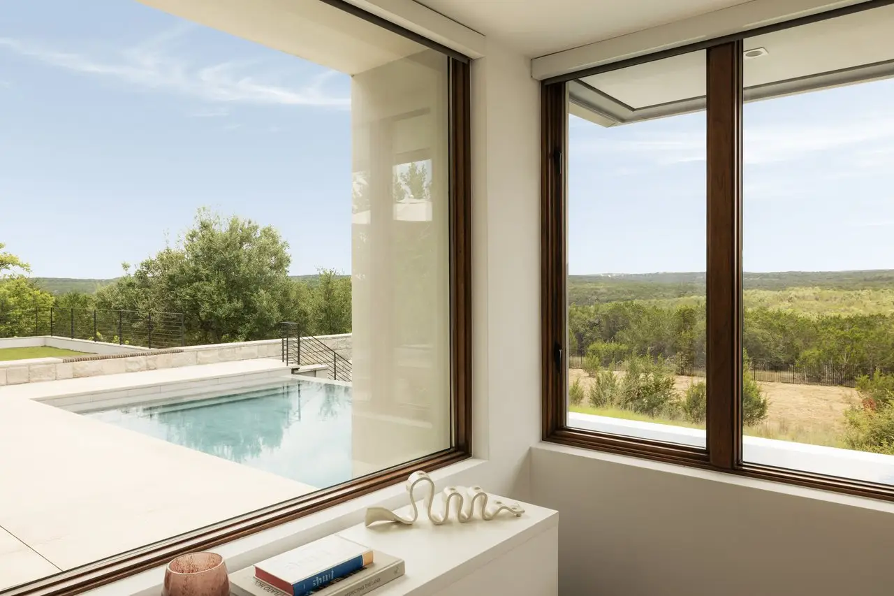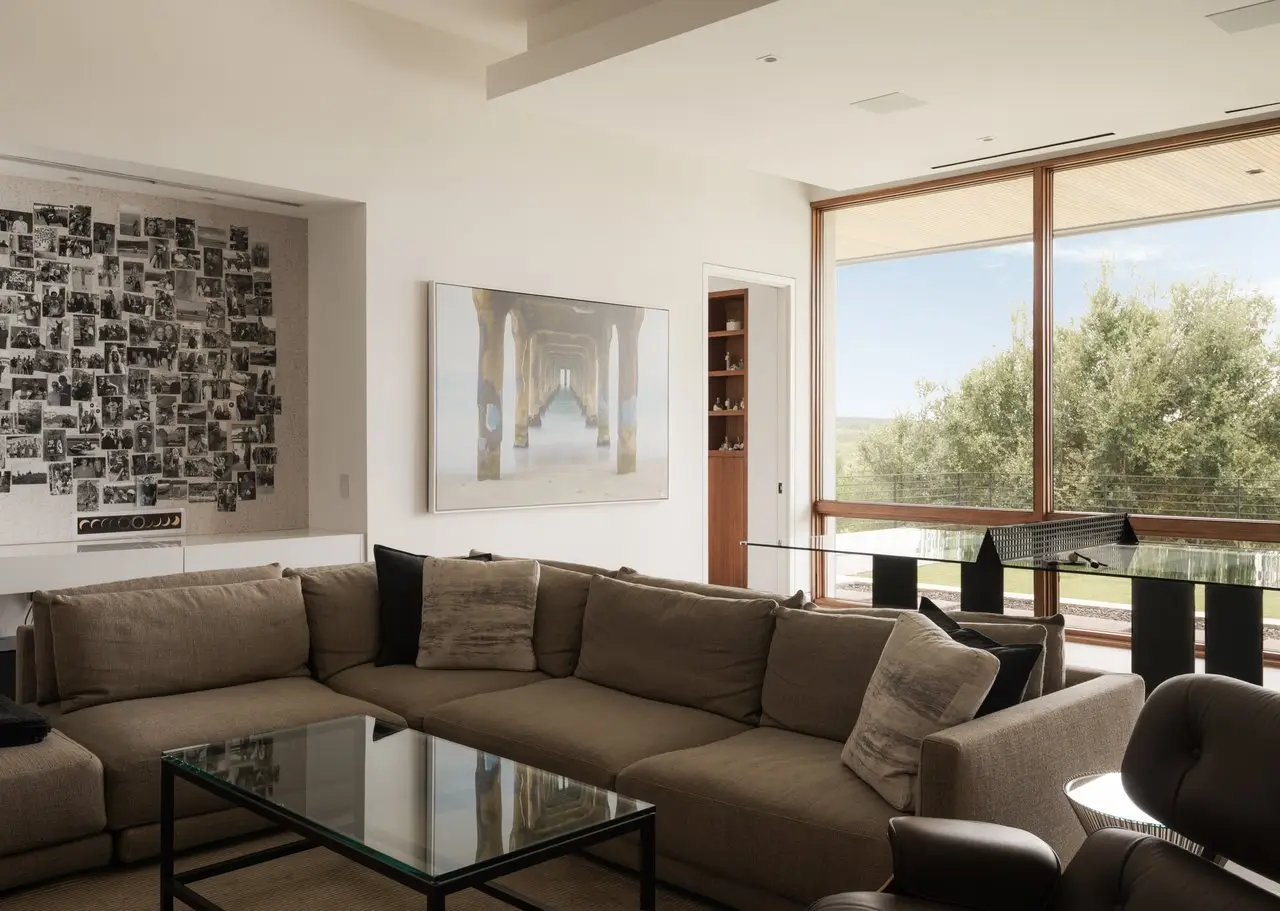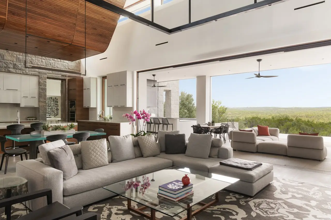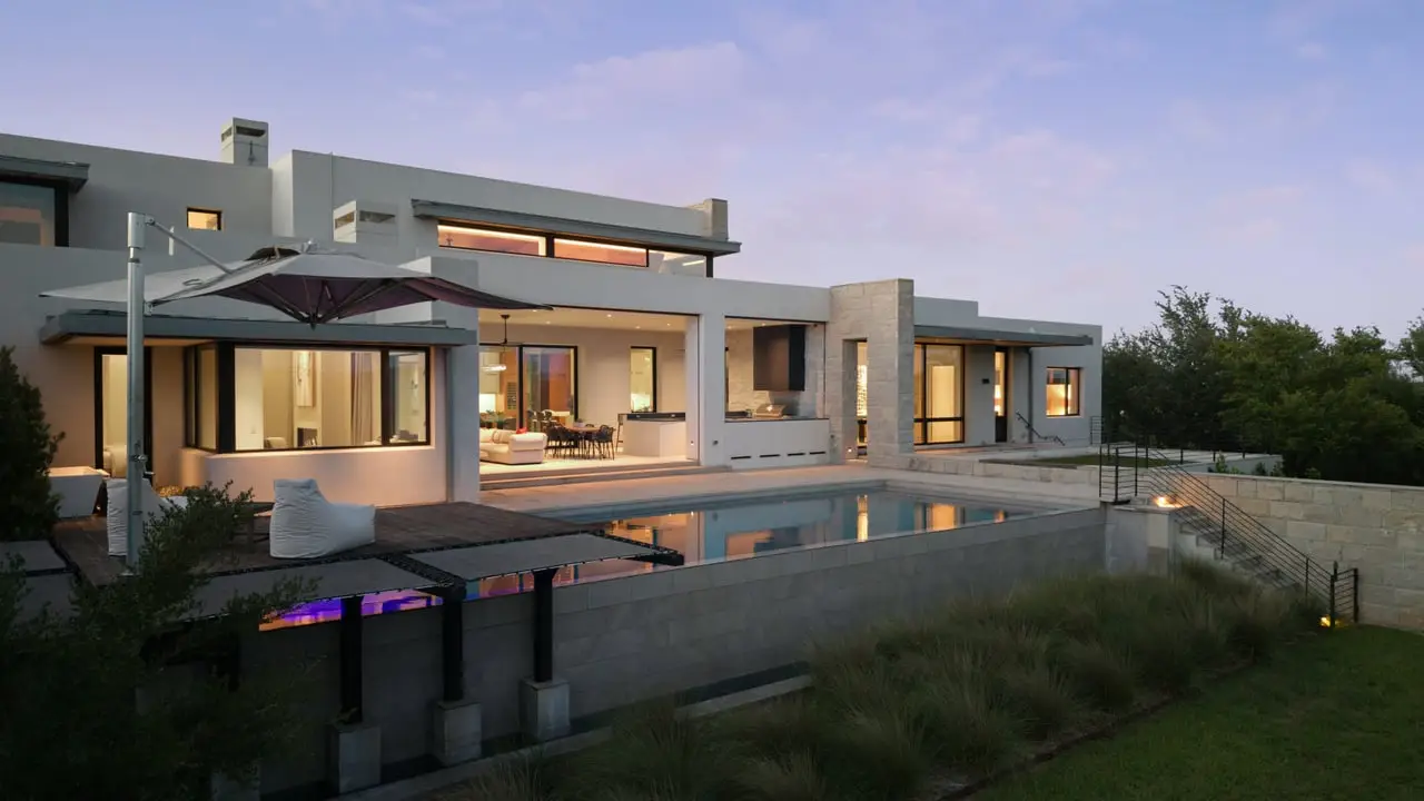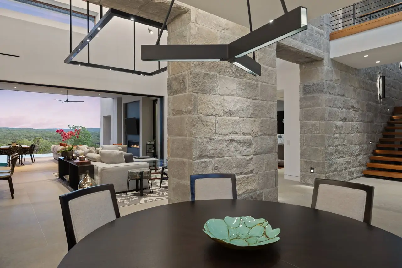 Architecturally Significant | Exceptionally Private | Massive Hill Country Views Introducing 11705 Yaupon Holly Lane — a truly one-of-a-kind luxury estate in the prestigious Estates Section of Spanish Oaks, one of Austin’s most sought-after private, gated communities. Designed by renowned architect Evan Fisher (Studio Architects and Chas Architects) with interiors by Rachel Mast Design, this soft contemporary custom home is a masterclass in balance—where clean lines meet warm textures, and refined sophistication is grounded in natural Hill Country elements. Perfectly positioned on what may be the most private lot in all of Spanish Oaks, the home offers sweeping Hill Country views and the serenity of a property that feels like it sits on hundreds of acres. Architecture, Interiors & Finishes From the moment you step through the 6.5’ x 9’ custom glass pivot door, the home's expansive volume and material palette create a lasting impression. Over 7,300 square feet of thoughtfully designed living space includes 5 bedrooms, 5.5 bathrooms, and a seamless integration of indoor and outdoor living. Floors and walls are wrapped in gray Leuders limestone, sourced from Leuders Texas, and paired with quartz countertops, custom lacquer cabinetry, and warm walnut millwork throughout. The entire home is equipped with high-efficiency LED lighting (all lights are 95+ CRI, 3000K color temperature) for consistent ambiance and visual comfort. Built for both luxury and sustainability, the property includes: 30,000-gallon rainwater collection and filter system for in-home use 65-panel solar array EV charging station Private well for irrigation Chef’s Kitchen & Entertaining Spaces The main kitchen is a statement in both form and function — with 3.5” Cambria Quartz waterfall counters, book-matched walnut cabinetry, and a sleek, fully integrated appliance suite featuring: Wolf convection, steam, induction cooking, and warming drawer Sub-Zero refrigerator and freezer with book-matched walnut panels Sub-zero refrigerator and freezer drawers, and 86-bottle wine column Miele dishwashers A hidden Beverage Center / Back Kitchen offers an oversized walk-in pantry, extra dishwasher, mitered lacquer cabinetry, and ample prep space—perfect for hosting without cluttering the main kitchen space. Indoor dining flows effortlessly into multiple entertaining areas, including: A private formal dining room An everyday dining area A dramatic great room with “walnut wave” ceiling and wood-burning fireplace Four impressive 5.5’ x 9’ each Weiland sliding glass doors fully disappear into the walls, creating a seamless indoor-outdoor living experience. Outdoor Living & Kitchen Enjoy year-round entertaining in the expansive covered patio featuring: Full outdoor kitchen with Wolf cooktop, Sub-Zero fridge & ice maker, and Galley workstation sink Leathered stone countertops with seating for eight Gas fireplace, outdoor TV, and integrated ceiling speakers Automated sunshades by Texas Sun & Shade Room for both alfresco dining, a full outdoor living set, and spacious sectional sofa Primary Suite Retreat The private owner’s wing is a true luxury retreat, with a gas fireplace, lounge/sitting area with automated shades and hideaway TV, cove lighting, and blackout drapes. The spa-inspired bathroom features: Radiant heated floors 5’ x 10’ book-matched Stonepeak Calacatta Vena slabs Floating dual vanity sink area with 6” quartz counters Platform soaking tub & walk-in glass shower Custom makeup vanity, mirrored medicine cabinets Picture window (48’ x 52”) with panoramic Hill Country views An adjacent home gym—bathed in natural light with floor-to-ceiling mirrors, oversize windows, and rift-sawn white oak floors—feels like a modern treehouse. Additional Living Spaces Media Room: Custom entertainment wall, homework station, panoramic views, with flexible space for future bar or buffet Downstairs Guest Suites: Private and thoughtfully appointed, with large closets, cove lighting, and en-suite baths Office: Custom cabinetry, automated standing desk, built-in printer station, and dedicated storage room with gift-wrapping area Mudroom & Laundry: Functional yet elevated, with walnut barn doors, built-ins, and utility storage Upstairs Bedrooms: Two spacious secondary bedrooms with Hill Country views, walk-in closets, and walnut flooring Property Highlights 5 Bedrooms | 5.5 Bathrooms 7,342 SQ FT (per TCAD) 3 Car Garage Space, Carport Space & Golf Cart Parking Private Automatic Driveway Gate Infinity Edge Pool and Hot Tub with Elevated Ipe Wood Swim Platform Lot: 1.3± Acres Architect: Evan Fisher (Studio Architects / Chas Architects) Interior Design: Rachel Mast Design Views: Protected Hill Country Preserve (250+ Acres owned by University of Texas) Location: Spanish Oaks – The Estates Section– Gated, Guarded, Golf Community Owner/Agent