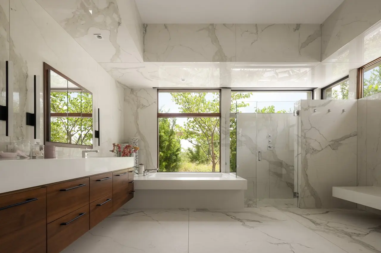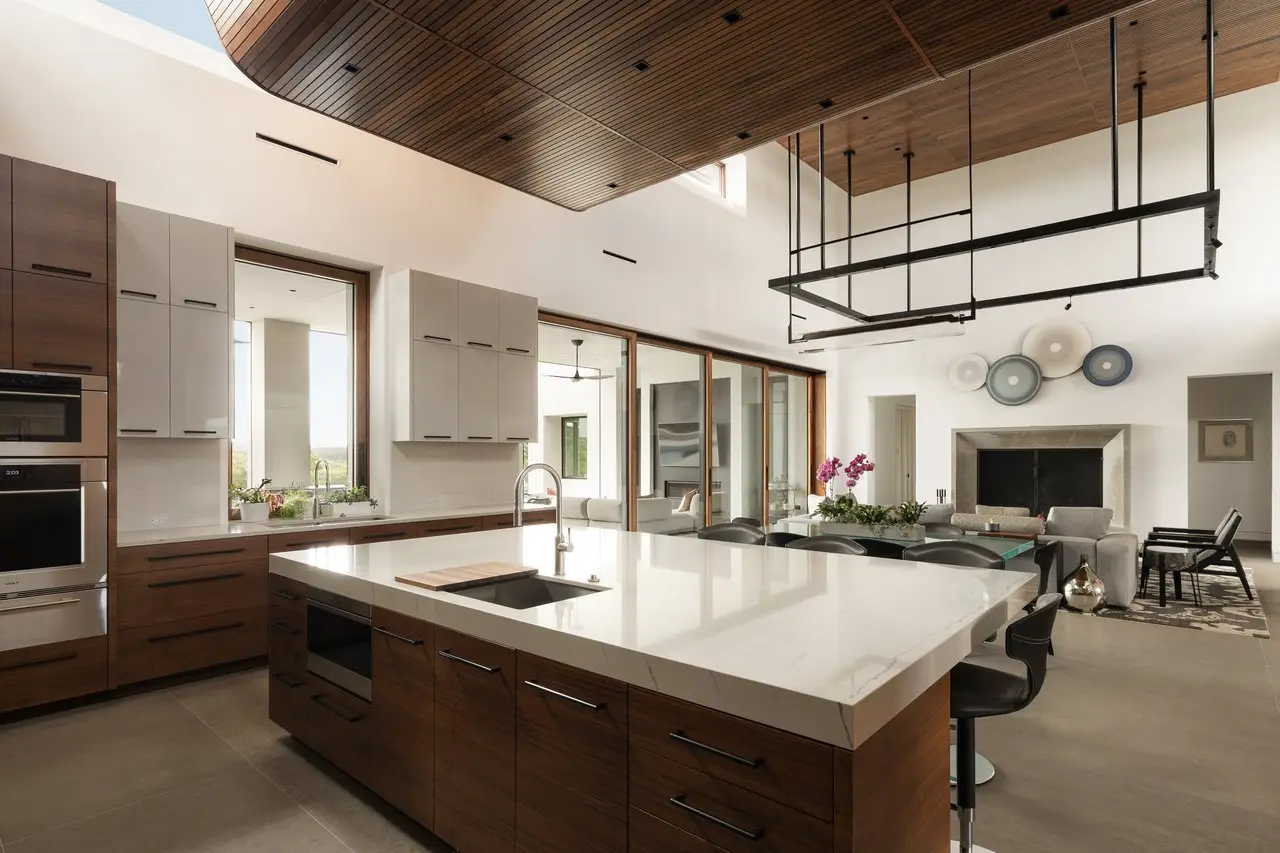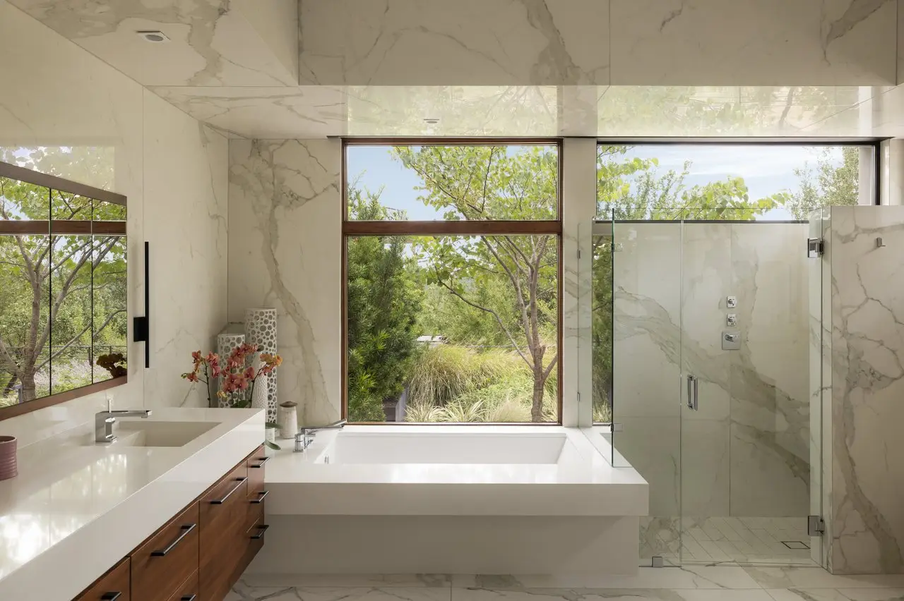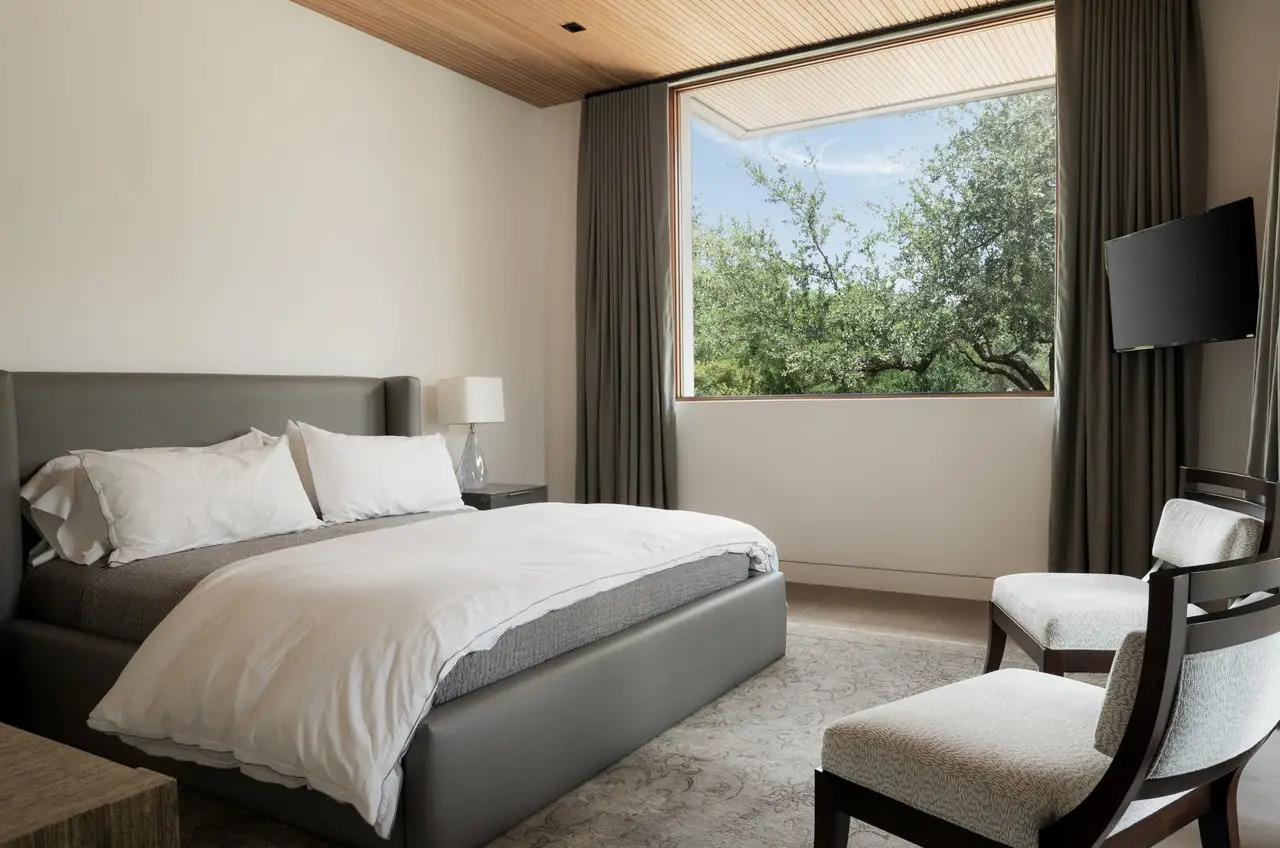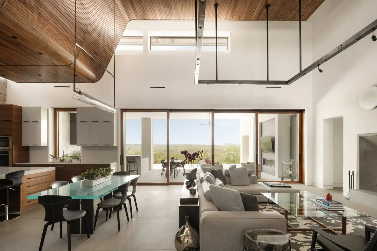 Architecturally Significant | Exceptionally Private | Massive Hill Country Views Introducing 11705 Yaupon Holly Lane — a truly one-of-a-kind luxury estate in the prestigious Estates Section of Spanish Oaks, one of Austin’s most sought-after private, gated communities. Designed by renowned architect Evan Fisher (Studio Architects and Chas Architects) with interiors by Rachel Mast Design, this soft contemporary custom home is a masterclass in balance—where clean lines meet warm textures, and refined sophistication is grounded in natural Hill Country elements. Perfectly positioned on what may be the most private lot in all of Spanish Oaks, the home offers sweeping Hill Country views and the serenity of a property that feels like it sits on hundreds of acres. Architecture, Interiors & Finishes From the moment you step through the 6.5’ x 9’ custom glass pivot door, the home's expansive volume and material palette create a lasting impression. Over 7,300 square feet of thoughtfully designed living space includes 5 bedrooms, 5.5 bathrooms, and a seamless integration of indoor and outdoor living. Floors and walls are wrapped in gray Leuders limestone, sourced from Leuders Texas, and paired with quartz countertops, custom lacquer cabinetry, and warm walnut millwork throughout. The entire home is equipped with high-efficiency LED lighting (all lights are 95+ CRI, 3000K color temperature) for consistent ambiance and visual comfort. Built for both luxury and sustainability, the property includes: 30,000-gallon rainwater collection and filter system for in-home use 65-panel solar array EV charging station Private well for irrigation Chef’s Kitchen & Entertaining Spaces The main kitchen is a statement in both form and function — with 3.5” Cambria Quartz waterfall counters, book-matched walnut cabinetry, and a sleek, fully integrated appliance suite featuring: Wolf convection, steam, induction cooking, and warming drawer Sub-Zero refrigerator and freezer with book-matched walnut panels Sub-zero refrigerator and freezer drawers, and 86-bottle wine column Miele dishwashers A hidden Beverage Center / Back Kitchen offers an oversized walk-in pantry, extra dishwasher, mitered lacquer cabinetry, and ample prep space—perfect for hosting without cluttering the main kitchen space. Indoor dining flows effortlessly into multiple entertaining areas, including: A private formal dining room An everyday dining area A dramatic great room with “walnut wave” ceiling and wood-burning fireplace Four impressive 5.5’ x 9’ each Weiland sliding glass doors fully disappear into the walls, creating a seamless indoor-outdoor living experience. Outdoor Living & Kitchen Enjoy year-round entertaining in the expansive covered patio featuring: Full outdoor kitchen with Wolf cooktop, Sub-Zero fridge & ice maker, and Galley workstation sink Leathered stone countertops with seating for eight Gas fireplace, outdoor TV, and integrated ceiling speakers Automated sunshades by Texas Sun & Shade Room for both alfresco dining, a full outdoor living set, and spacious sectional sofa Primary Suite Retreat The private owner’s wing is a true luxury retreat, with a gas fireplace, lounge/sitting area with automated shades and hideaway TV, cove lighting, and blackout drapes. The spa-inspired bathroom features: Radiant heated floors 5’ x 10’ book-matched Stonepeak Calacatta Vena slabs Floating dual vanity sink area with 6” quartz counters Platform soaking tub & walk-in glass shower Custom makeup vanity, mirrored medicine cabinets Picture window (48’ x 52”) with panoramic Hill Country views An adjacent home gym—bathed in natural light with floor-to-ceiling mirrors, oversize windows, and rift-sawn white oak floors—feels like a modern treehouse. Additional Living Spaces Media Room: Custom entertainment wall, homework station, panoramic views, with flexible space for future bar or buffet Downstairs Guest Suites: Private and thoughtfully appointed, with large closets, cove lighting, and en-suite baths Office: Custom cabinetry, automated standing desk, built-in printer station, and dedicated storage room with gift-wrapping area Mudroom & Laundry: Functional yet elevated, with walnut barn doors, built-ins, and utility storage Upstairs Bedrooms: Two spacious secondary bedrooms with Hill Country views, walk-in closets, and walnut flooring Property Highlights 5 Bedrooms | 5.5 Bathrooms 7,342 SQ FT (per TCAD) 3 Car Garage Space, Carport Space & Golf Cart Parking Private Automatic Driveway Gate Infinity Edge Pool and Hot Tub with Elevated Ipe Wood Swim Platform Lot: 1.3± Acres Architect: Evan Fisher (Studio Architects / Chas Architects) Interior Design: Rachel Mast Design Views: Protected Hill Country Preserve (250+ Acres owned by University of Texas) Location: Spanish Oaks – The Estates Section– Gated, Guarded, Golf Community Owner/Agent