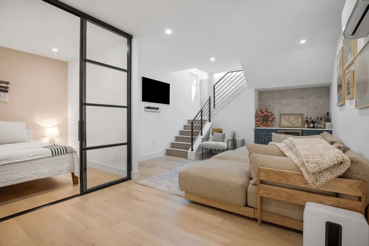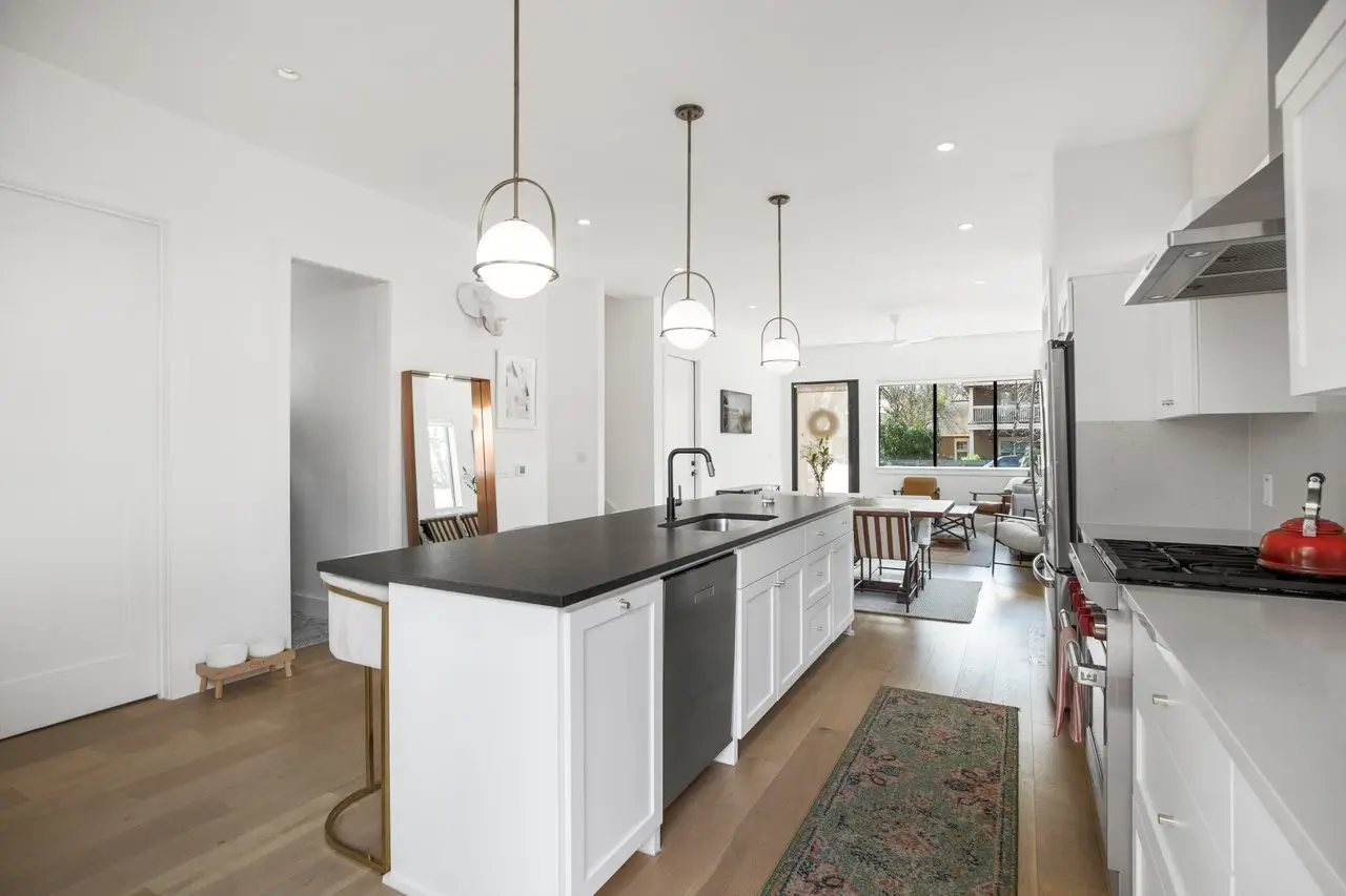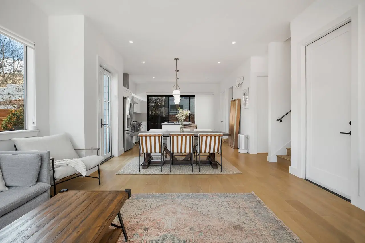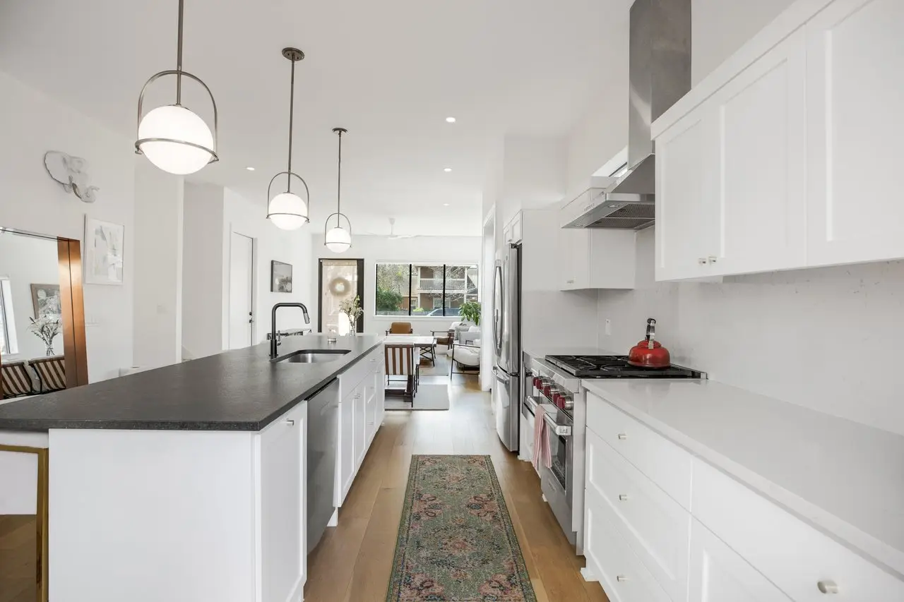 Perfectly positioned in one of Austin’s most dynamic neighborhoods, this stunning contemporary home offers the best of urban living. Steps from award-winning restaurants, craft cocktail bars, live music venues, and the Saltillo shopping district, it also provides easy access to the light rail, river, and Downtown Austin. One of the only ~3,000 sqft homes in the area, 1410 East 3rd Street seamlessly blends space, comfort, modern design, and walkability. Built in 2019, this 4-bed, 4.5-bath home features a thoughtfully designed layout with high-end finishes and effortless functionality. The main level is perfect for entertaining, with an open-concept living and dining space, a sleek gourmet kitchen, an elevated powder room, and seamless access to the front and back patios through elegant French doors. Upstairs, two spacious bedrooms each have private baths and balconies with downtown skyline views. The third-floor suite serves as a versatile live-work space with breathtaking views from its private balcony. A fully finished 1-bed, 1-bath basement offers a wet bar, wine fridge, and skylight windows, ideal as a guest suite, media room, or private retreat. A beautifully designed nursery off the primary suite also functions as a home office. Surrounded by a fully renovated, gated yard, this home boasts ~800 sqft of outdoor patio and deck space for relaxing and entertaining. Lush landscaping includes a three-zone irrigation system, olive trees, honeysuckle vines, fruit trees, Texas sage, and custom trellising. A two-car driveway and a one-car garage add convenience and luxury. Also included are an EV charger and generator for energy efficiency and reliability. 1410e3rd.com