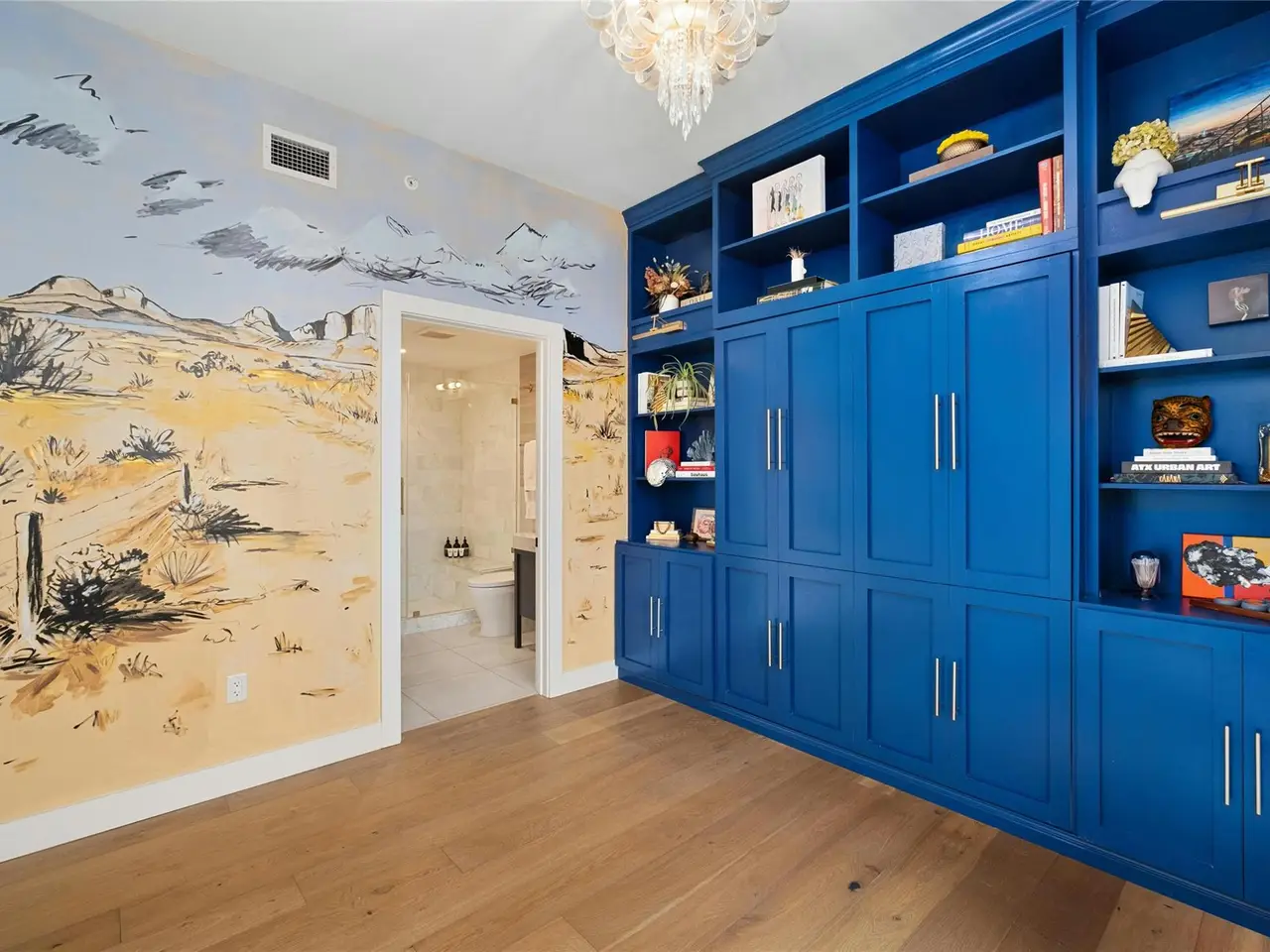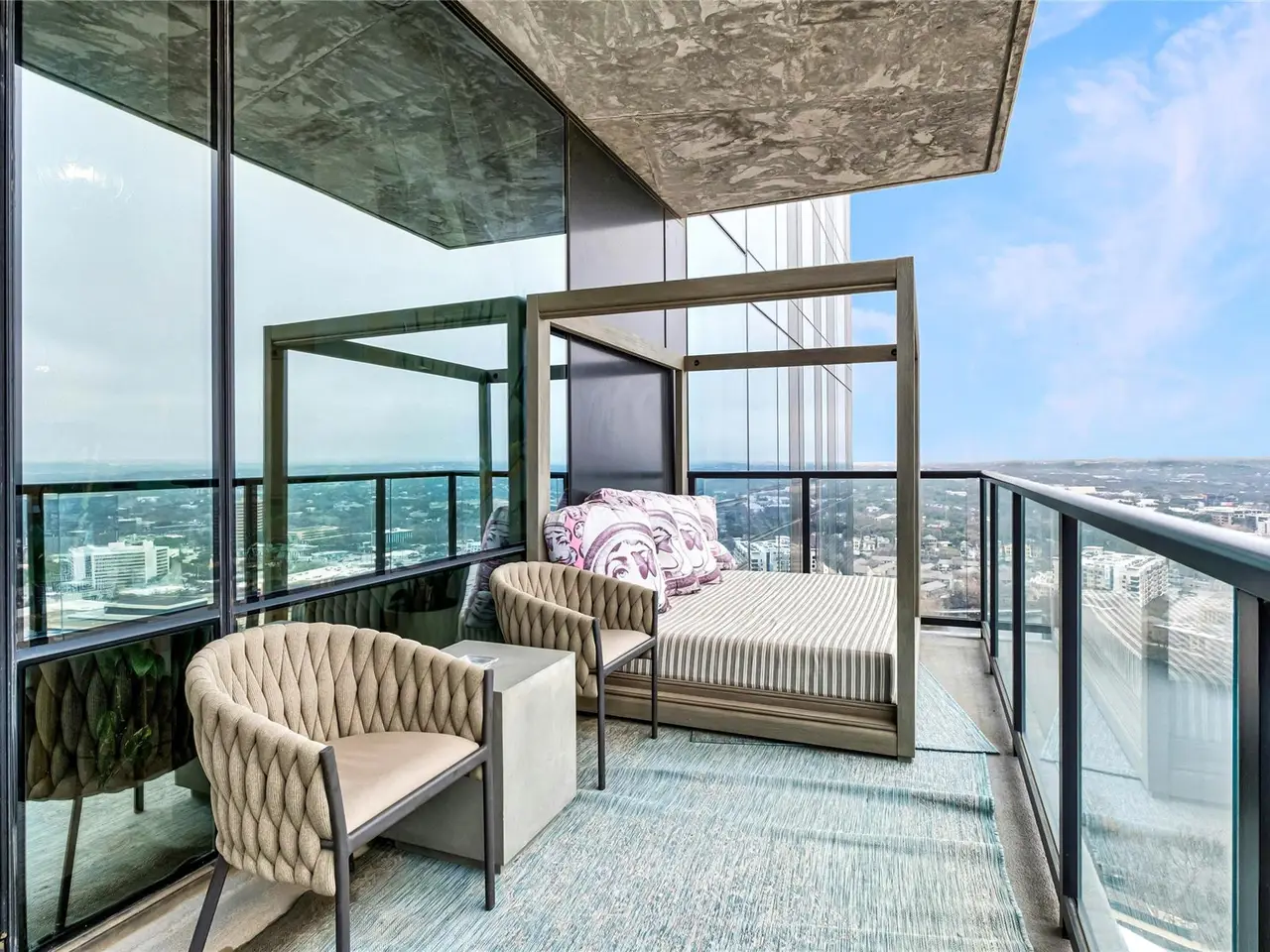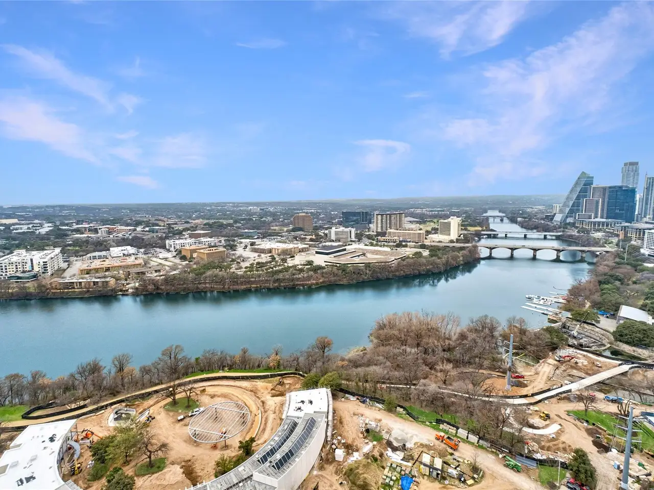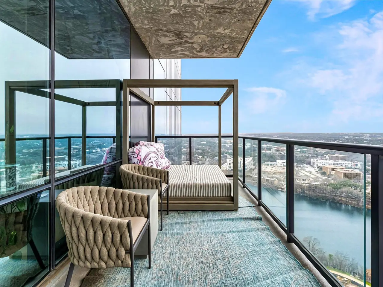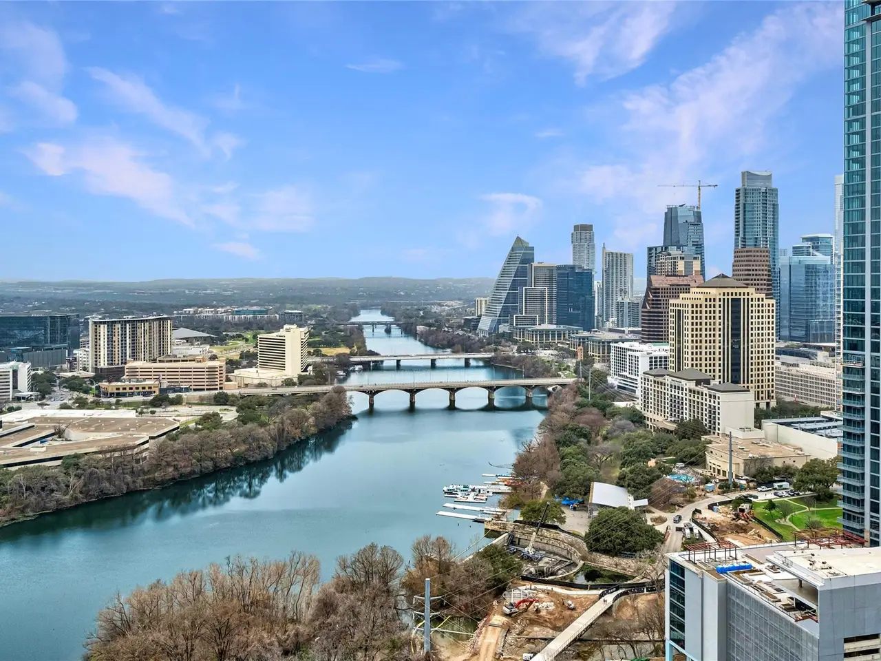 Coveted C2 floor plan located on the 27th floor of the prestigious 70 Rainey, residence #2702 offers an exceptional blend of luxury and breathtaking west-facing views. This two-bedroom, two-bathroom residence captures the beauty of Lady Bird Lake and the evolving Austin skyline from the expansive floor to ceiling windows and your own private 26' x 7' terrace. High-end and custom finishes designed for both comfort and elegance, including a custom closet in the primary bedroom, built-in murphy bed in the second bedroom, Hunter Douglas motorized shades, floor-to-ceiling tilework in both bathrooms, rounded marble shelves in the shower, a custom floating entertainment cabinet with LED shadow, custom cabinets with quartz countertop and modern barn door in laundry room, Miele wine fridge, abundant additional lighting and dimmers throughout. The kitchen is equipped with premium Miele appliances, sleek quartz countertops, and custom cabinetry, making it a chef's dream. With interior design selections by MARKZEFF, 70 Rainey offers over 31,000 sqft of indoor and outdoor amenities. Residents enjoy access to a 21,000-square-foot deck with an infinity-edge pool, private cabanas, and multiple lounge areas overlooking the lake and skyline. Additional features include a state-of-the-art fitness center, a resident lounge, a dog park, and 24/7 concierge services. Nestled in the vibrant Rainey Street District, this home offers the perfect balance of urban excitement and serene luxury, making it a rare opportunity in the heart of downtown Austin. Tax and assessed values are estimates for illustration purposes only. All figures should be independently verified.
