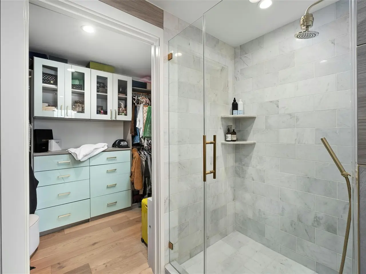 Custom closet in primary bedroom