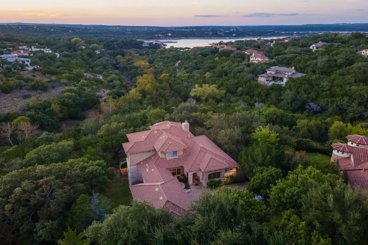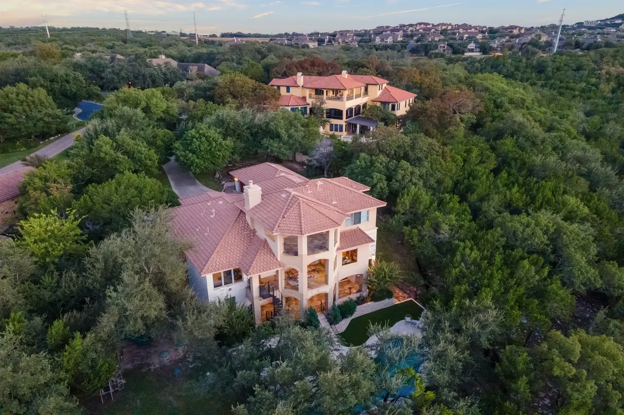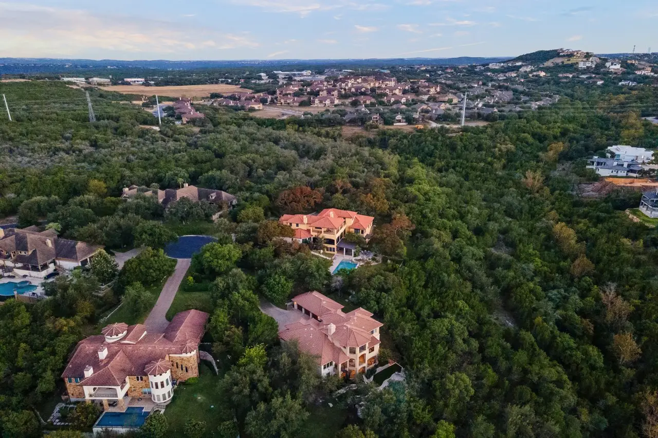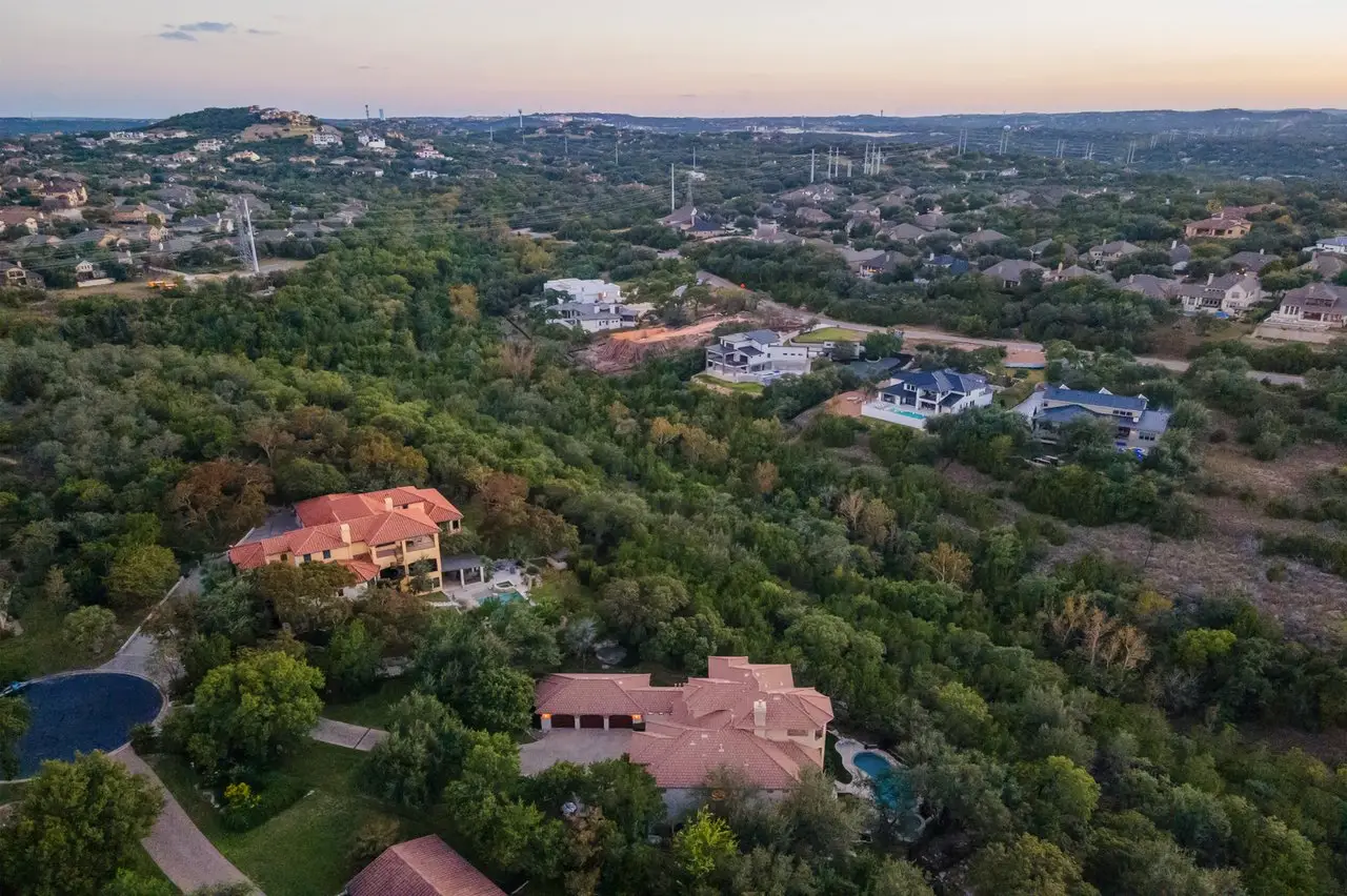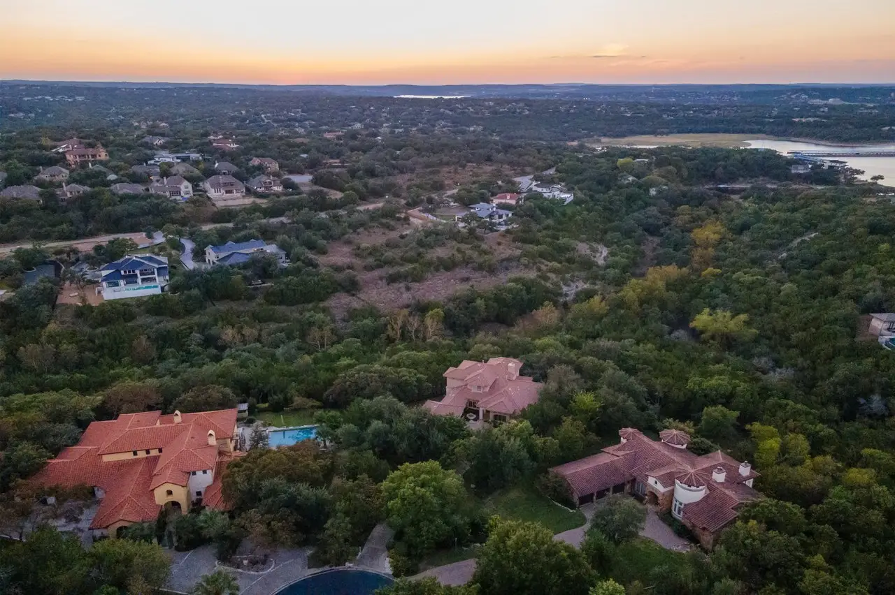 Framed by panoramic Hill Country and Lake Travis sunset views, this 1.5 custom ESTATE home delivers unmatched privacy, natural beauty, and timeless architectural appeal. From your own backyard, follow scenic trails to the lake for boating, paddle boarding, or fishing, or take advantage of the neighborhood’s private waterfront park and day dock for easy lake access.Nestled at the end of a quiet cul-de-sac in the boutique, gated Arbolago community, the home features large picturesque windows that fill the interiors with natural light, including beautiful views from nearly every room in the house. The main level showcases solid oak hardwood flooring and a spacious family room accented with warm wood beams. The open, thoughtfully designed layout offers four generous bedrooms, each with a dedicated en suite bath, as well as multiple living spaces. HVAC keeps utilities efficient and comfortable year-round.The gourmet kitchen includes a commercial-grade refrigerator, double ovens, gas cooktop, granite countertops, a center island, and solid wood cabinetry, complemented by a butler’s pantry or bar for effortless entertaining. Texas limestone accents inside and out add timeless Hill Country character.Outdoor living is exceptional, with three covered living areas, a sparkling pool and spa with waterfall feature, and peaceful green space views. The owner’s retreat provides direct access to a covered outdoor living area—perfect for morning coffee and enjoying the wide-open vistas.The lower level is designed for recreation and hosting, featuring a billiards/game room with walk-out access to the pool, a wet bar with beverage refrigerator, a media room positioned for sound privacy, and a private bedroom suite ideal for guests, a nanny, or teens. A full bath includes exterior access for convenient use from the pool. The upper level includes two children or guest suites and an additional private living space with more stunning views.An oversized three-car side-entry garage, low tax rate, and proximity to top-rated Lake Travis ISD schools, shopping, dining, and medical facilities make this an exceptional opportunity. LOW TAX RATE means ample savings each month. This property combines Hill Country serenity with refined living—truly one of the most special homes in Lakeway.
