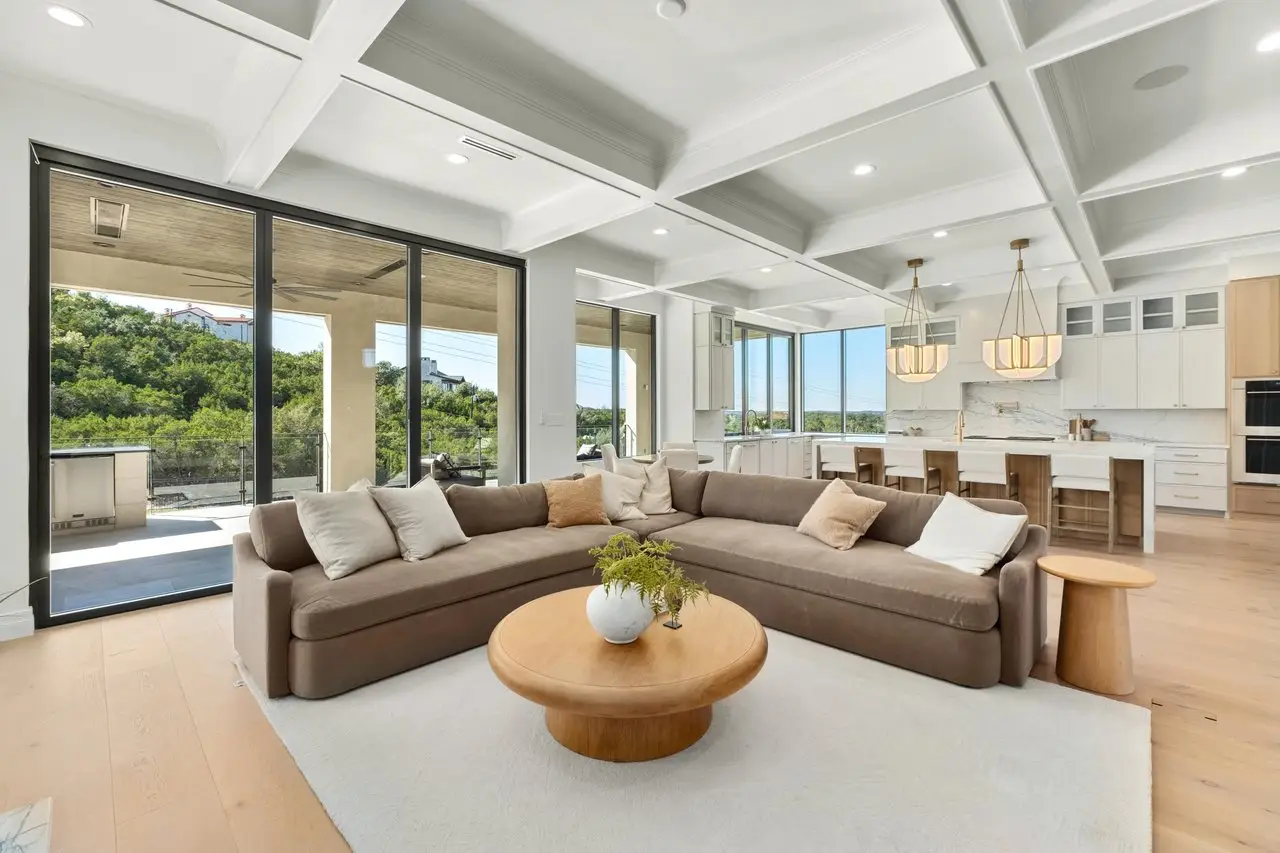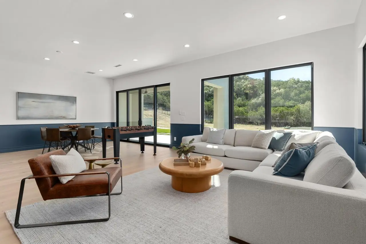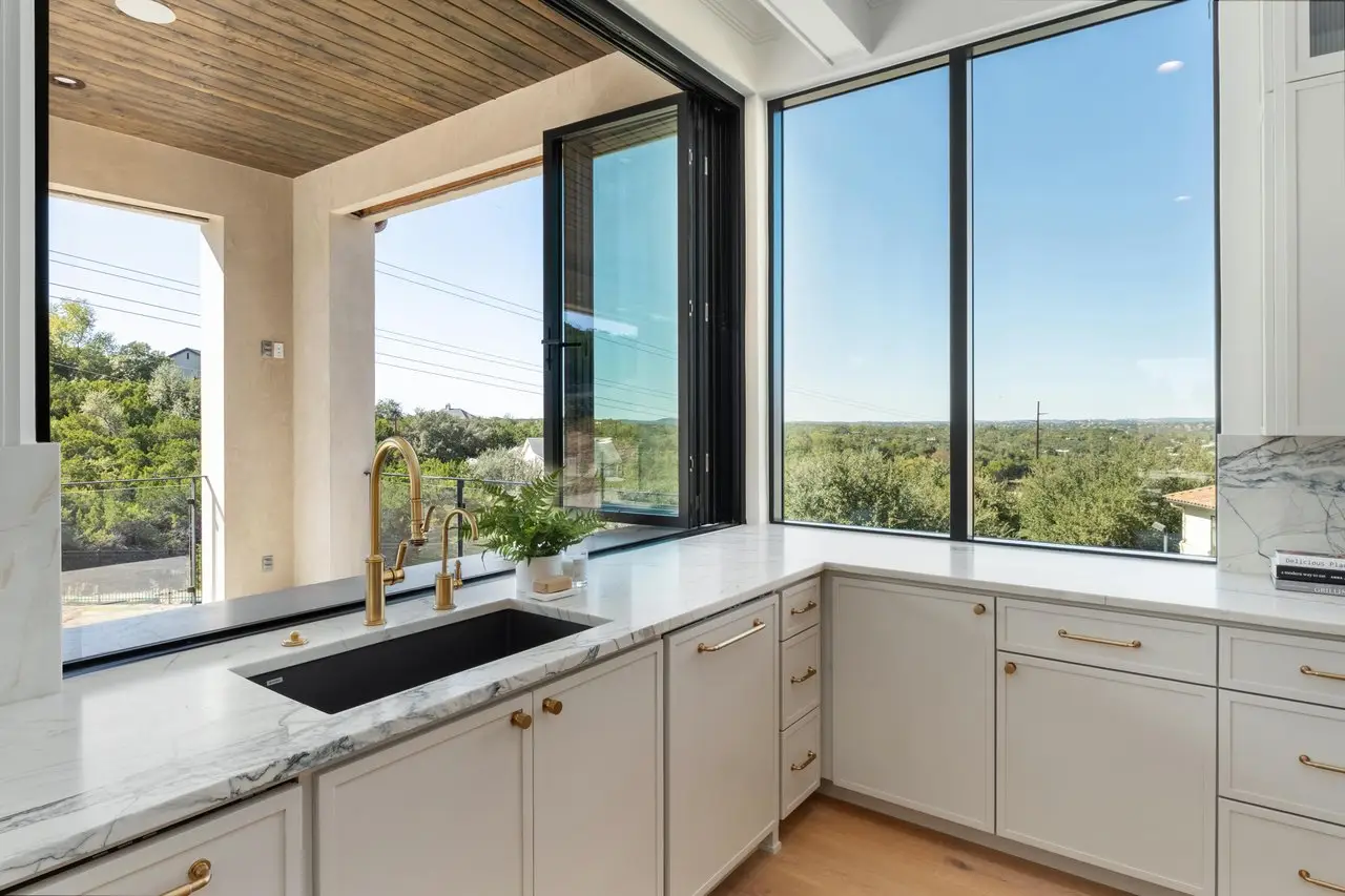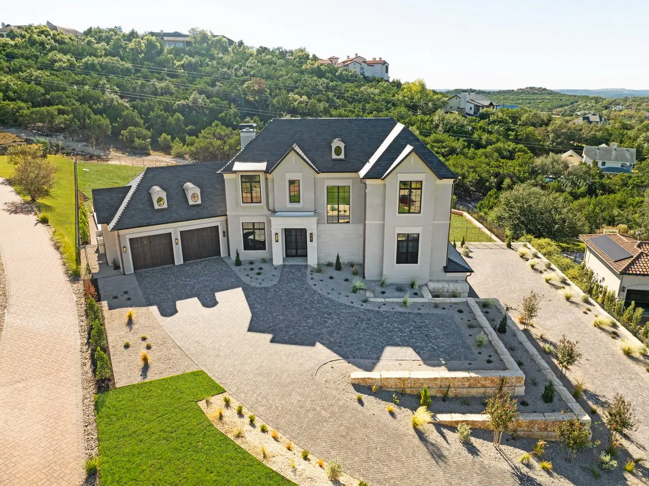 Set on over an acre at the end of a quiet cul-de-sac lined with grand estates, 9117 Brookhurst Cove offers sweeping Hill Country views from its elevated position. Inside, the newly constructed home welcomes you with stunning herringbone wood floors that set the tone for the immaculate finishes found throughout. Walls of windows frame the surrounding landscape, creating a seamless connection between the refined interiors and the natural beauty beyond.The expansive primary suite is positioned to capture exceptional views. Rejuvenate in the thoughtfully designed, luxurious ensuite bathroom featuring dual sinks, a soaking tub, and an oversized walk-in closet with an additional washer and dryer for enhanced convenience. A dedicated office with custom built-ins provides an elegant work-from-home space. The home is also equipped with a Savant starter package with a speaker and 12 smart switches. Every detail reflects craftsmanship and comfort at the highest level.Designed for both relaxation and entertaining, the residence features resort-style amenities including a theater, yoga studio, pool and spa, putting green, firepit, and an outdoor kitchen ideal for hosting year-round. The attached garages provide space for five cars, accommodating both everyday needs and enthusiast collections. Located in the prestigious Seven Oaks neighborhood, this exceptional property offers luxury living in one of West Austin’s most sought-after settings.
