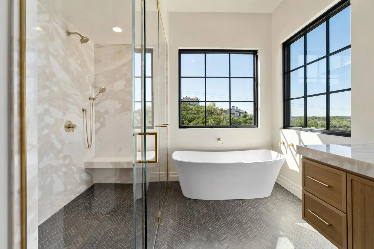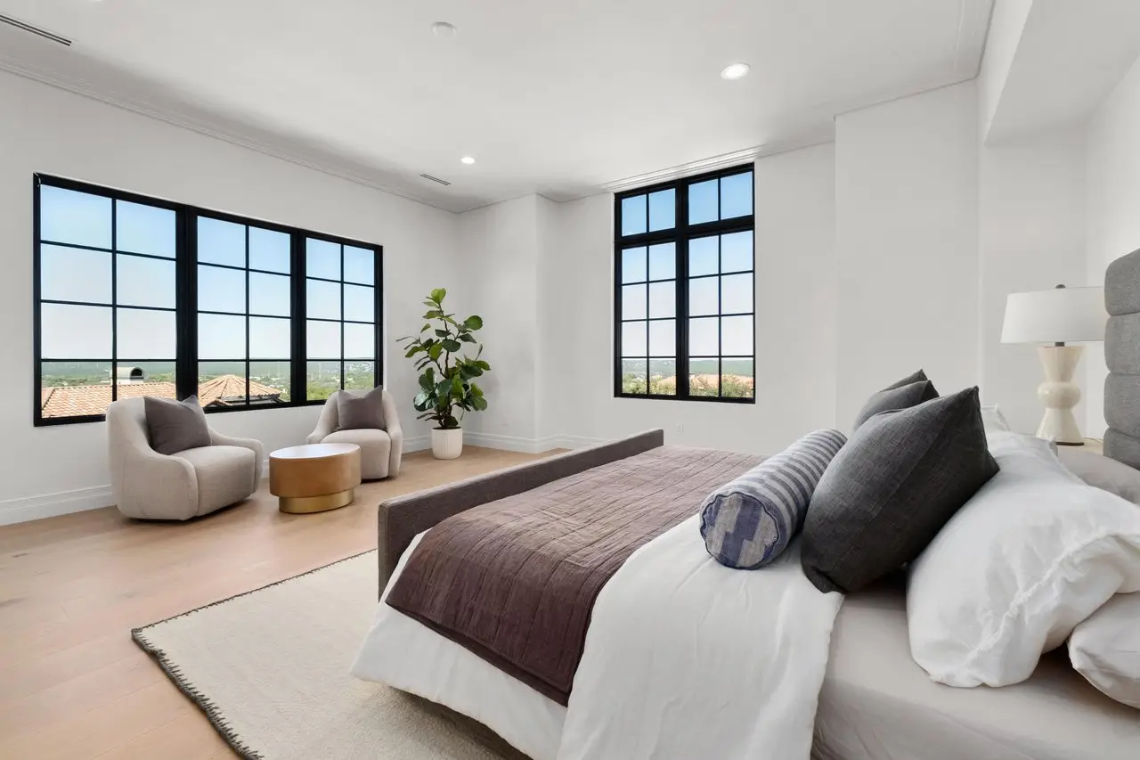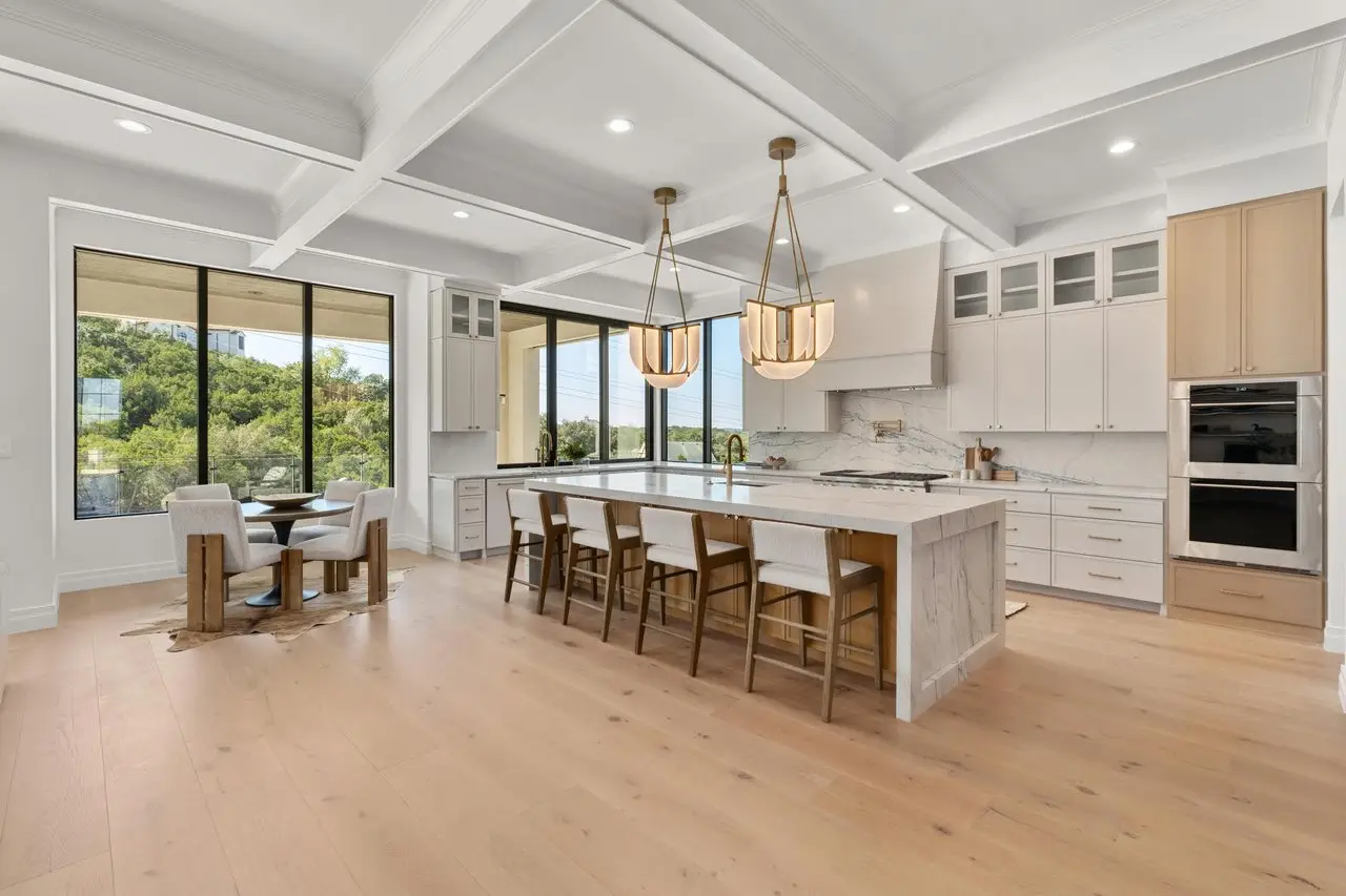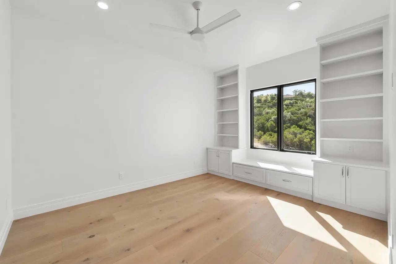 Set on over an acre at the end of a quiet cul-de-sac lined with grand estates, 9117 Brookhurst Cove offers sweeping Hill Country views from its elevated position. Inside, the newly constructed home welcomes you with stunning herringbone wood floors that set the tone for the immaculate finishes found throughout. Walls of windows frame the surrounding landscape, creating a seamless connection between the refined interiors and the natural beauty beyond.The expansive primary suite is positioned to capture exceptional views. Rejuvenate in the thoughtfully designed, luxurious ensuite bathroom featuring dual sinks, a soaking tub, and an oversized walk-in closet with an additional washer and dryer for enhanced convenience. A dedicated office with custom built-ins provides an elegant work-from-home space. The home is also equipped with a Savant starter package with a speaker and 12 smart switches. Every detail reflects craftsmanship and comfort at the highest level.Designed for both relaxation and entertaining, the residence features resort-style amenities including a theater, yoga studio, pool and spa, putting green, firepit, and an outdoor kitchen ideal for hosting year-round. The attached garages provide space for five cars, accommodating both everyday needs and enthusiast collections. Located in the prestigious Seven Oaks neighborhood, this exceptional property offers luxury living in one of West Austin’s most sought-after settings.