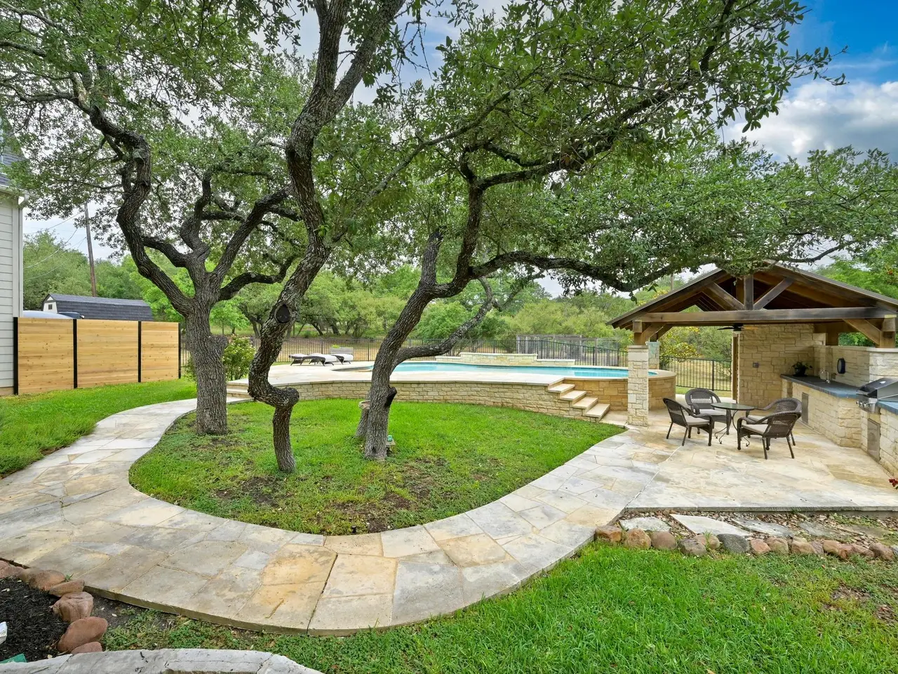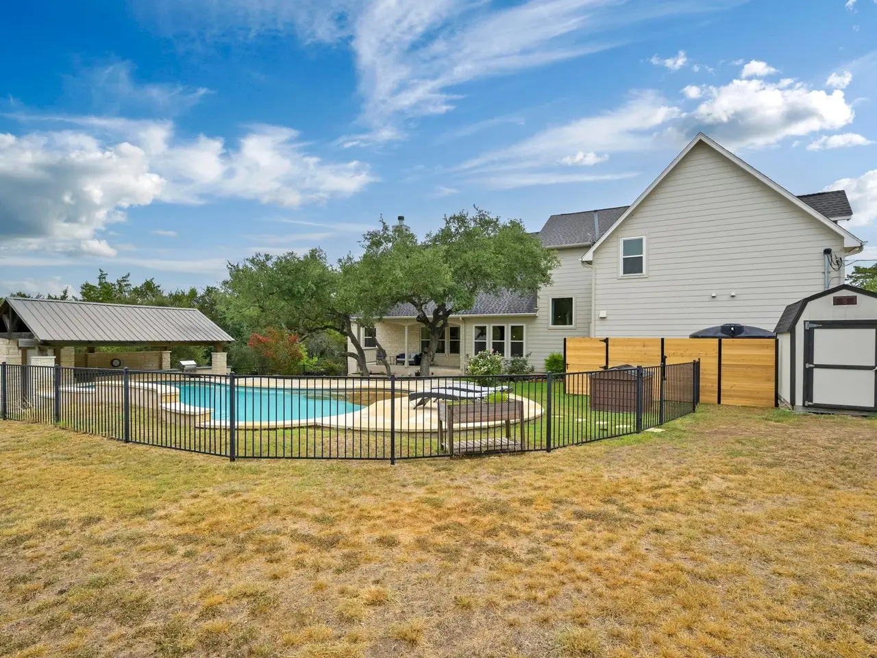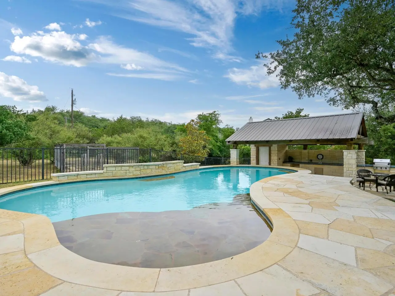 Welcome to your own private sanctuary nestled on 1.3 acres in the coveted Bee Cave. This home is only minutes to the Hill Country Galleria, HEB, Whole Foods, Trader Joes (coming soon), restaurants, Target and so much more. It includes a renovated kitchen and primary bathroom, along with triple-pane windows. Outside, enjoy a private setting with a sparkling pool, a cabana featuring an outdoor kitchen and bathroom, and a lush, fenced backyard perfect for people and pets alike. Green thumbs will appreciate the ready-to-plant garden, while outdoor enthusiasts will love the neighborhood hike and bridle trail. Enjoy the 1.63% Bee Cave tax rate and voluntary HOA. Families will love the top-rated Lake Travis ISD schools, including Lake Pointe Elementary, Bee Cave Middle School, and Lake Travis High School. This home offers the best of Texas Hill Country living with city access at your fingertips. NOTE: there is a half bathroom in the outside cabana