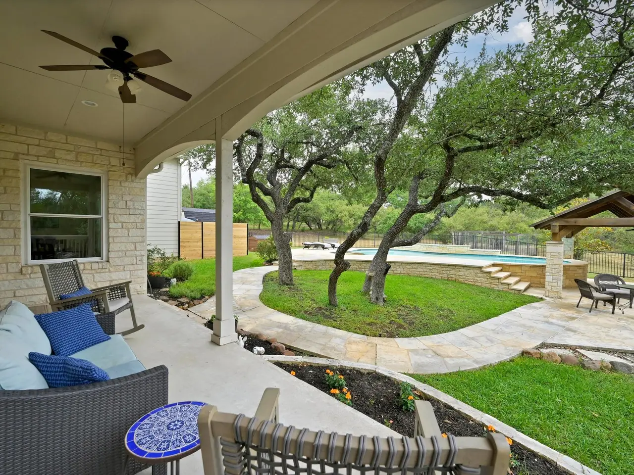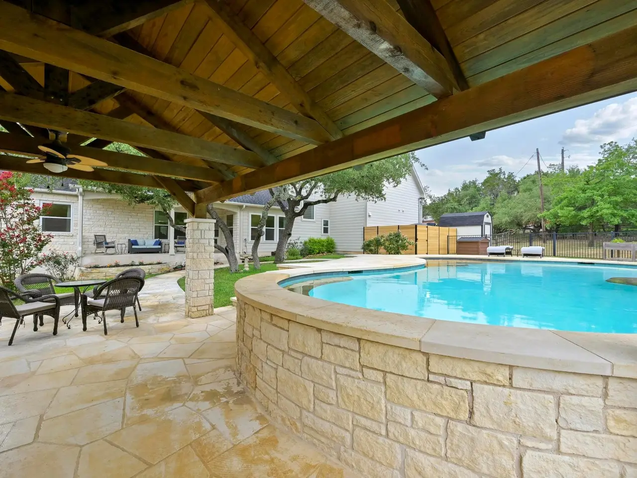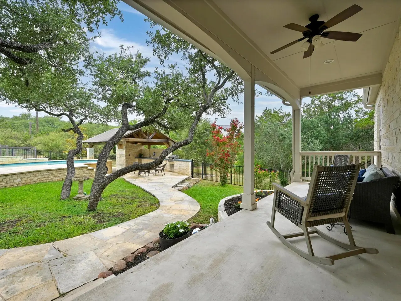 Welcome to your own private sanctuary nestled on 1.3 acres in the coveted Bee Cave. This home is only minutes to the Hill Country Galleria, HEB, Whole Foods, Trader Joes (coming soon), restaurants, Target and so much more. It includes a renovated kitchen and primary bathroom, along with triple-pane windows. Outside, enjoy a private setting with a sparkling pool, a cabana featuring an outdoor kitchen and bathroom, and a lush, fenced backyard perfect for people and pets alike. Green thumbs will appreciate the ready-to-plant garden, while outdoor enthusiasts will love the neighborhood hike and bridle trail. Enjoy the 1.63% Bee Cave tax rate and voluntary HOA. Families will love the top-rated Lake Travis ISD schools, including Lake Pointe Elementary, Bee Cave Middle School, and Lake Travis High School. This home offers the best of Texas Hill Country living with city access at your fingertips. NOTE: there is a half bathroom in the outside cabana