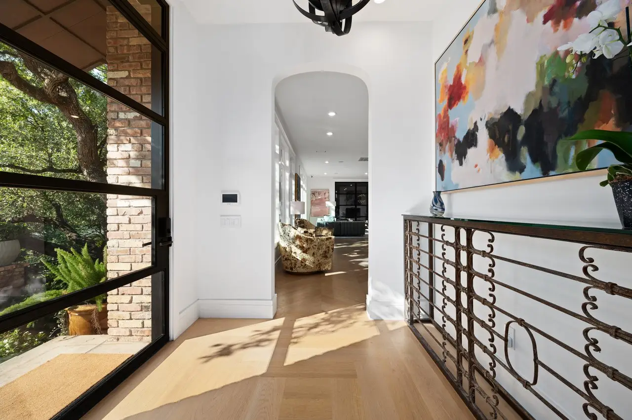 2406 Pemberton Parkway is situated on a coveted private street with only ten residences, making it a rare offering in the heart of prestigious Pemberton Heights. This 4,874 sq. ft. home (per FPG) combines timeless architecture with refined updates and exceptional outdoor living, all with direct access to Austin’s beloved Pease Park. Surrounded by lush, terraced landscaping and mature oaks, the residence is designed to maximize privacy and natural beauty. Expansive windows frame tranquil views of trees, creating a true sense of seclusion, while soaring ceilings and wide-plank wood floors add warmth and elegance. The chef’s kitchen is equipped with Sub-Zero and Wolf appliances, a generous island with seating, butler’s pantry, and abundant custom cabinetry—ideal for everyday living or entertaining on a grand scale. Open living and dining areas flow effortlessly to the screened-in porch with fireplace, perfect for year-round enjoyment. The primary suite is a serene retreat featuring a spa-inspired bath with dramatic book-matched stone, soaking tub, walk-in shower, dual vanities, and an oversized custom closet. Two additional en suite bedrooms and living area provide comfort for family or guests. A spacious media room and a designated office space with pocket doors can also function as a fourth bedroom if desired, offering flexibility for work, play, or additional sleeping space. Outdoor living shines with multiple terraces and an extraordinary east-side parcel featuring a putting green, fire pit, and seating areas, an unmatched extension of the property’s usable space. Additional amenities include a formal dining room, designated laundry room, and a two-car garage with hydraulic lifts to accommodate four vehicles. Located minutes from Downtown Austin, UT, and the city’s top dining and cultural destinations, this property offers a rare combination of privacy, convenience, and connection to nature—an exceptional opportunity in one of Austin’s most sought-after neighborhoods.