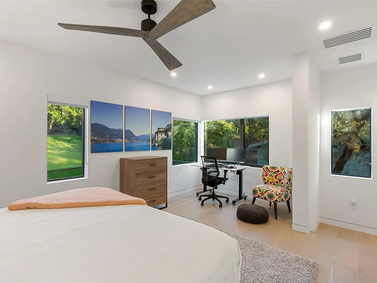 Additional features include an integrated Apple Home system, home water filtration, three HVAC units with dehumidifiers, dual tankless water heaters, and a 12-zone irrigation system. Private, quiet, and meticulously crafted, this home offers modern luxury in one of Austin's most desirable neighborhoods.