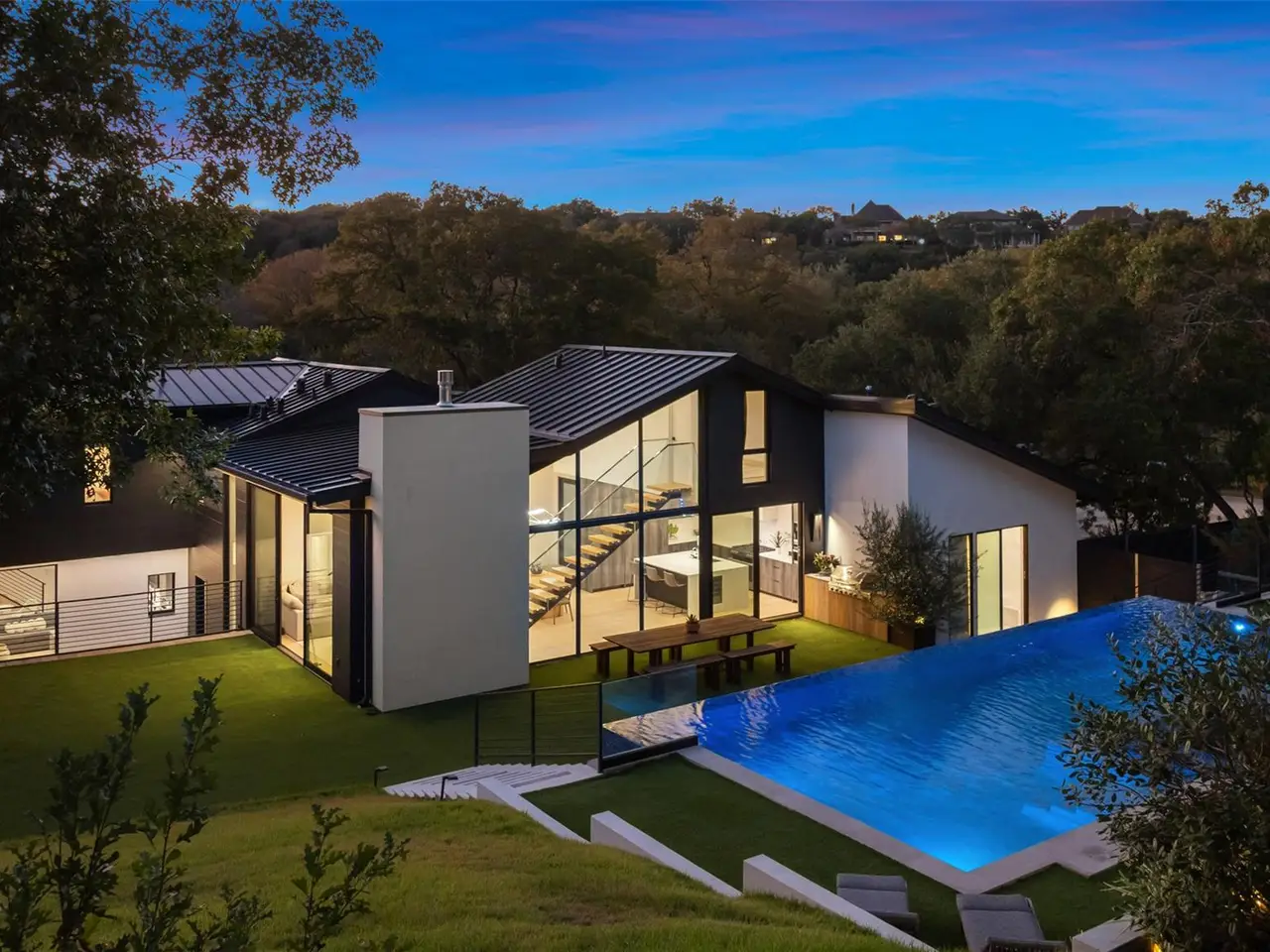 Welcome to 2503 Dip Cove in Barton Hills, a modern forever home designed by Garwood Architecture and built by Petrini Custom Homes. Set on a quiet cul-de-sac on nearly half an acre, this five-bedroom, four full and two half-bath residence offers 3,510 square feet of refined living with an emphasis on craftsmanship and enduring style.