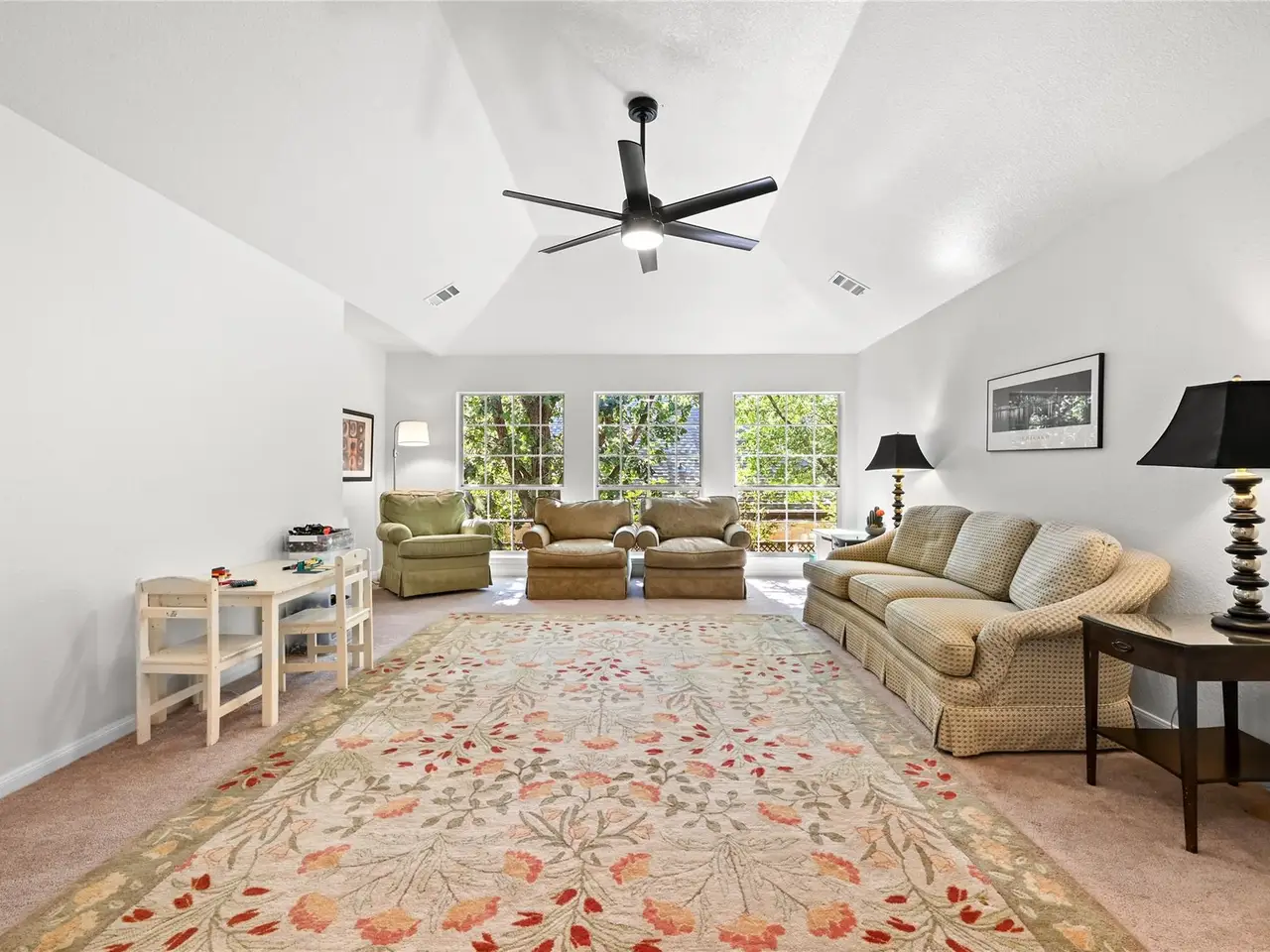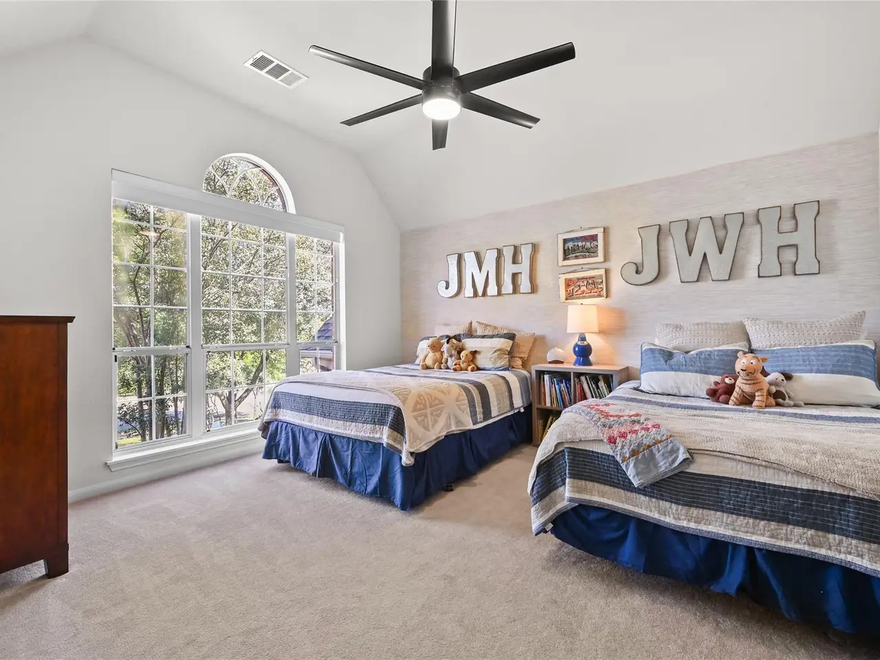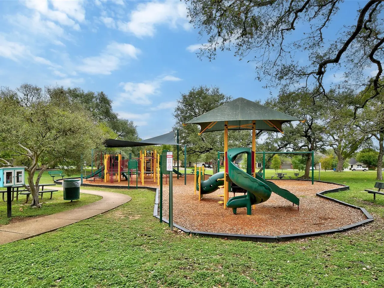 Charming traditional style home in Circle C located on a corner lot in a quiet cul-de-sac. Recently updated front door allows natural light to flood the entry hallway. The formal dining room is currently being used as a study. The formal living room has a cathedral ceiling with a wall of windows overlooking the backyard. The recently remodeled kitchen has stainless appliances, walk in pantry, center island with breakfast bar, gorgeous quartz counter tops, and is open to the den and dining area. The den has a wood burning fireplace with beautiful white washed brick surround and book shelves. The backyard is fully fenced with a covered sitting area and plenty of room for a trampoline or soccer goal. Turf grass makes yard maintenance easy! The primary bedroom, located on the main floor, overlooks the backyard. The primary bathroom was also recently updated with new flooring, cabinets, quartz counter tops, free standing tub, fully tiled shower and walk in closet. Upstairs there are three large bedrooms, 2 full bathrooms and a spacious game room. Windows galore showcase the surrounding trees and outdoors. Property is within walking distance of Kiker Elementary School and one of the Circle C swimming pools and playgrounds. The property's location within the Austrial Loop provides privacy and lots of room to walk and ride bikes.