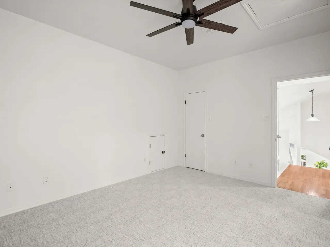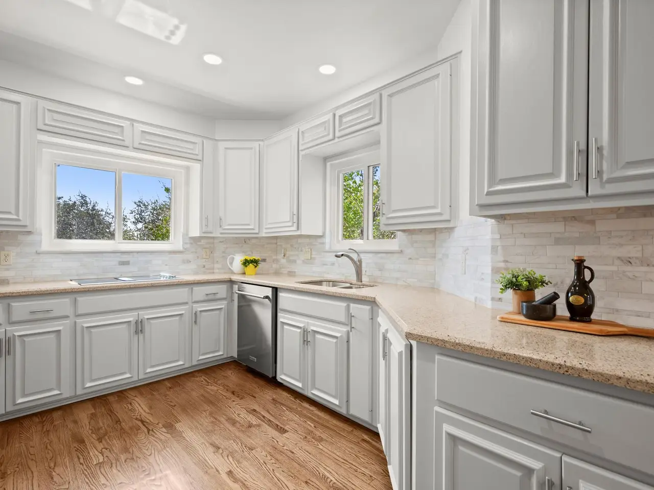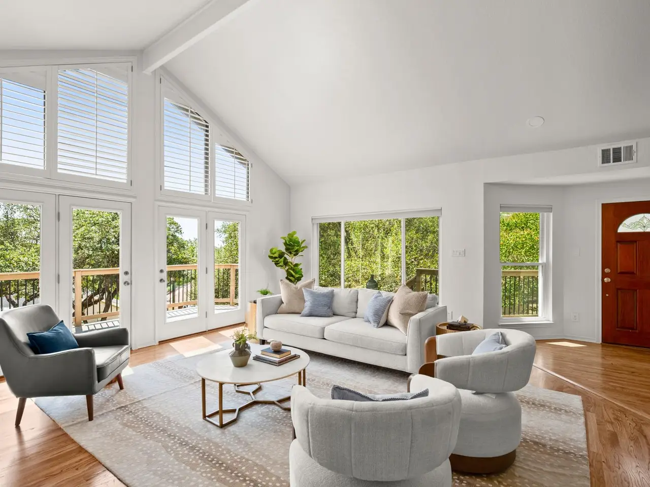 Tucked away in the hills of Cat Mountain, this spacious lock-and-leave residence offers easy living for the person on the move. Freshly painted throughout along with new carpet, guests are greeted with vaulted ceilings, hardwood floors, stone fireplace and a host bar ... making entertaining effortless. The updated kitchen is a culinary delight, equipped with stainless steel appliances and Silestone countertops, offering treetop views and easy access to the patio. The first floor features a private living quarters with a separate outdoor entrance, creating a versatile space perfect for a home office, studio, gym, guest suite, or private apartment, complete with a living area, bedroom and full bath - ideal as a potential ADU. This tranquil retreat showcases a new roof and is energy efficient with solar panels that will lower utility costs. Located in the desirable Northwest Hills and zoned for Doss Elementary, Murchison Middle, and Anderson High School, this home also provides convenient access to downtown Austin, The Domain, and top-rated shopping and dining. This property offers a community pool and an unbeatable combination of location, comfort and low-maintenance living while enjoying the beauty of the Texas Hill Country.