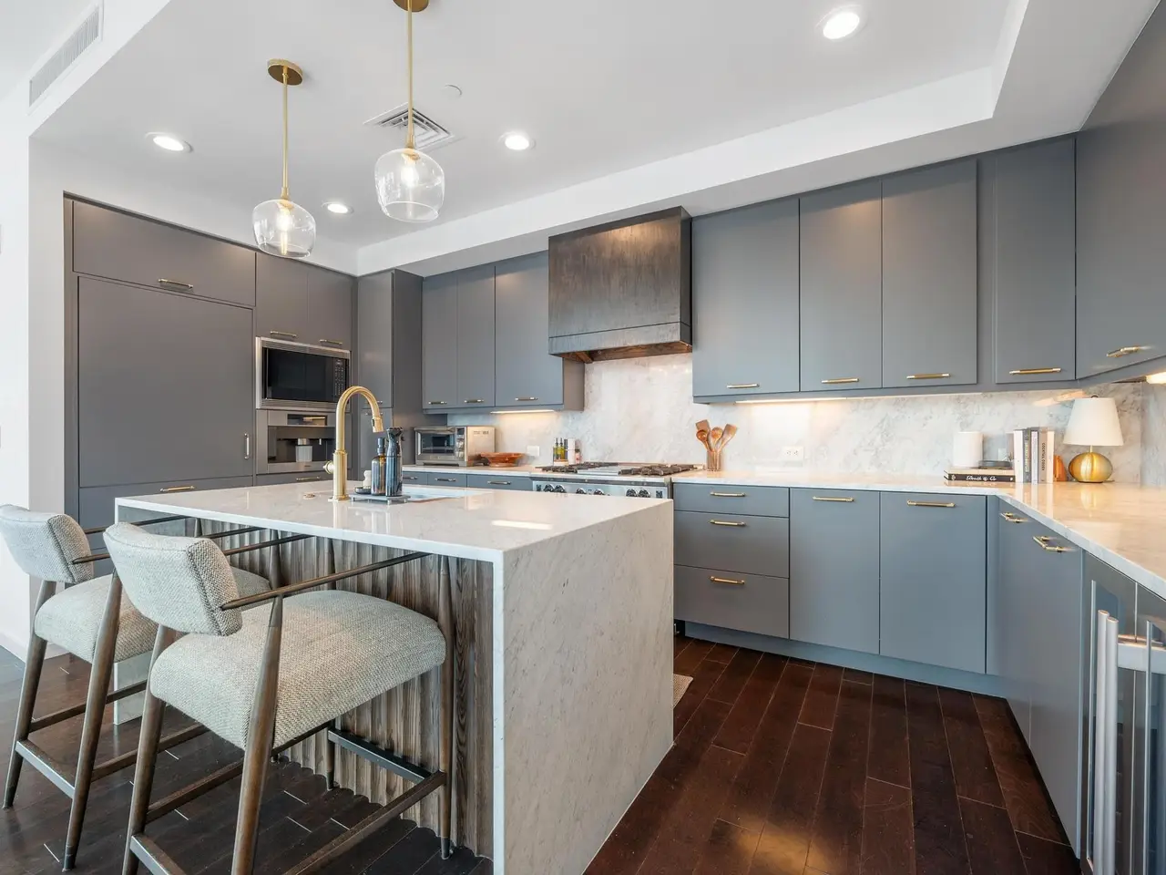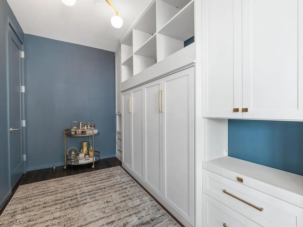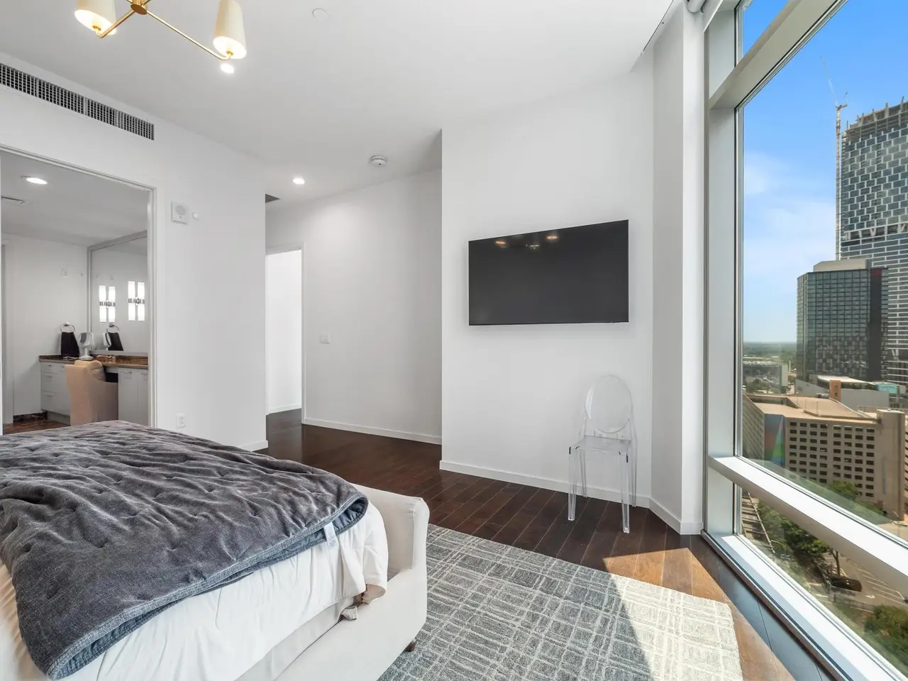 Situated in the southeast corner of The Austonian's 19th floor with picturesque views of Lake Austin, this recently remodeled residence provides luxury downtown living at its finest. This 2-bedroom, 2.5-bathroom condo features floor-to-ceiling windows that invite impeccable city and water views into the open-concept living room, kitchen, and dining area. The immaculate kitchen is outfitted with stunning modern cabinetry complemented by gorgeous stone countertops and stainless-steel appliances, including an under-counter wine fridge. Enjoy the covered, corner balcony offering a spectacular view of Lake Austin to start and end your day. The primary bedroom has an additional wall of windows to wake up with a lake view. Retreat to the expansive primary bathroom with dual sinks, a soaking tub, a walk-in shower, and a walk-in closet with custom storage. The secondary bedroom has a gorgeous en-suite with beautiful tile throughout. A study/flex space off the entryway provides ample storage with custom built-ins that could function as an office, as well as a smartly appointed built-in Murphy bed for guests. The residence also features a spacious powder room with a pop of stylish wallpaper and a coveted in-unit laundry room. A climate-controlled storage unit on the 9th floor and 2 reserved parking spots convey with the sale. Furniture could also be included for a full price offer. The Austonian, downtown's premier building, boasts 40,000 SF of amenities, including valet parking, a 56th-floor fitness center, pool deck, BBQ areas, a spa room, guest suites, dog park and grooming area, and 24-hour concierge service reserved for owners only. Perfectly located in downtown Austin, The Austonian provides quick access to the Capitol, restaurants, parks, and entertainment. Live in luxury at the heart of Austin in The Austonian. Tax and assessed values are estimates for illustration purposes only. All figures should be independently verified.