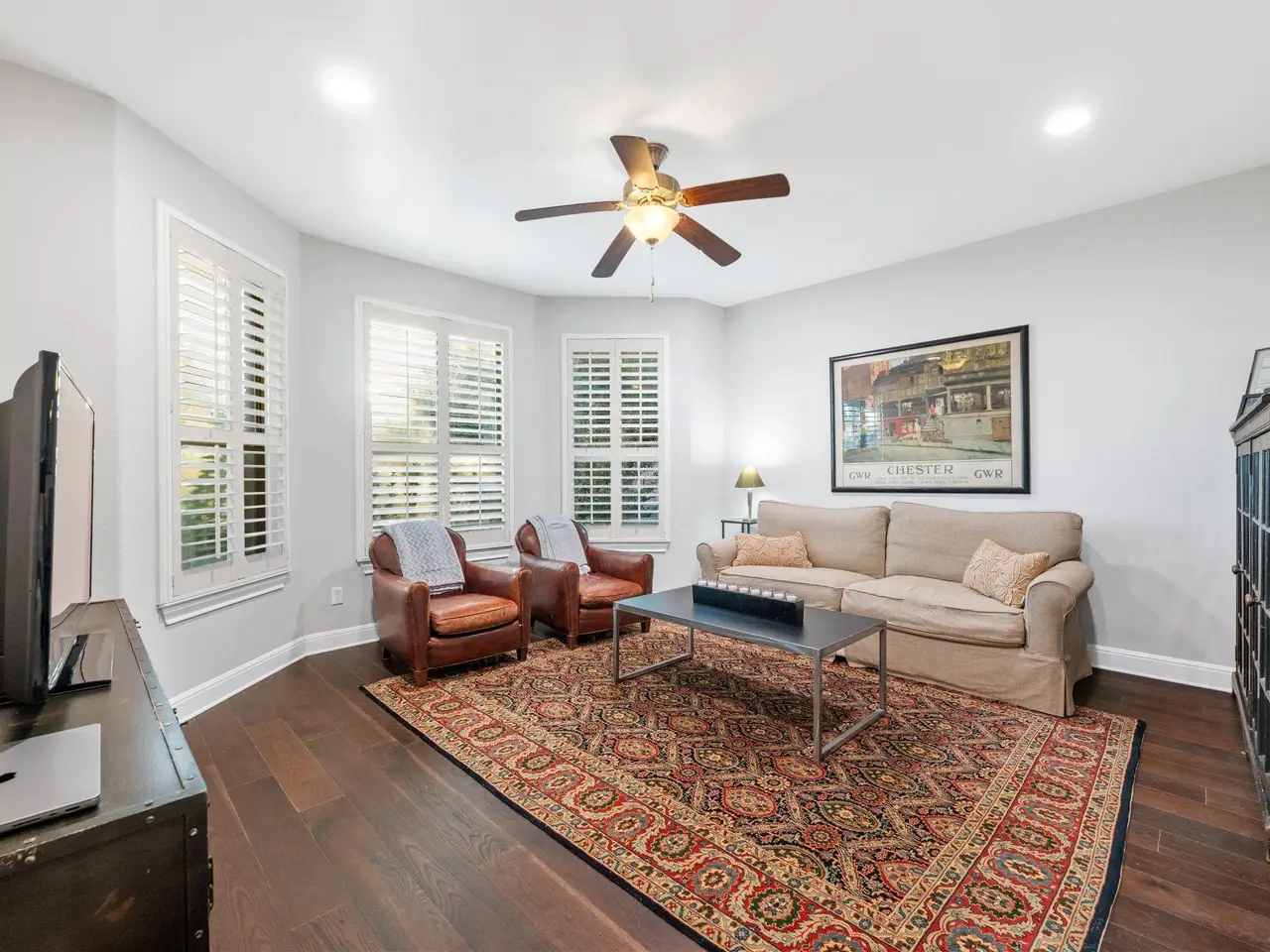 Owner Agent, information is deemed reliable but is not guaranteed. Buyers and their agents should verify all information Open and bright with many upgrades/improvements, two story family room was closed in by builder creating a large game room and media room. 3rd car tandem garage was converted to oversize laundry/flex area. Upgrades include extended rear covered patio, 8 ft doors, wide moldings/baseboards, travertine floors, GE Monogram appliance package, with 48in built in refrigerator, pot filler, upgraded light fixtures, 16 recessed cans, 5 sets of wall sconses, a butlers panty between the kitchen and dining room and much more.....