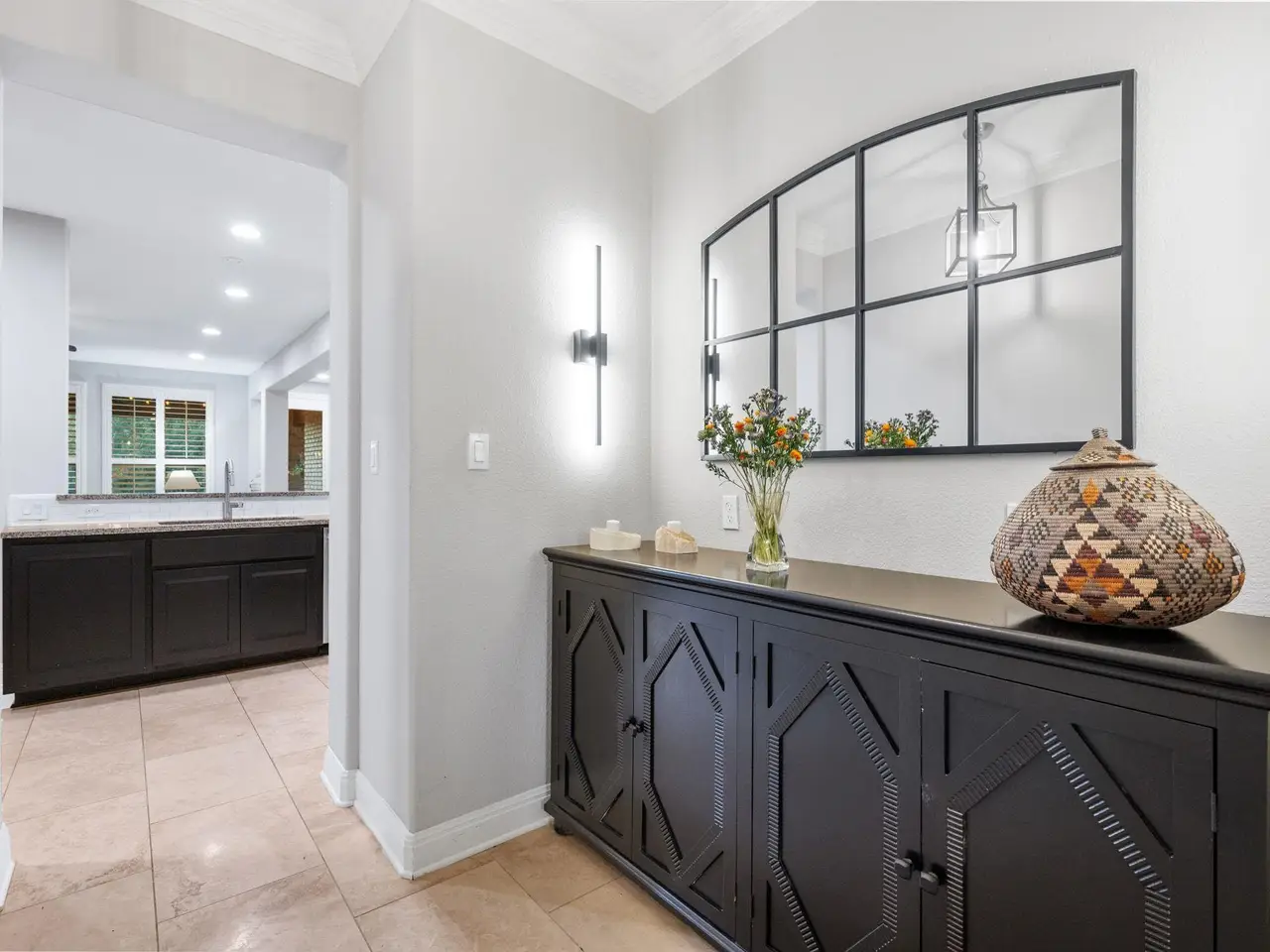 Extended covered patio Butler's pantry