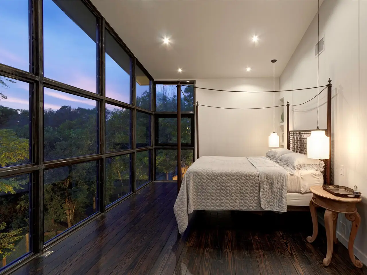 Welcome to 1700 S 6th St., a thoughtfully curated modern farmhouse in one of Austin's most beloved neighborhoods. Designed and built at the leading edge of the white siding movement, this one-of-a-kind residence stands apart with its authentic materials, architectural vision, and deep attention to detail. Featured in Houzz, Crate & Barrel, Loft Home, and Spectacular Women of Architecture, this home is as much a creative expression as it is a functional, family-ready retreat. Soaring steel-framed windows span the back of the home, drawing natural light and a lush treehouse ambiance into the main living areas and primary suite. In the kitchen, reclaimed open shelving crafted from Spaghetti Warehouse beams pays homage to old Austin, while Sub-Zero column refrigeration, a Wolf 48" dual-fuel range, and reverse osmosis drinking water elevate everyday living. Entertain with ease thanks to folding Durango doors that open the kitchen and living room to a shaded outdoor patio anchored by a live oak and surrounded by an edible garden--including Meyer lemon, olive, bay laurel, asparagus, and more--on a fully automated Rachio irrigation system. Inside, you'll find white oak herringbone floors, a Rumford wood-burning fireplace with a Colorado River-recovered cypress mantle, and layered design elements throughout. The primary bath features a vintage European workbench-turned-vanity, a soaking tub, and a spa-style shower with three showerheads. The lower-level music studio includes a murphy bed for added flexibility, while a whole-home sound system, ADT security, and wired high-speed internet make the home smart and secure. Plans for a pool convey, along with a custom-built media cabinet and split HVAC systems in the garage and studio. This is more than a home--it's a showcase of soul, sustainability, and sophisticated Austin living. Tax and assessed values are estimates for illustration purposes only. All figures should be independently verified.