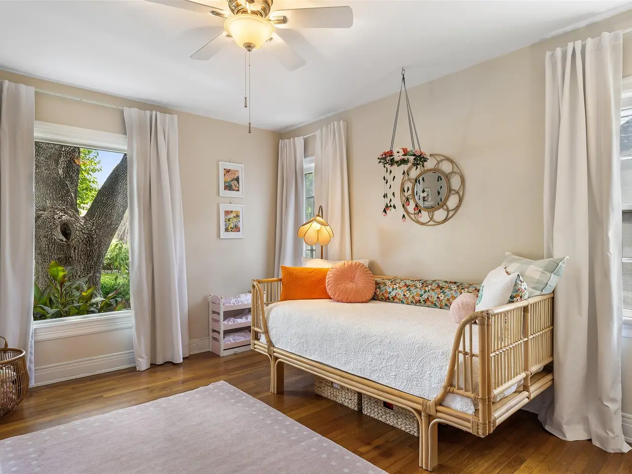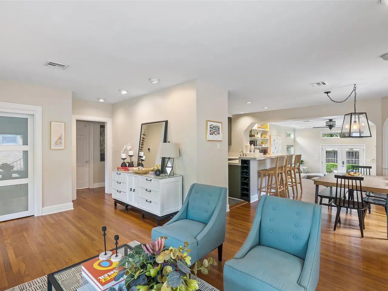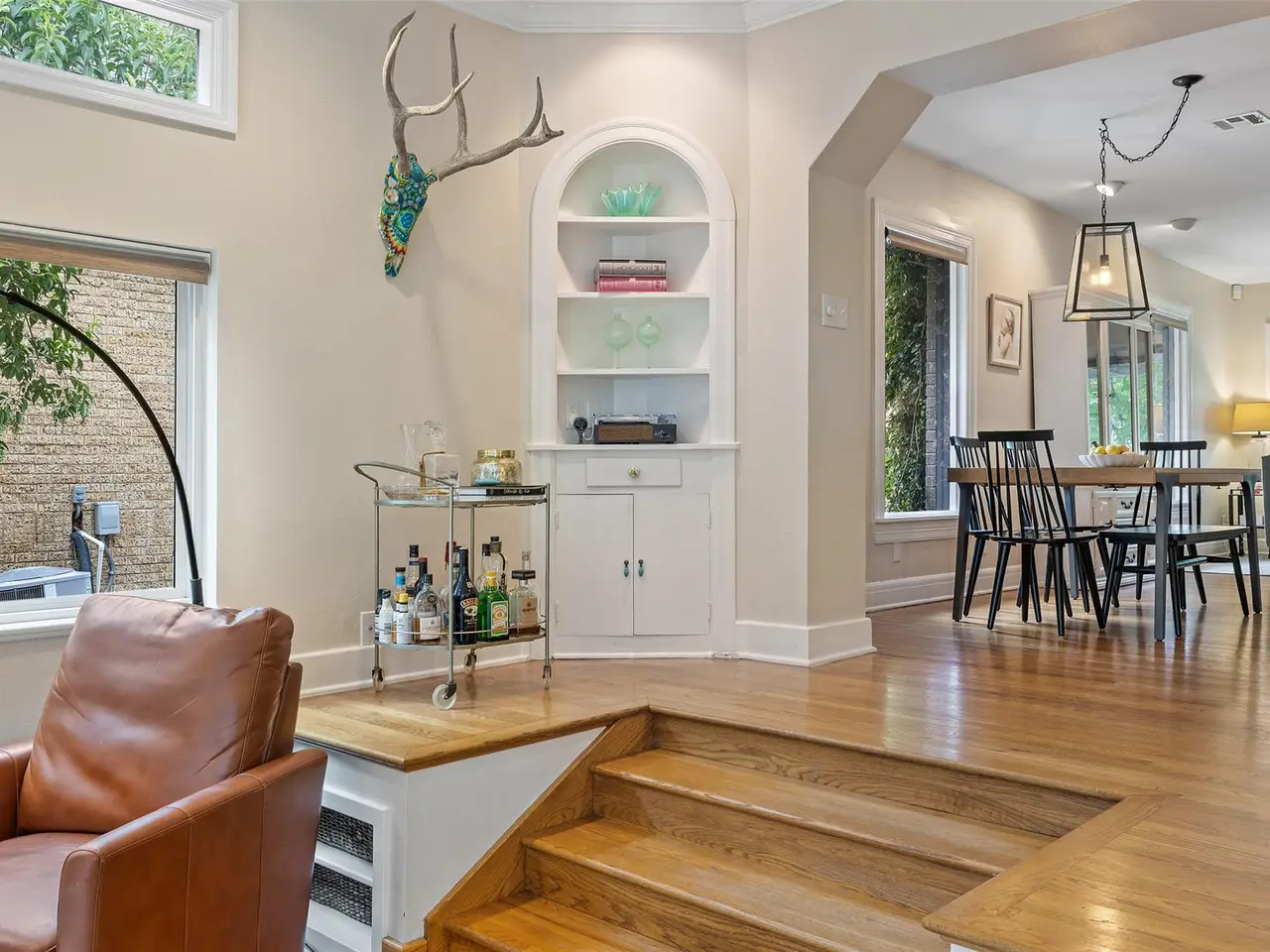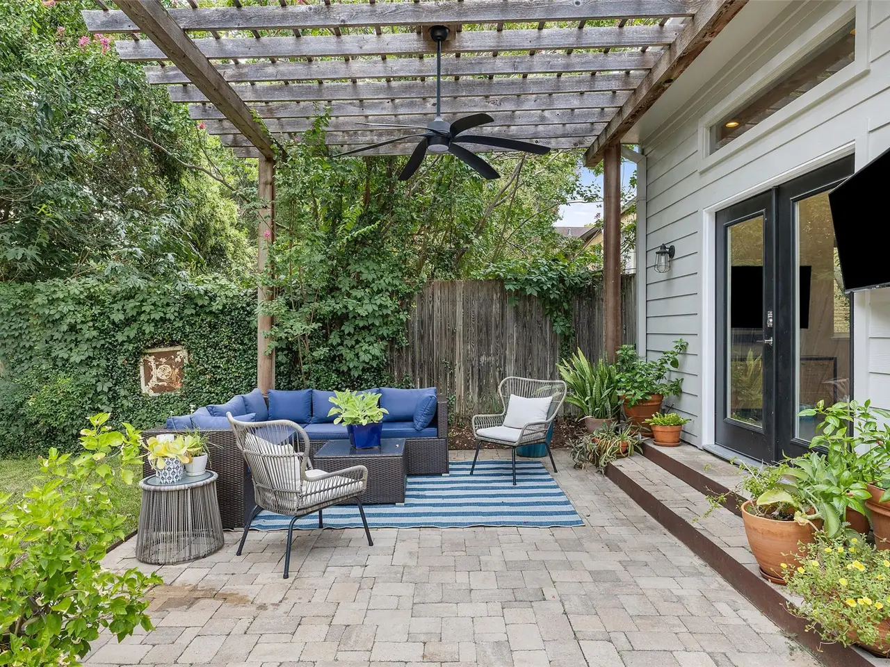 Welcome to 1510 Hartford Road, a timeless 1940 residence lovingly updated to pair modern comfort with classic character. From the moment you step inside, the charm is undeniable--corner windows in the front living room frame views of the porch and yard, bathing the space in natural light. This inviting area flows into the kitchen and dining room, where dark green cabinetry, counter seating, and a statement chandelier strike the perfect balance of style and function.Just beyond, a sunken living room offers a cozy yet open atmosphere with built-in shelving, expansive windows, and French doors to the backyard. It's a versatile space--ideal for gatherings, quiet evenings, or simply enjoying the home's abundant natural light.The primary suite has been re-imagined as a true retreat. A custom walk-in closet with a center island connects seamlessly to a light-filled bathroom featuring dual vanities and fresh, modern finishes. A spacious second bedroom and full bath complete the interior, offering comfort and flexibility for guests, family, or a home office.Out back, a covered porch with a mounted TV sets the stage for relaxed evenings, while the grassy lawn offers room for pets, play, or gardening. A detached two-car garage with a long private driveway adds convenience and storage.Situated in the coveted Old Enfield neighborhood, 1510 Hartford Road places you moments from Clarksville's shops, restaurants, and parks, as well as the University of Texas, the Texas Capitol, and Downtown Austin. With its rich character and central setting, this home is a true Central Austin treasure.