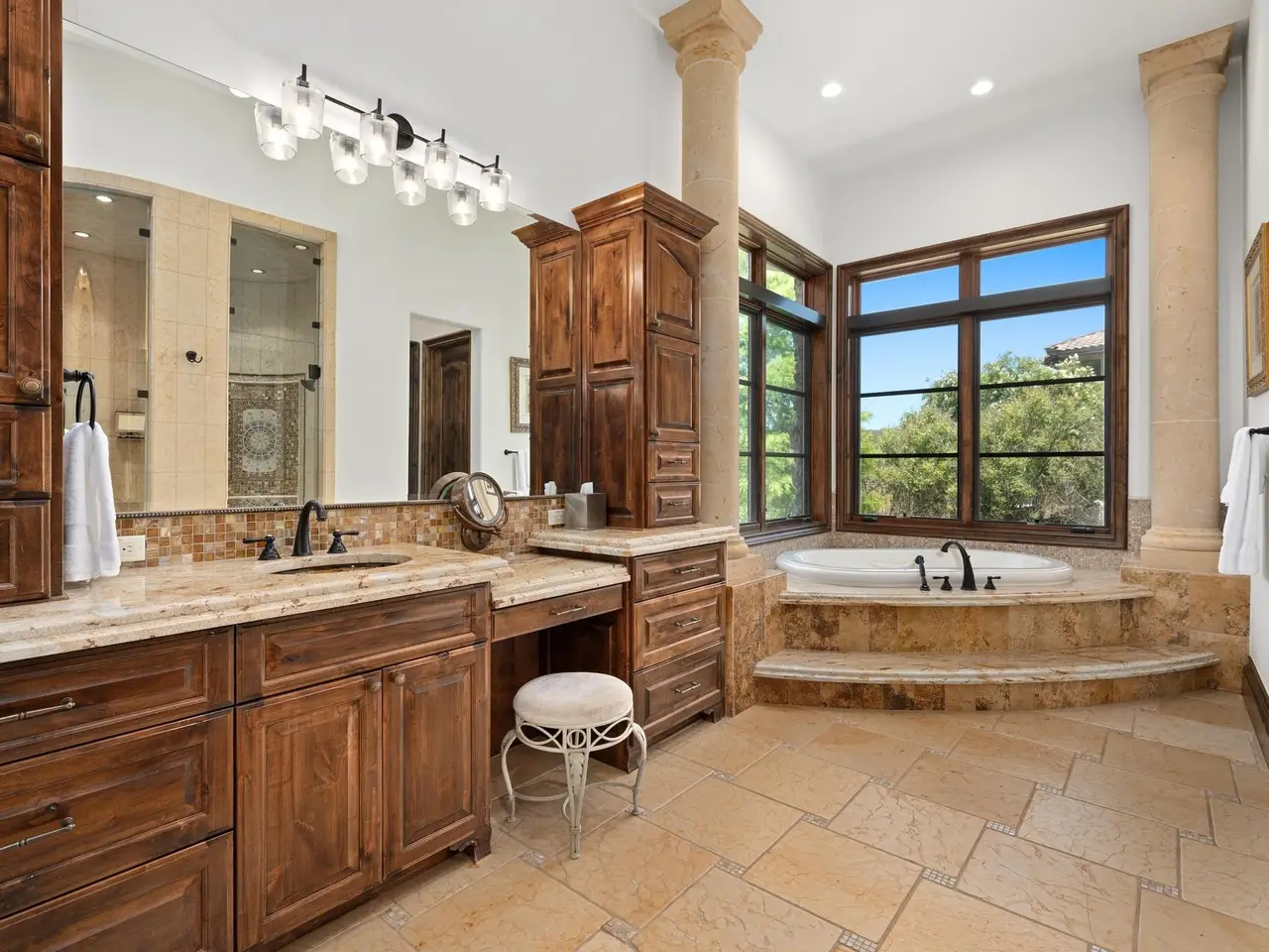 Villa Caslano is a breathtaking Lake Austin estate offering +/- 280' feet of pristine shoreline, directly across from the protected Balcones Nature Preserve. Set behind private gates, this expansive property blends timeless European elegance with resort-style amenities. The grand great room features 30-foot vaulted ceilings and flows into a chef's kitchen outfitted with two Sub-Zero refrigerators, Wolf double ovens, a six-burner gas cooktop with griddle, and dual Miele dishwashers. Rich materials and artisan craftsmanship are found throughout--from hand-carved stone archways and wood beams to custom glass globes and ironwork. Additional highlights include a temperature-controlled wine room for over 200 bottles, a stunning home theater (with blackout shades and lake views), and a luxurious office with private study. Designed for effortless indoor-outdoor living, the home's covered loggia features a full outdoor kitchen and fireplace overlooking the infinity pool, pool house, and full-size lighted tennis court. The two-story boat dock includes two boat slips and a fully integrated outdoor living space with a sun deck, kitchen, and audio/visual system--ideal for entertaining. A mosquito control system, private well, and Italian marble fountain elevate the estate's luxurious lifestyle. The primary suite is a true sanctuary with a domed entry and one of the most spectacular closets in Austin--complete with floor-to-ceiling shoe racks, a sliding ladder, and its own laundry and beverage station. The spa-like bathroom features a Bain Ultra soaking tub, dual rain and handheld shower heads, and six body sprayers. Ideally located just a golf cart ride from the world-class Lake Austin Spa and close to the UT Golf Club, this estate offers exceptional proximity to top-rated schools, restaurants, and retail in one of Austin's most coveted gated neighborhoods. Tax and assessed values are estimates for illustration purposes only. All figures should be independently verified.