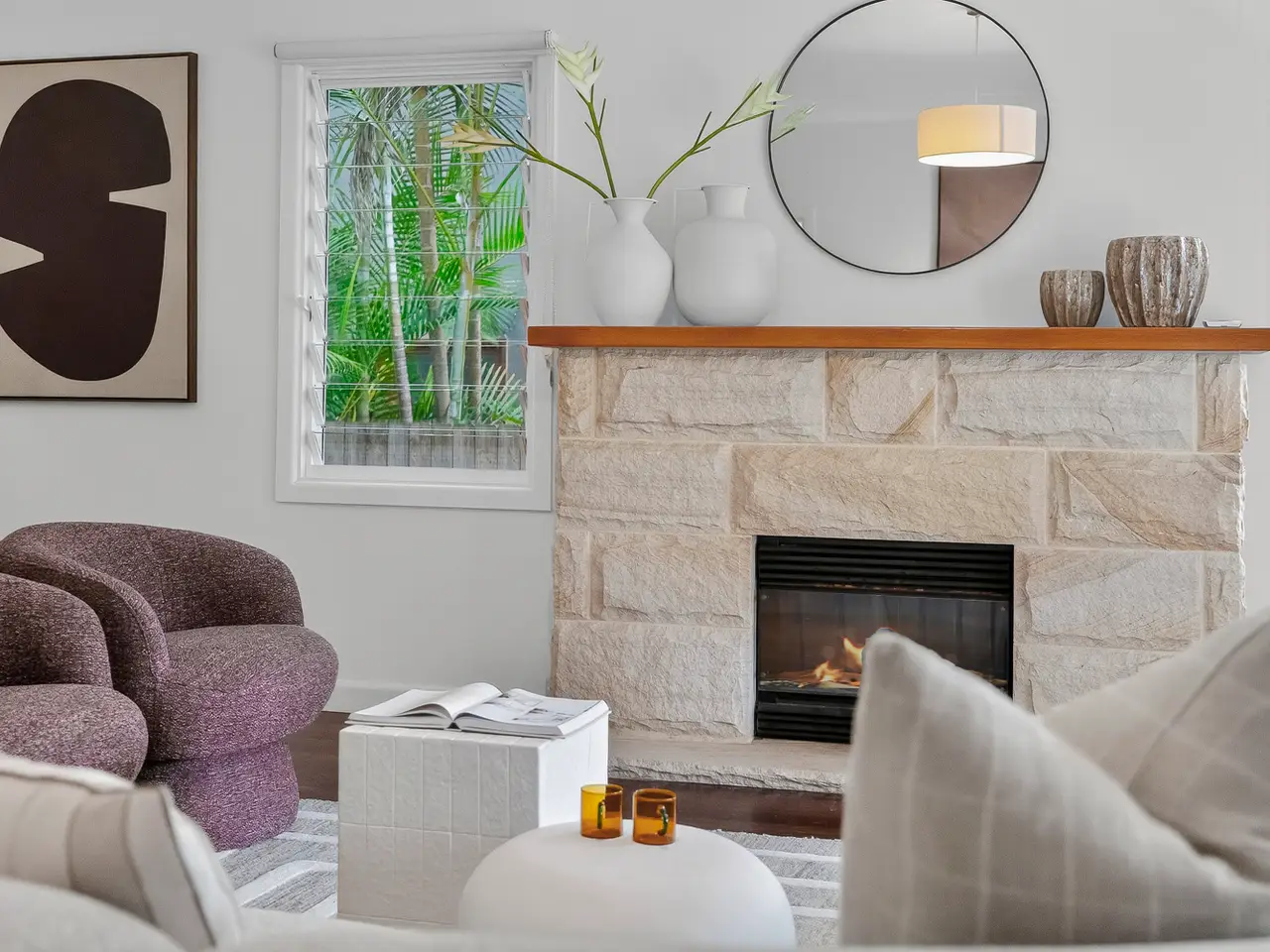 - Sandstone fireplace