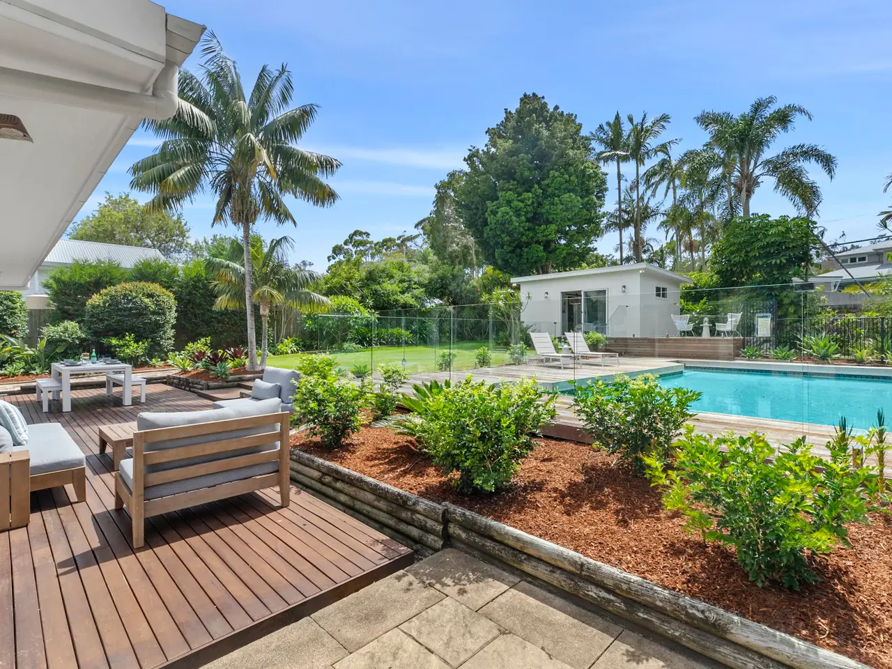 Expansive entertaining decks with saltwater pool