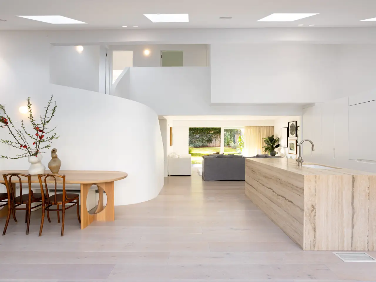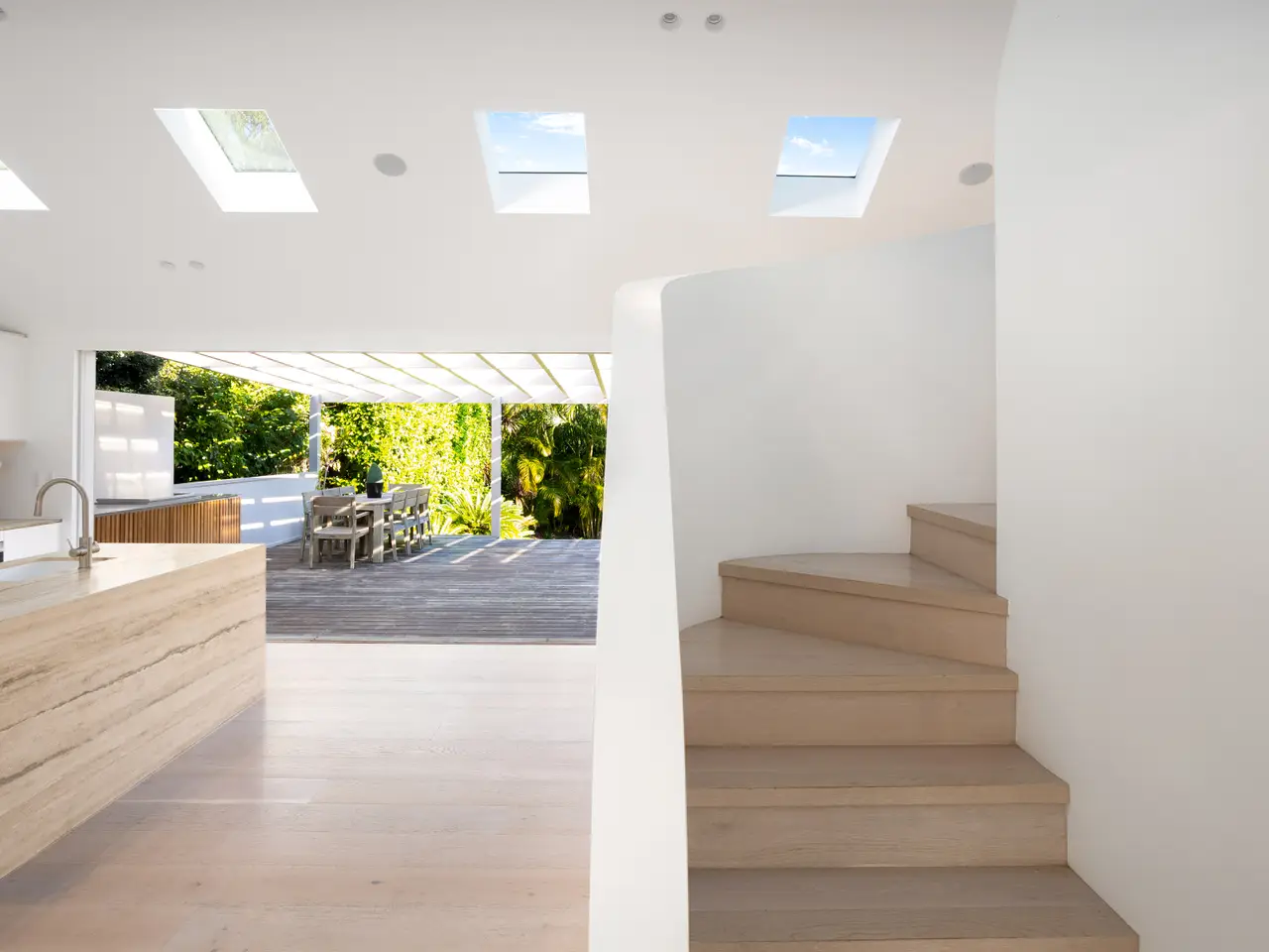 Perfectly balanced and quietly breathtaking, this home's low-slung profile and bold architectural lines unfold into a dazzling residence that's both simple and sophisticated; boasting a dress-circle setting in the heart of North Avalon, it soaks up abundant natural light from sunrise till magic hour, delivering a polished family retreat and erasing all the usual boundaries for living, entertaining and working. Soaring interior spaces and clean minimalist forms are counter-balanced by the sculptural staircase - a fluid, organic centrepiece that elevates the architecture and anchors the home with a defining work of art. The refined design sensibility, together with a clean, neutral palette set the overall tone, while extensive glazing provides a deep visual and sensory connection to the gardens, decks and pool; vast sliding doors open entirely to the gorgeous landscaping in front and back, creating an environment at one with seasonal variations. It's a perfect complement to the luminous, open layout, complete with chef's kitchen, family room, home office and studio space. - Contemporary design at its best: sleek, stylish and innovative - Refined and relaxed - an environment of luxurious simplicity and calm - Level of craftsmanship is evident in every detail, large and small - End-to-end rebuild in 2022; custom-designed from the ground up - Abundant north light, dress-circle setting, impressive 835sqm parcel - Seamless connection to front and rear gardens, decks and sunlit pool - Custom-designed lighting, joinery & fluted glass pivot door at entry - Gently curved, sculptural staircase is flooded with natural light - Vein-cut travertine benches in kitchen, living areas and bathrooms - Designer kitchen; integrated Bosch/Miele appliances + zip hydro tap - Separate media/family room, home office and custom-built studio - Parent's wing with marble-tiled ensuite, walk-in robes + deck access - Upstairs bedrooms are large and bright, each with built-in robes - Bathrooms with heated floors, designer finishes + guest powder room - Private, landscaped gardens; native in front and tropical in back - Ducted climate control, integrated sound system, built-in BBQ - Easy level walk to North Avalon shops, cafes, school and beachfront